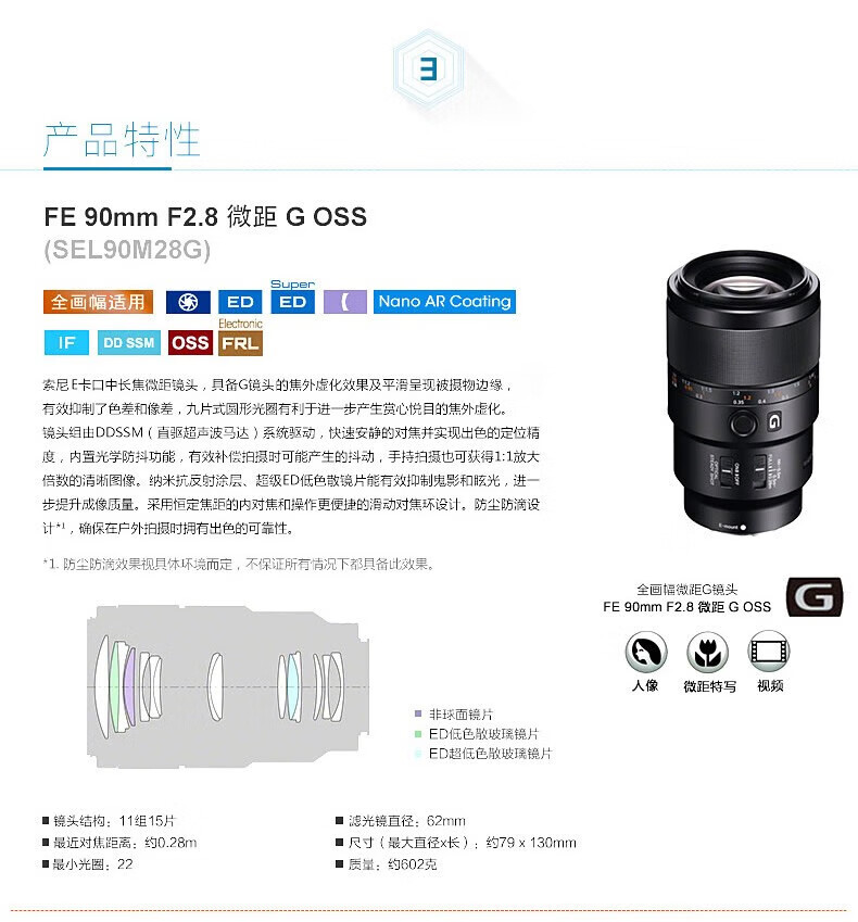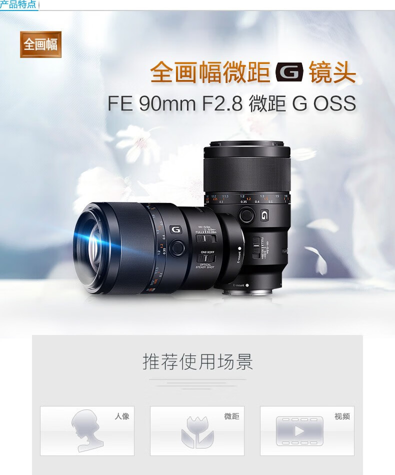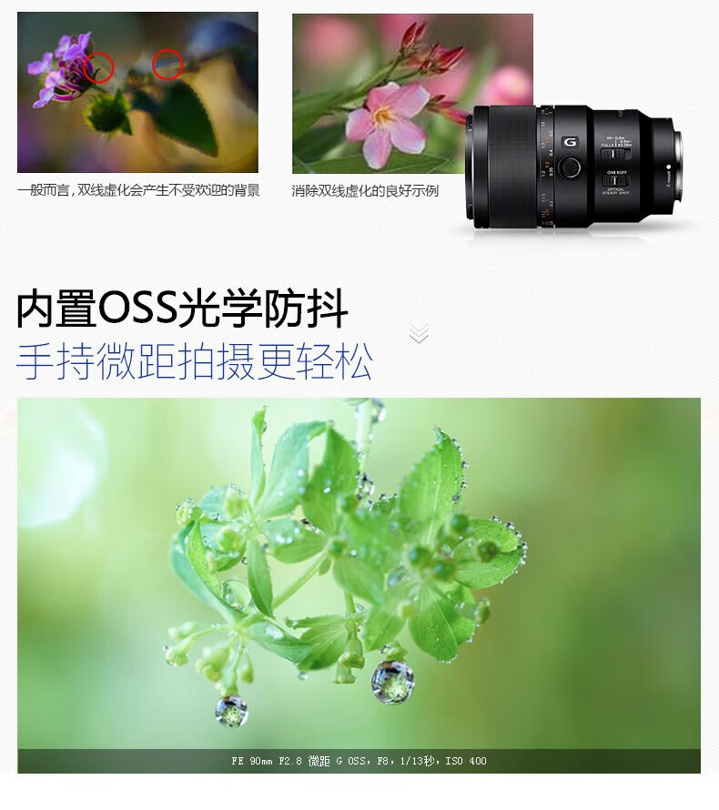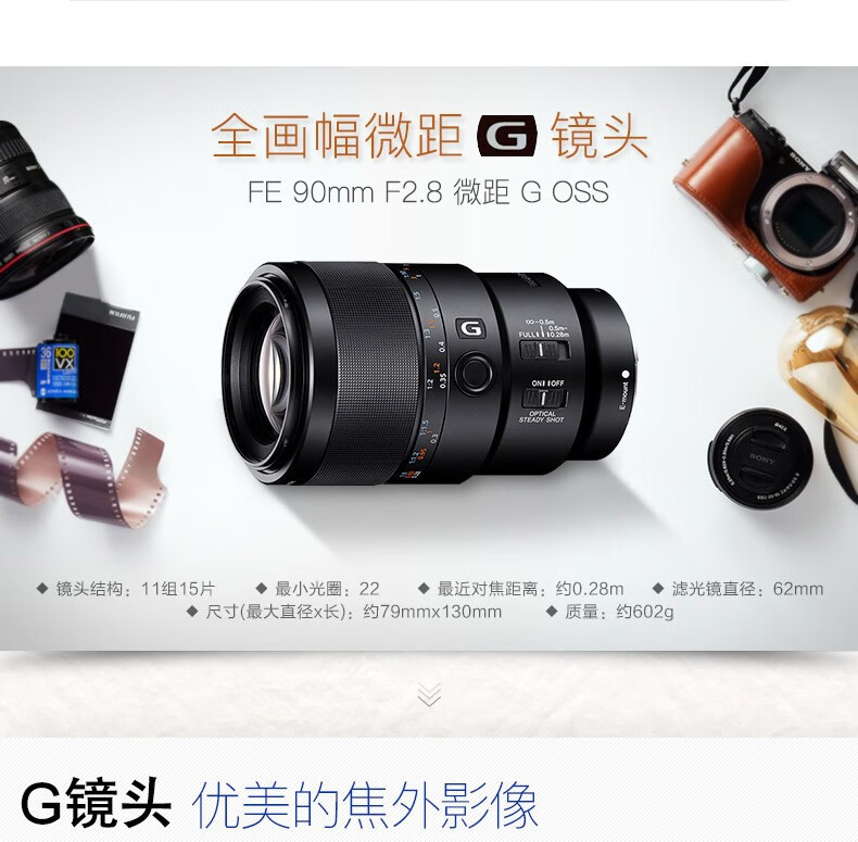 索尼(SONY)(SONY) FE 90mm F2.8G OSS 全画幅微单相机 微距G镜头 拍昆虫 珠宝牙医 FE 90 F2.8G 标配【62mm】