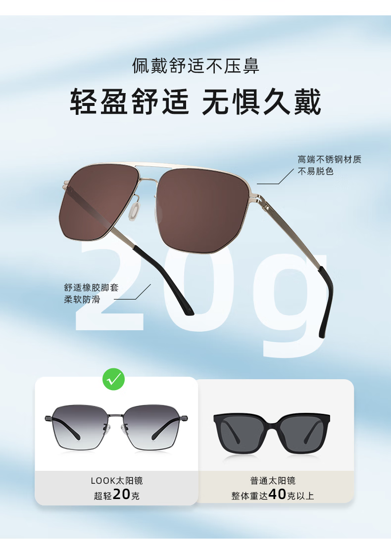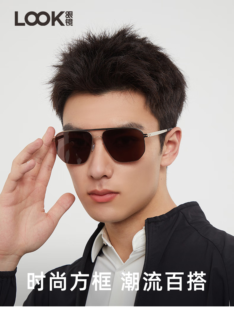 LOOK眼镜男式卡片式金属太阳镜 无螺丝超薄不锈钢镜架 男飞行墨镜七夕