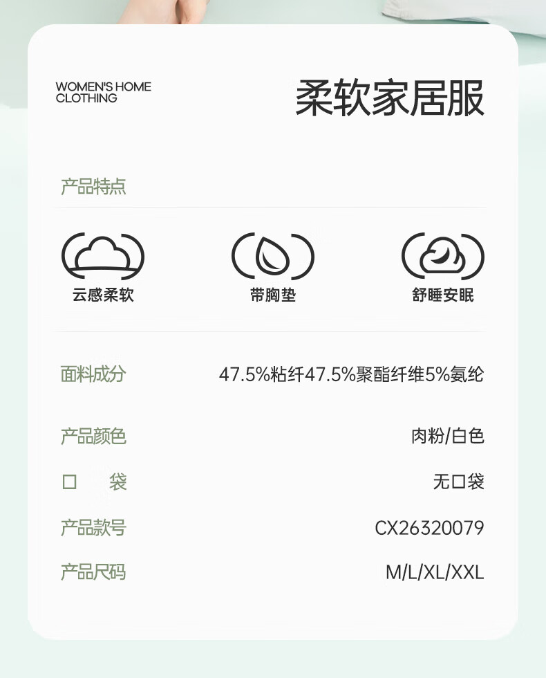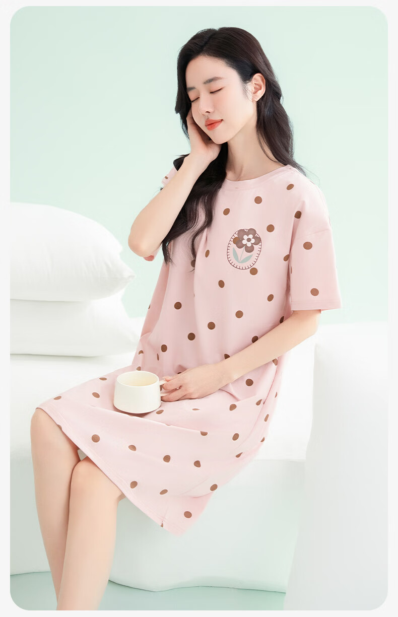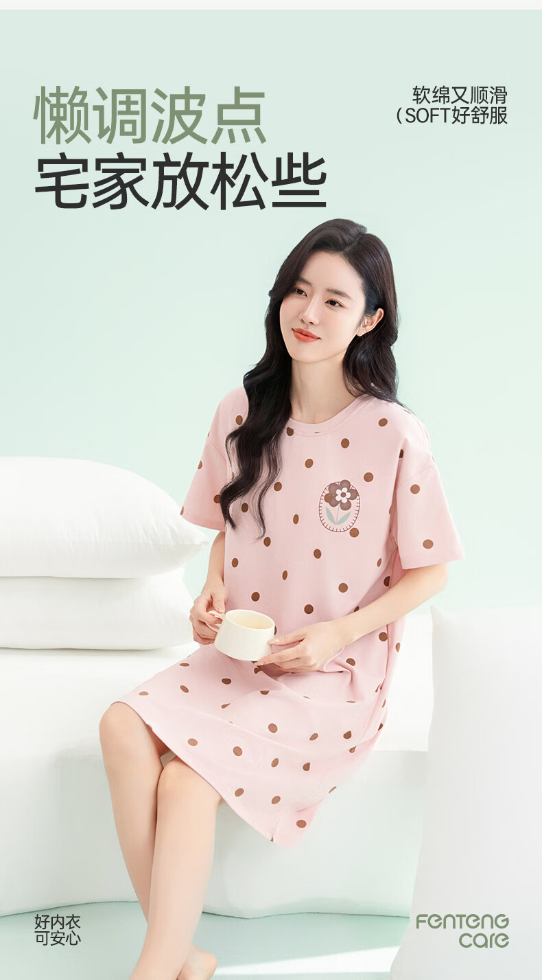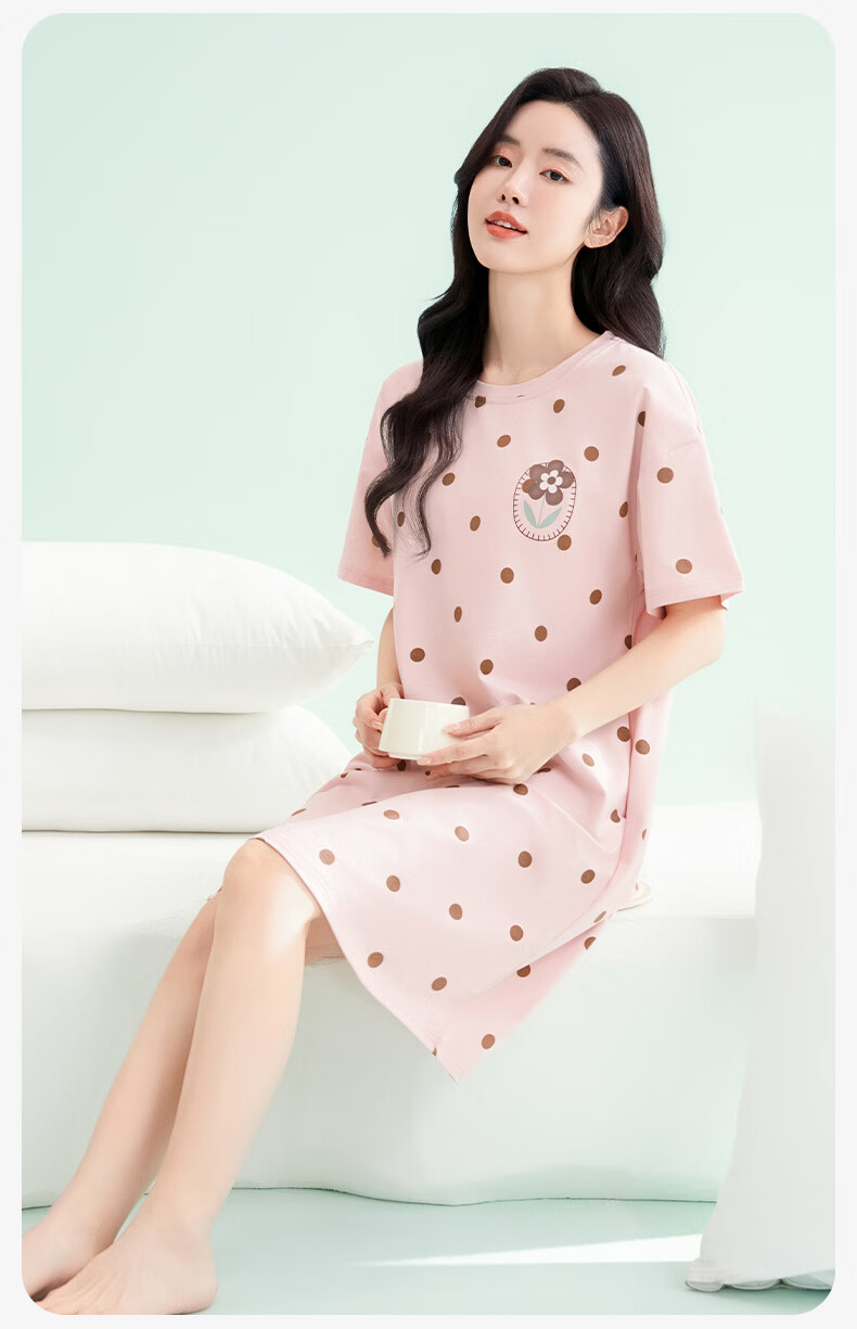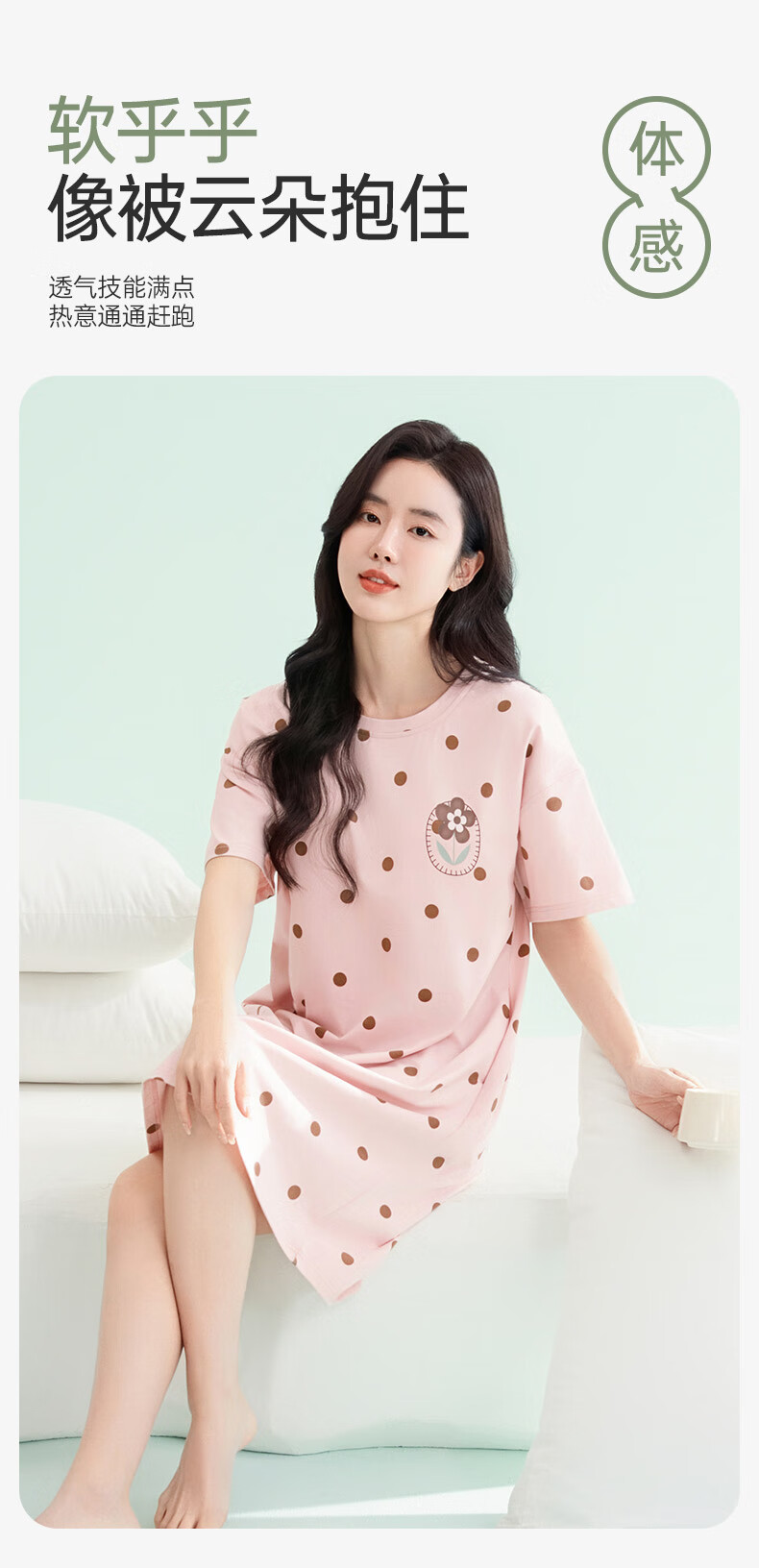芬腾可安睡衣女【自带胸垫 】2025休闲圆领短袖裙波点女士家居服透气睡裙 白色 2XL