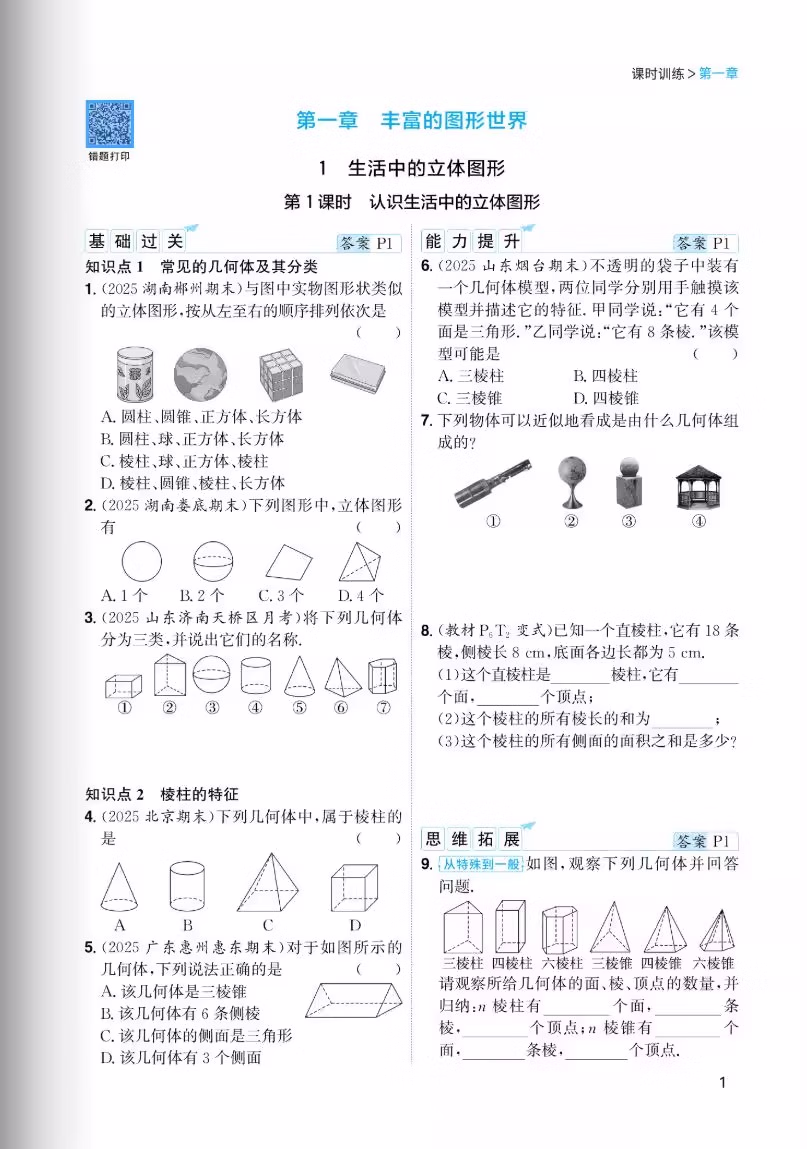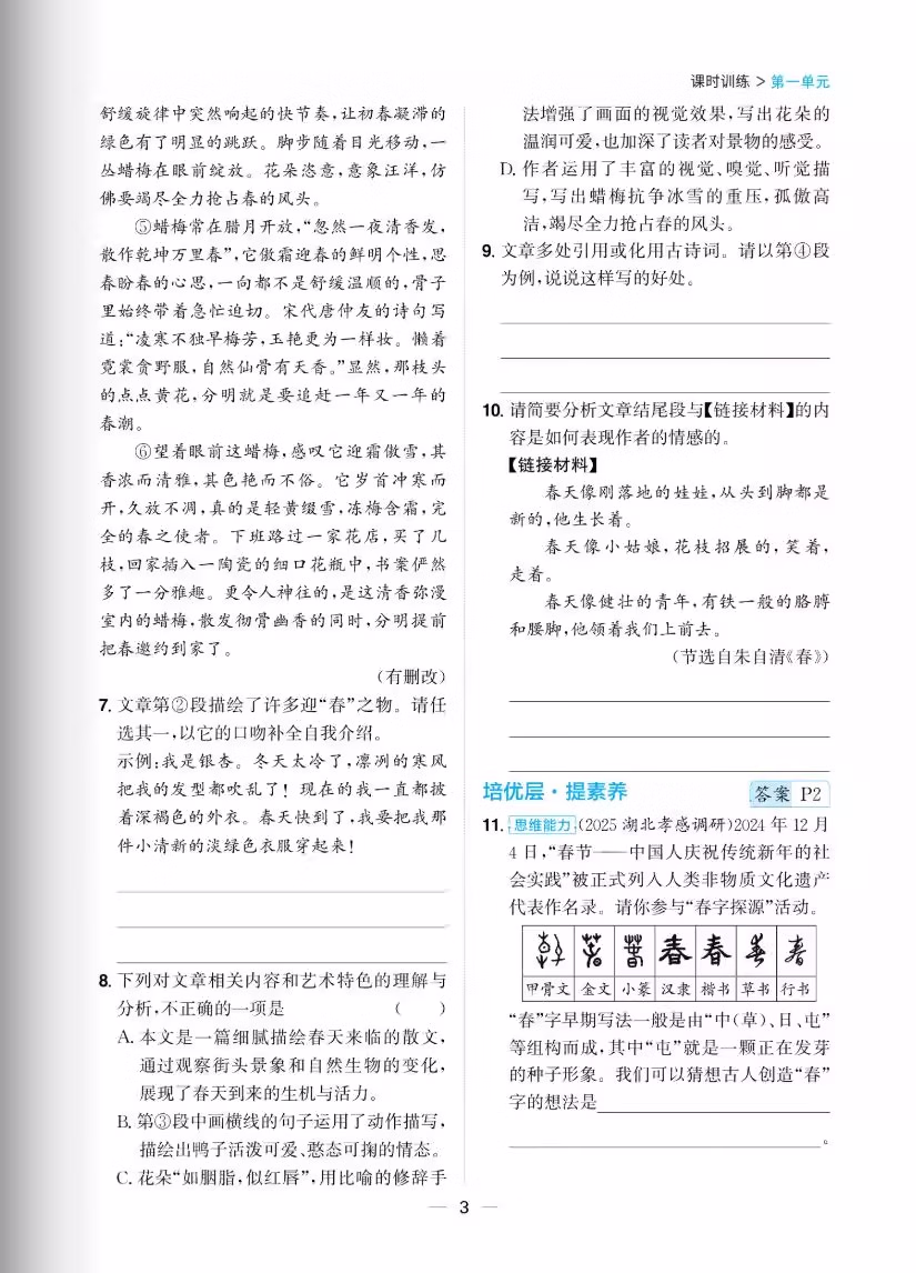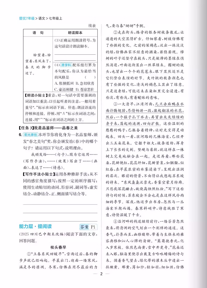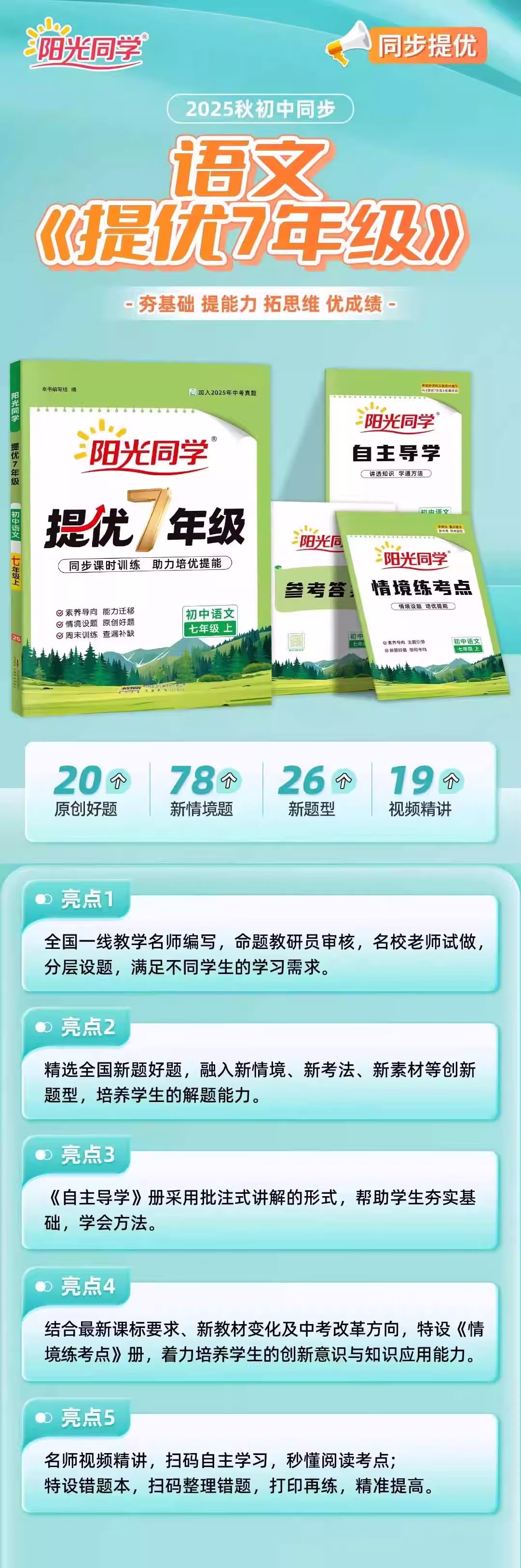 2025秋版阳光同学初中提优七年级同步课时训练初一7年级上册练习册一课一练 英语【人教版】