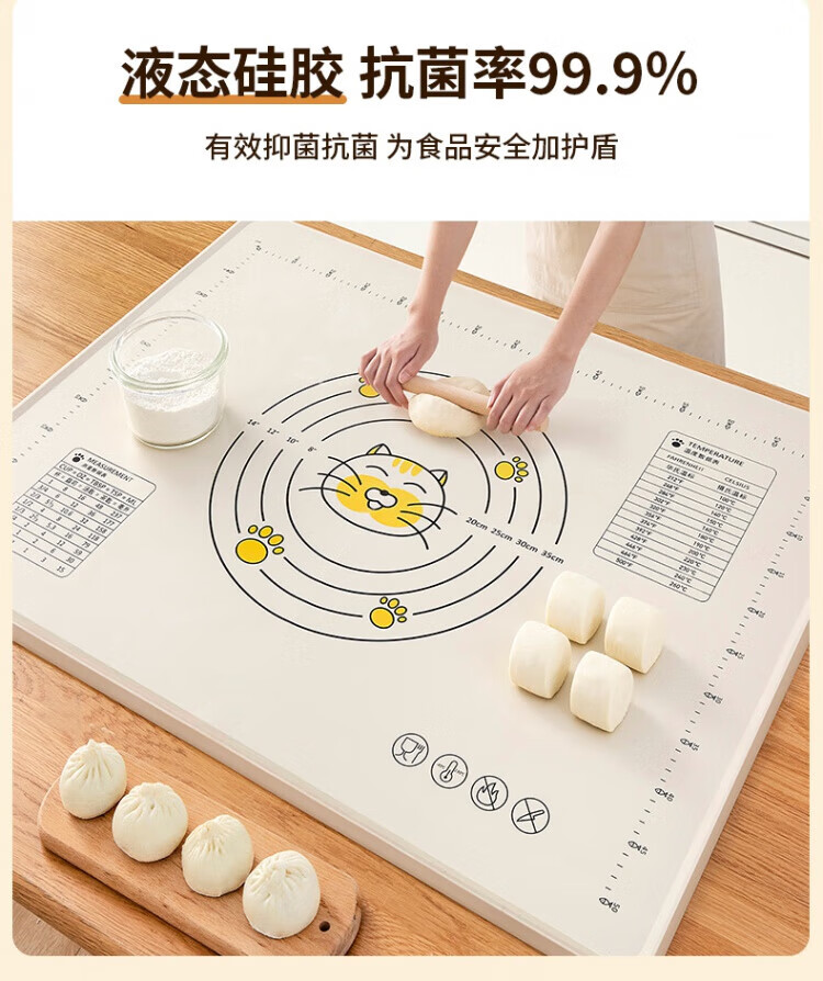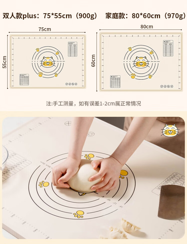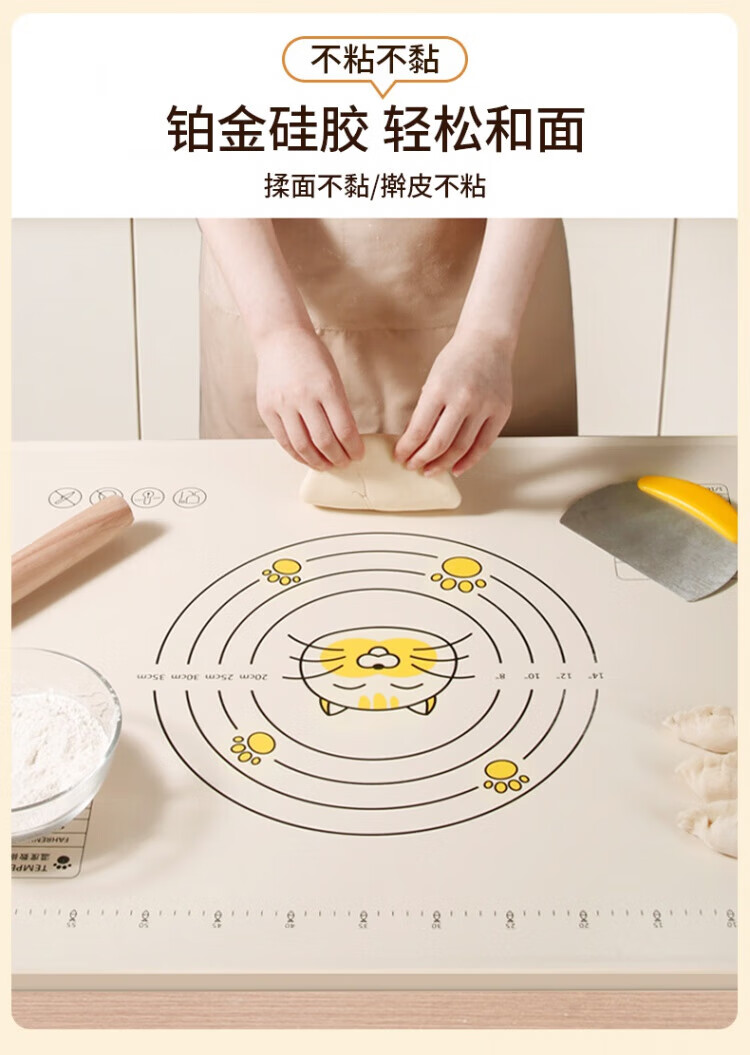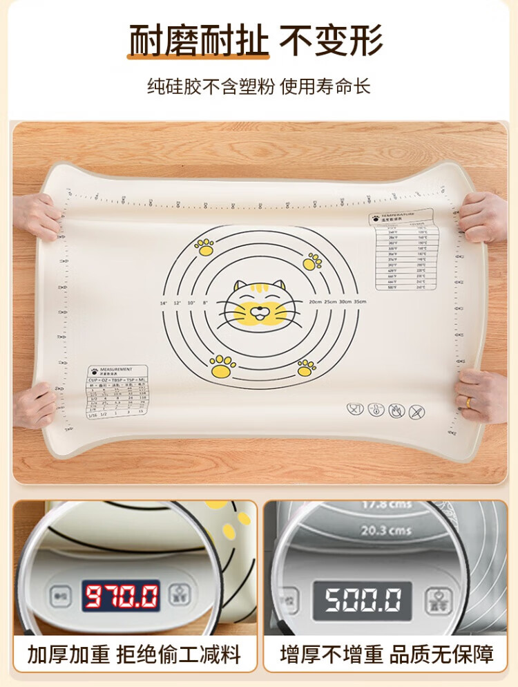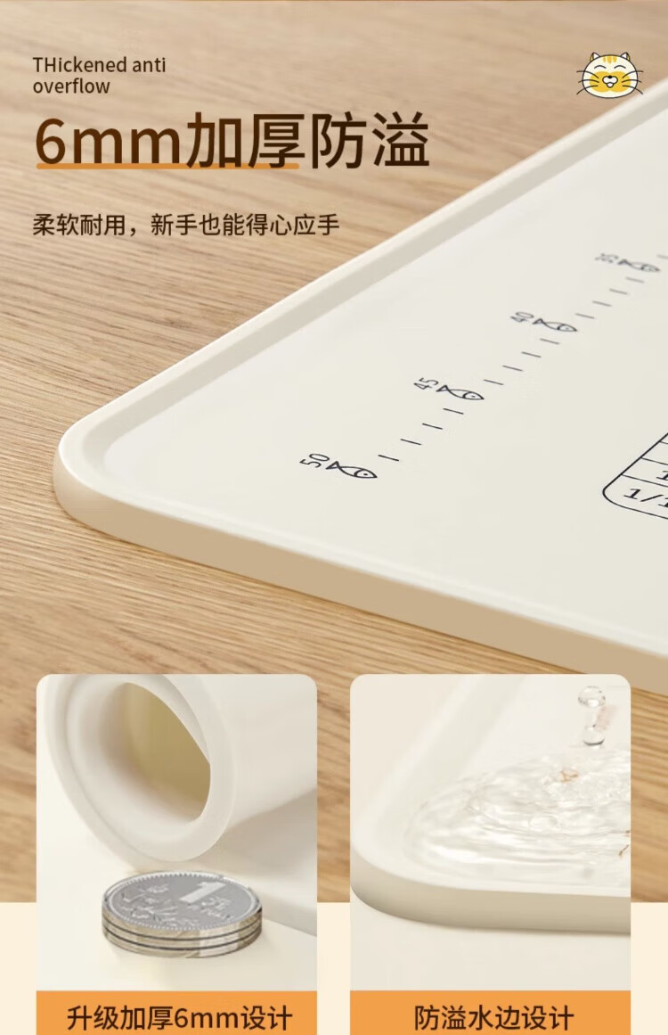 WCZ德国品质硅胶揉面垫加厚食品级家用擀面和面板垫子防滑加大号厨房 60*40【特厚6MM550g】赠6件套