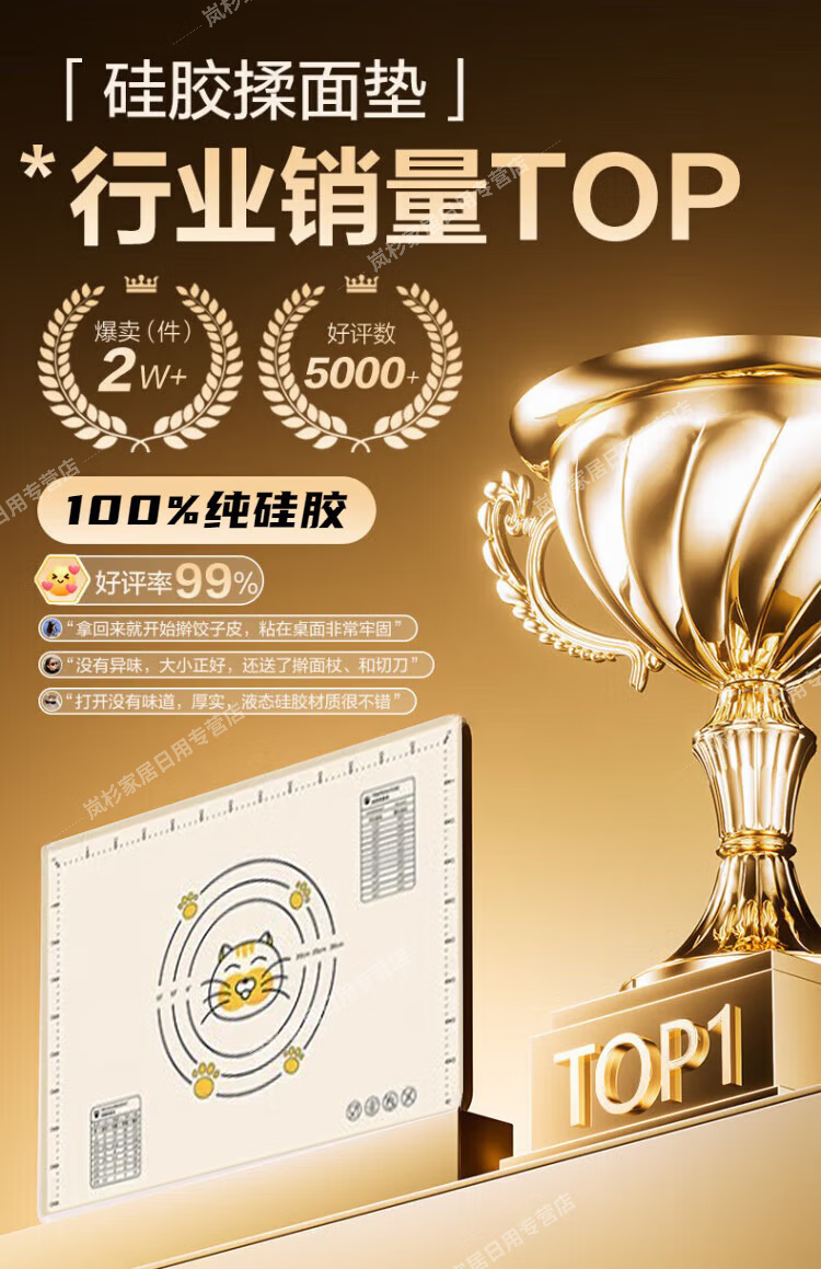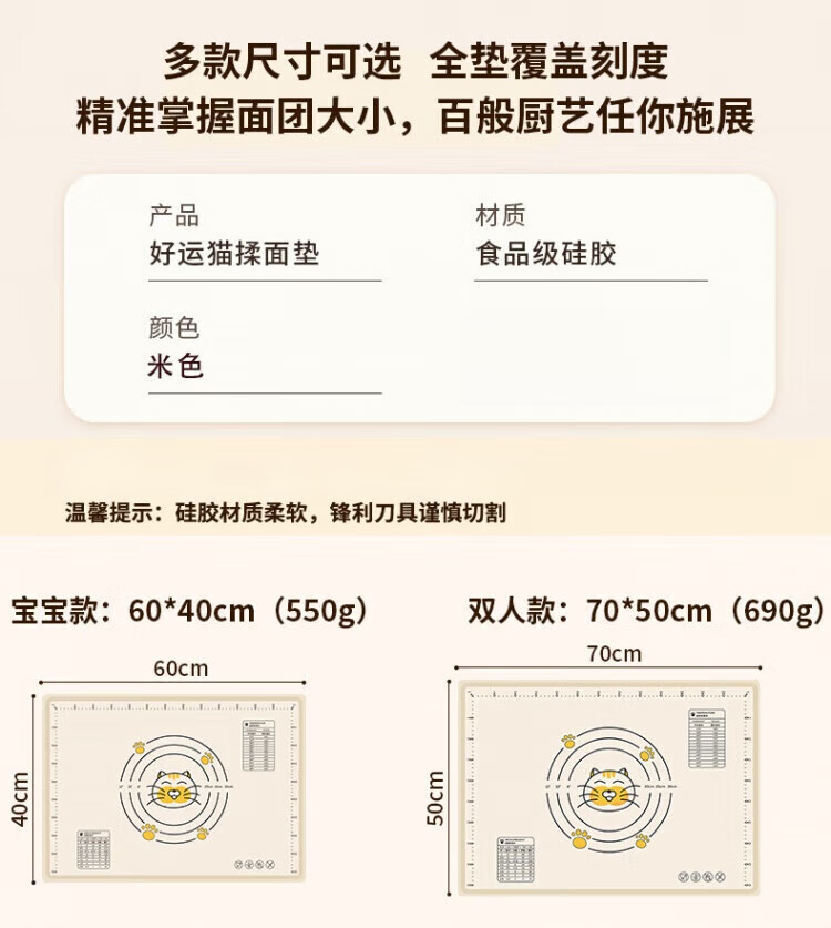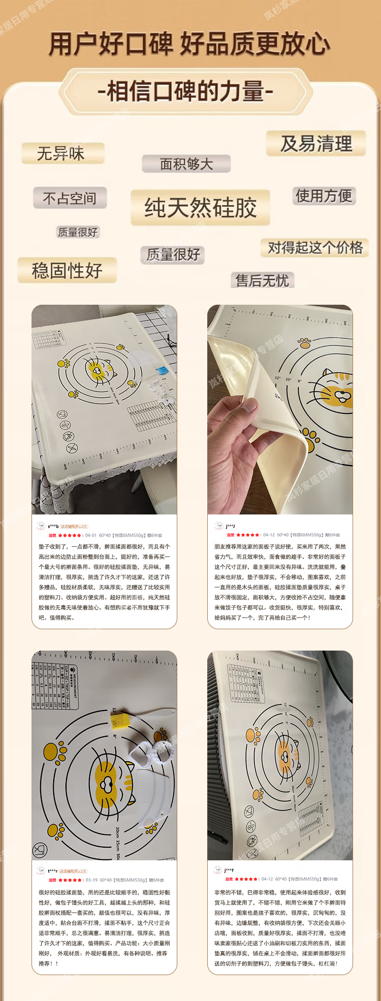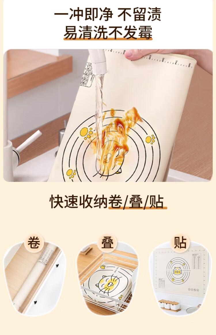 WCZ德国品质硅胶揉面垫加厚食品级家用擀面和面板垫子防滑加大号厨房 60*40【特厚6MM550g】赠6件套