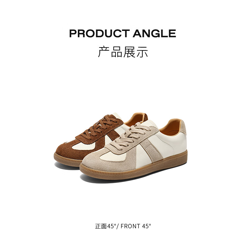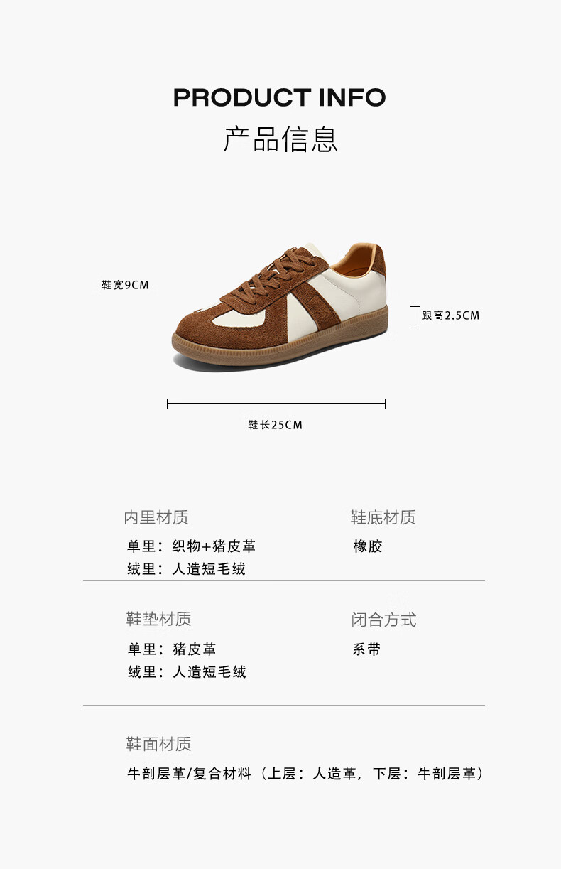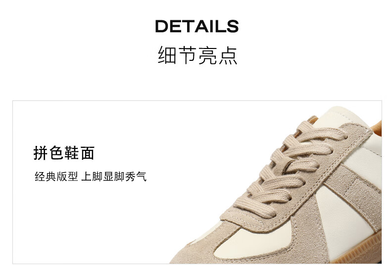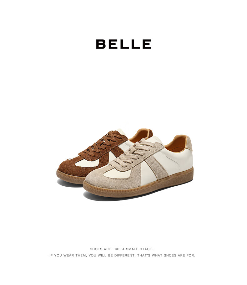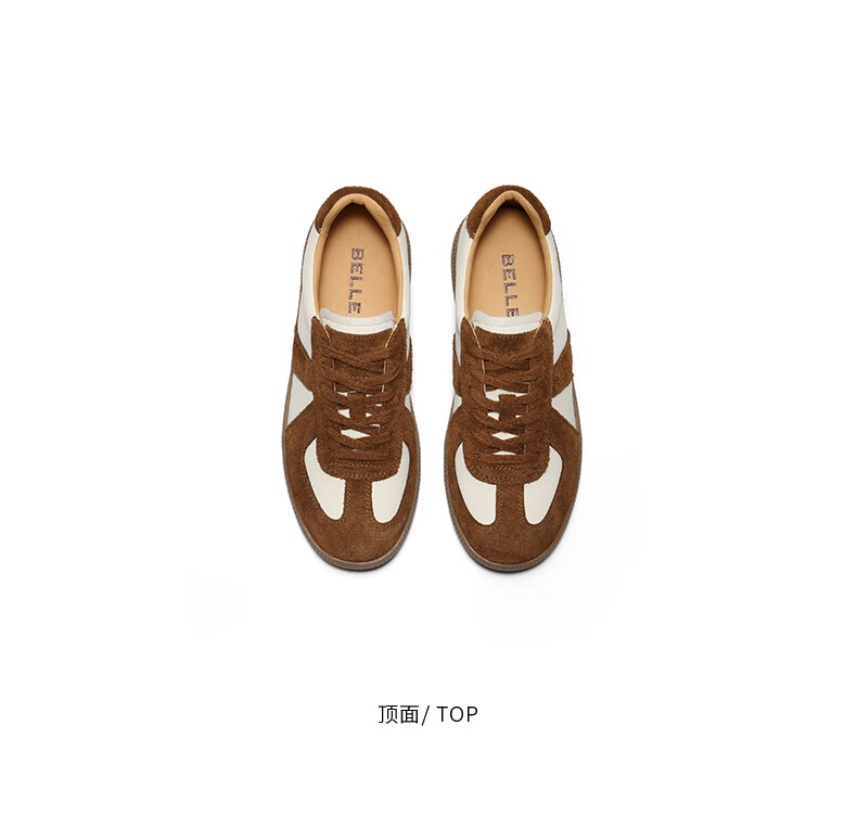 百丽(Belle)时尚撞色德训鞋女2025秋新舒适薄底运动休闲板鞋B2934CM5 灰色-绒里 36