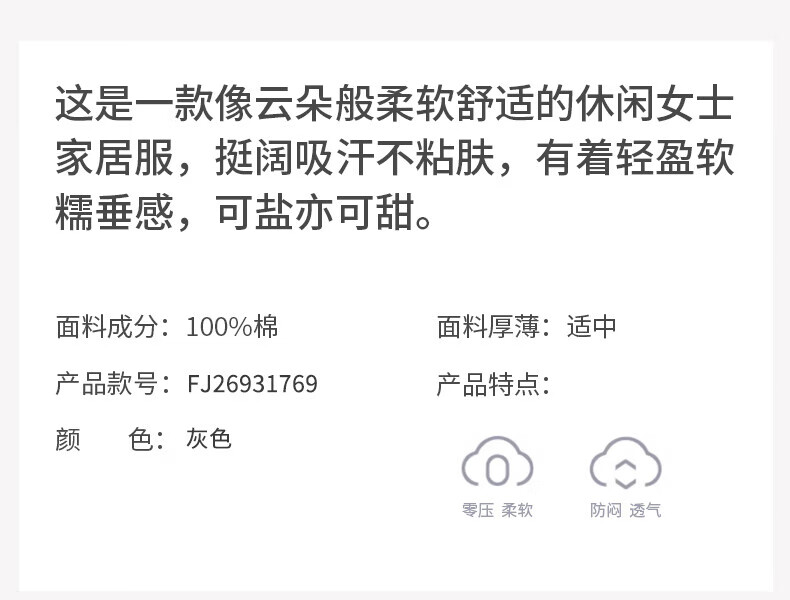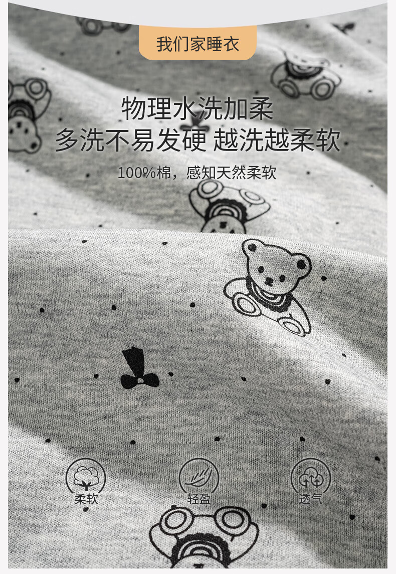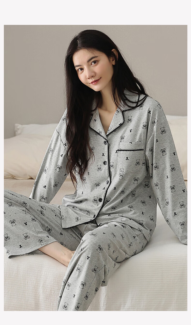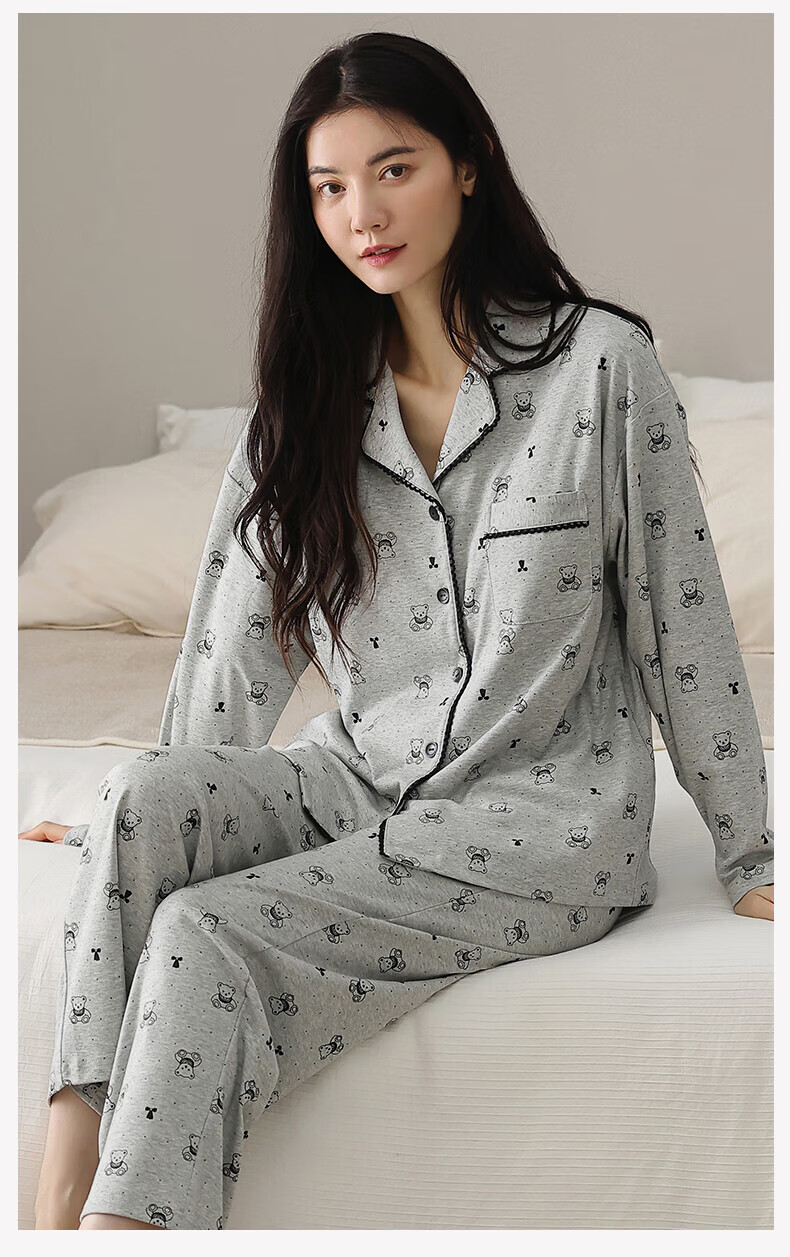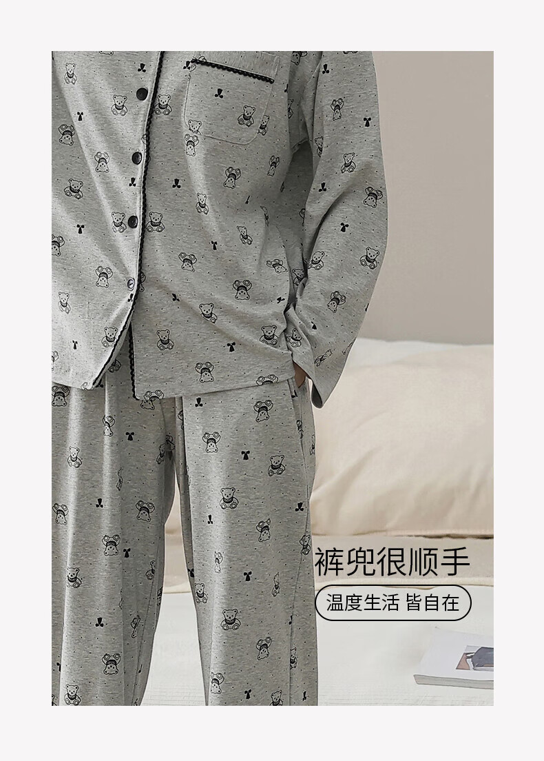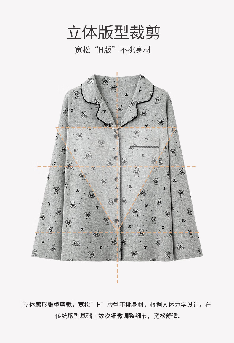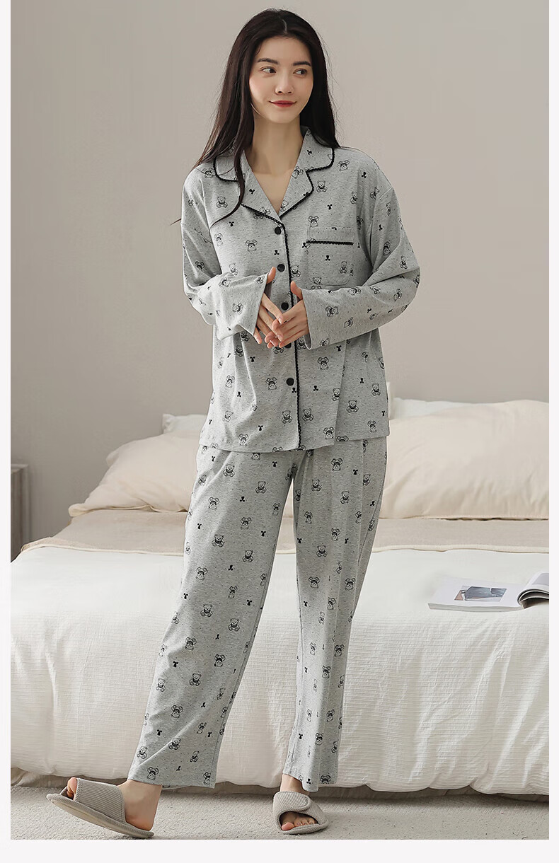 芬腾睡衣女纯棉2025秋新款亲肤柔软翻领翻领卡通宽松家居服套装 灰色 L