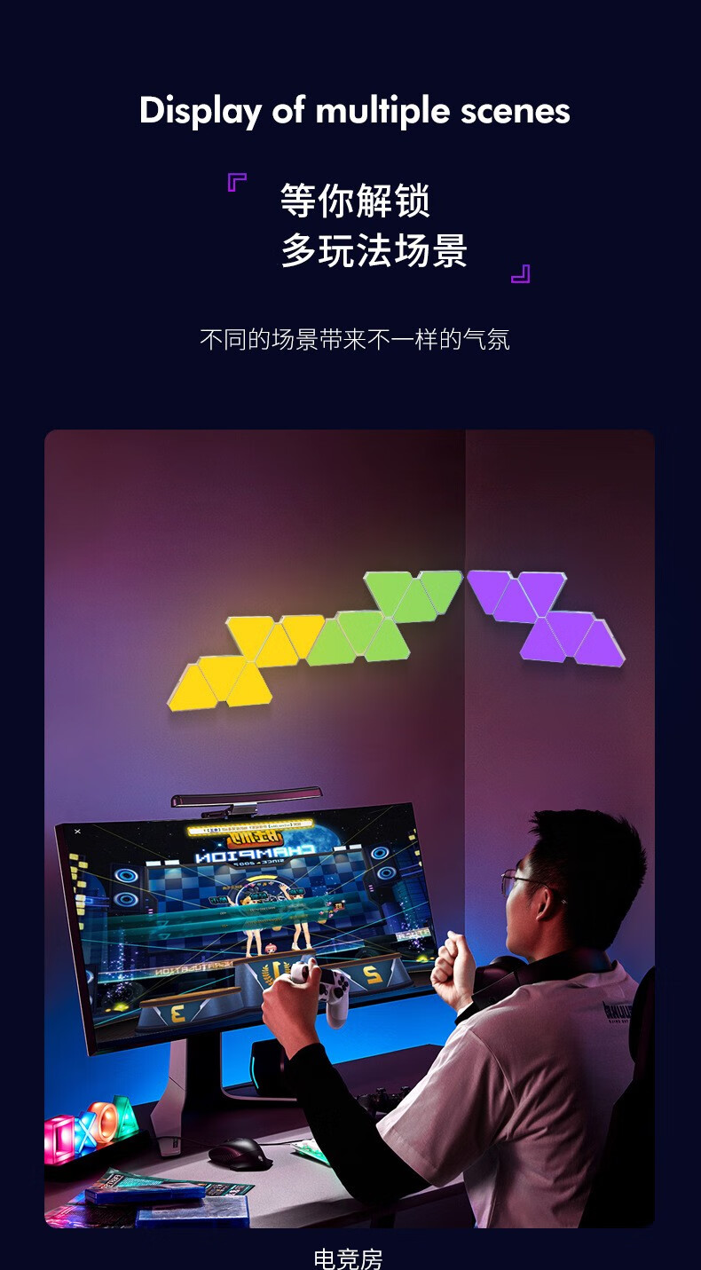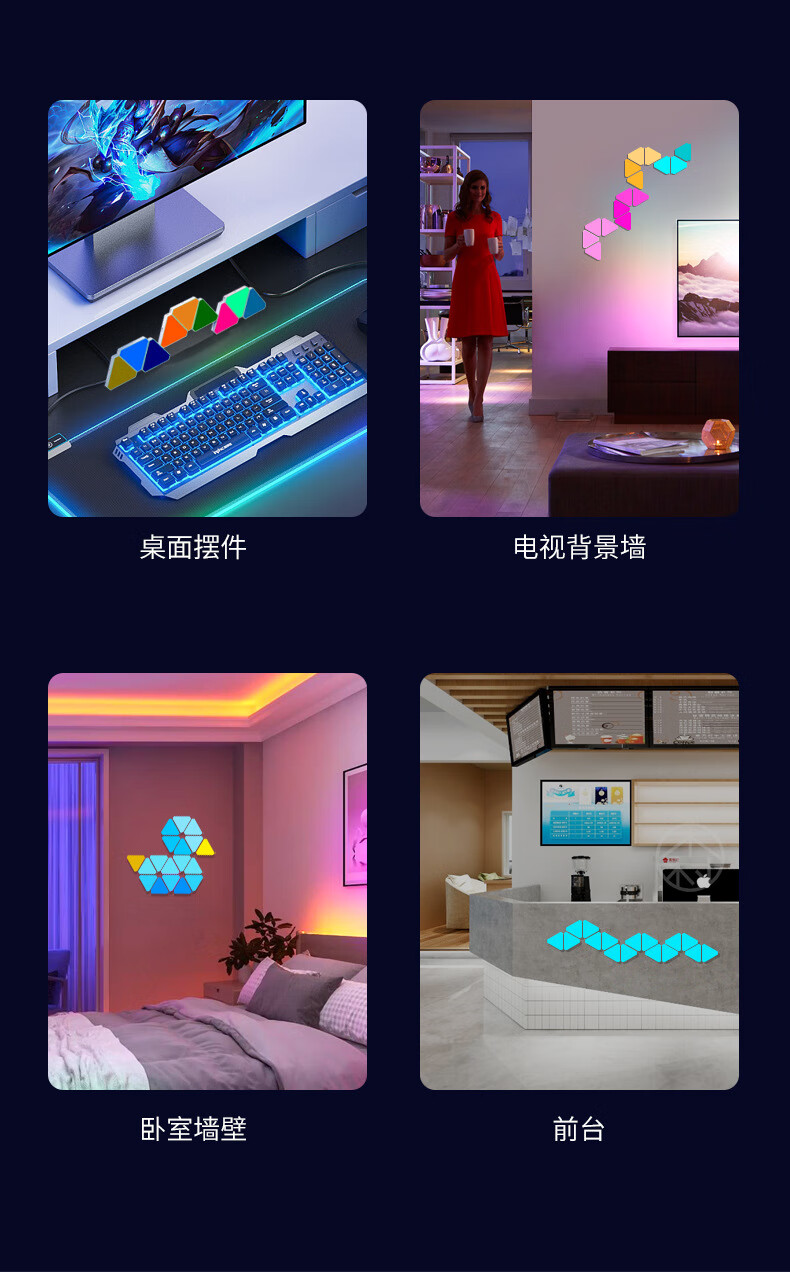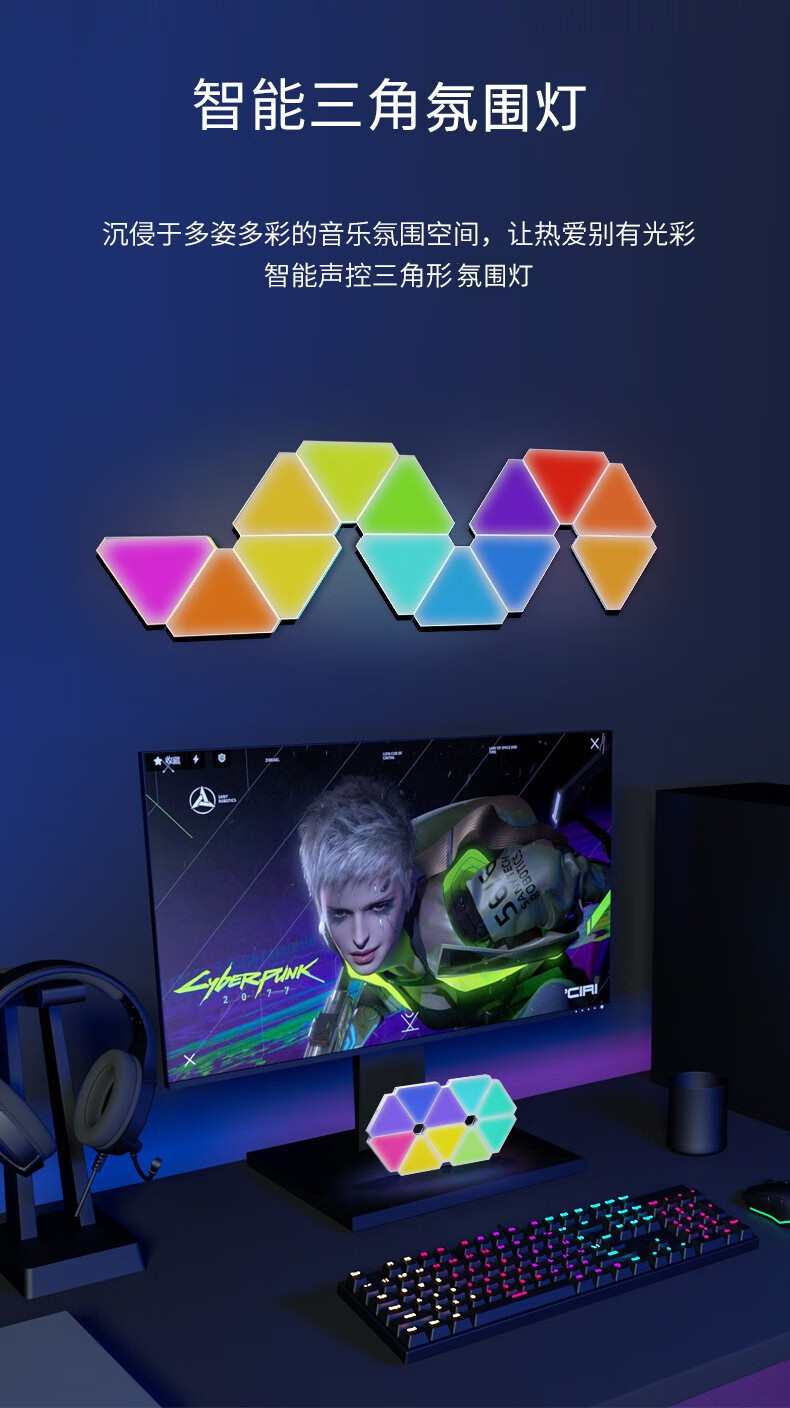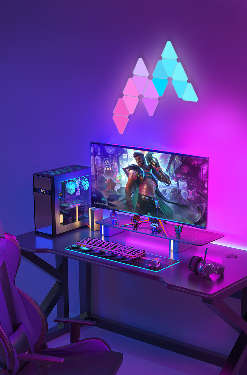 维亿曼奇光板蜂窝灯电竞房氛围灯台球厅卧室装饰电脑背景拼接灯三角形 支持接入小爱+遥控APP10个