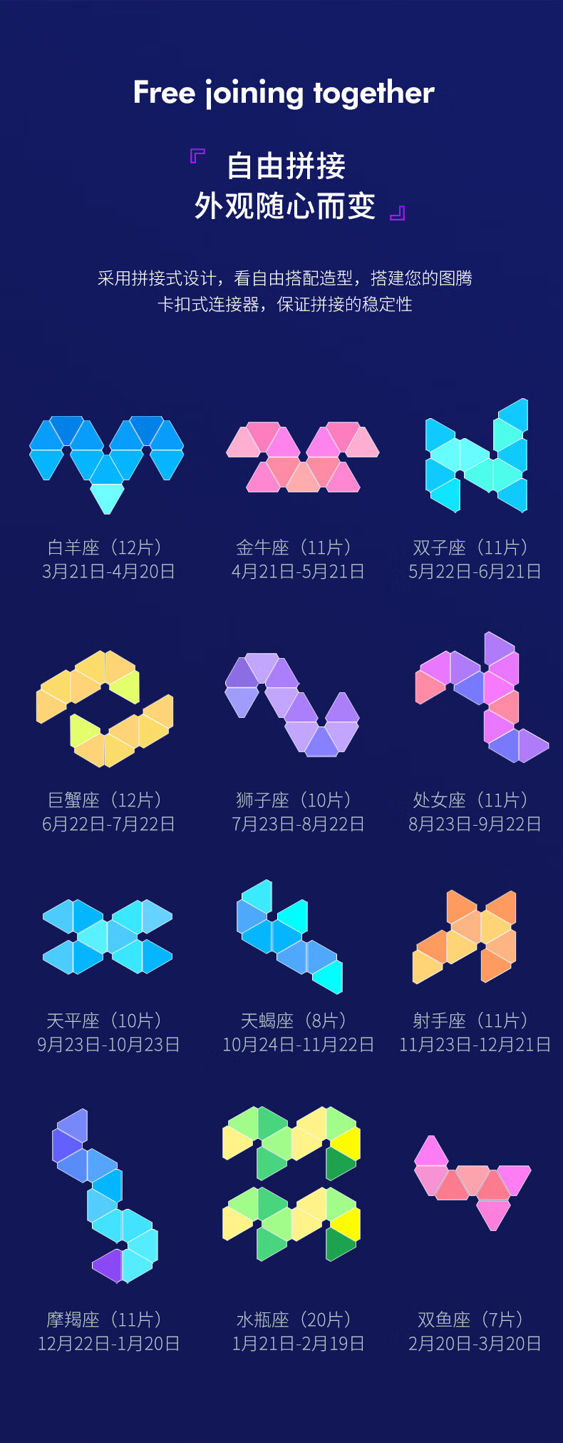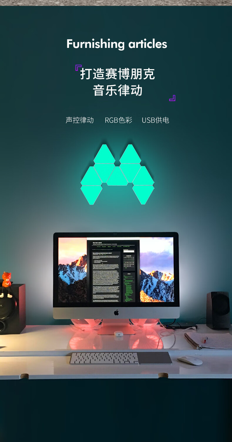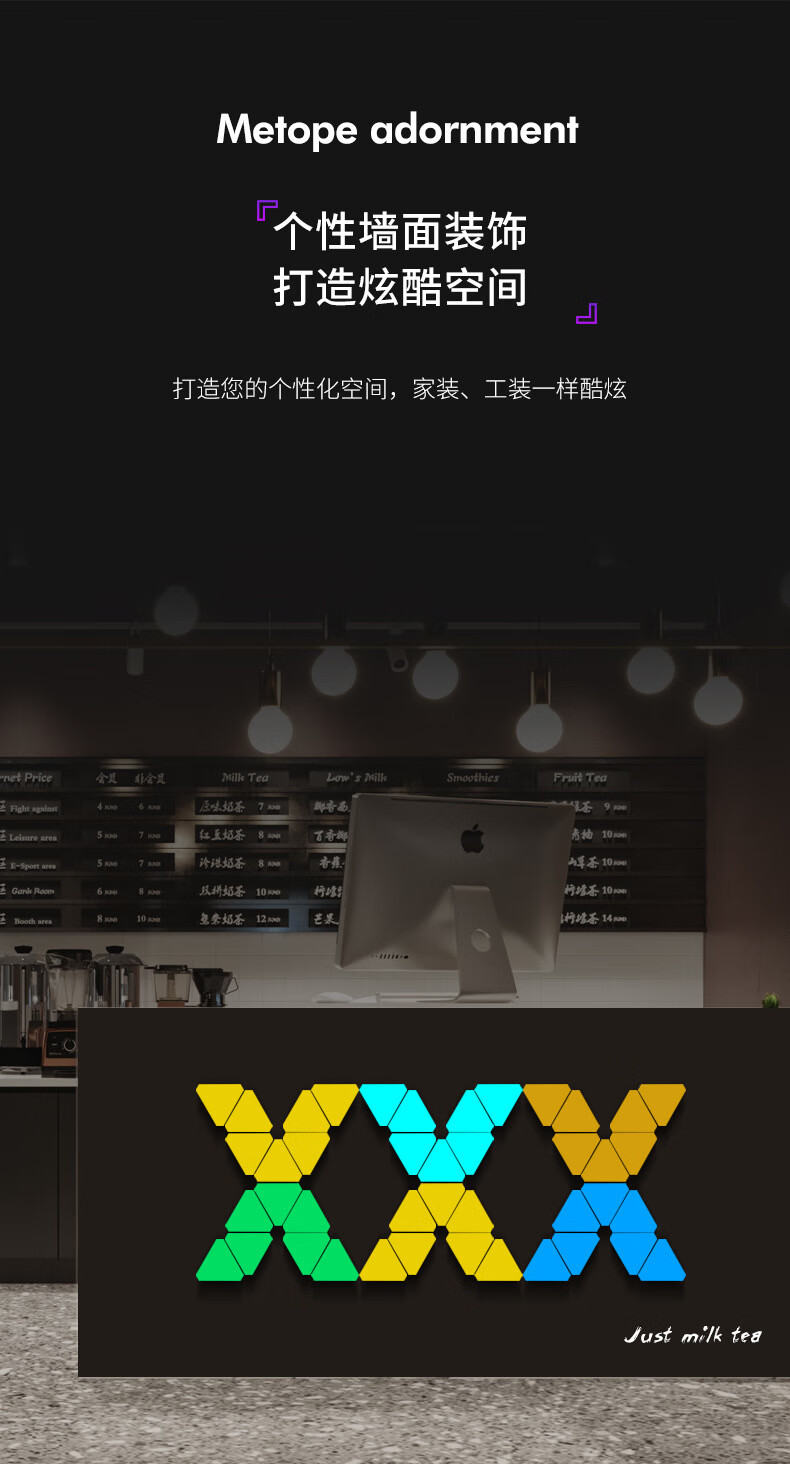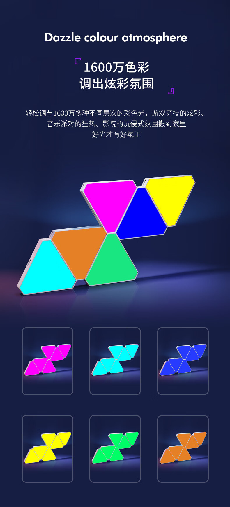 维亿曼奇光板蜂窝灯电竞房氛围灯台球厅卧室装饰电脑背景拼接灯三角形 支持接入小爱+遥控APP10个