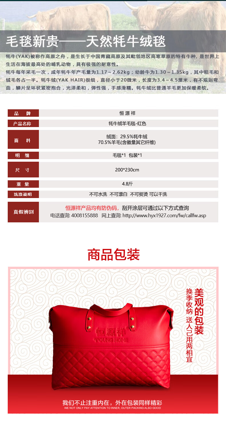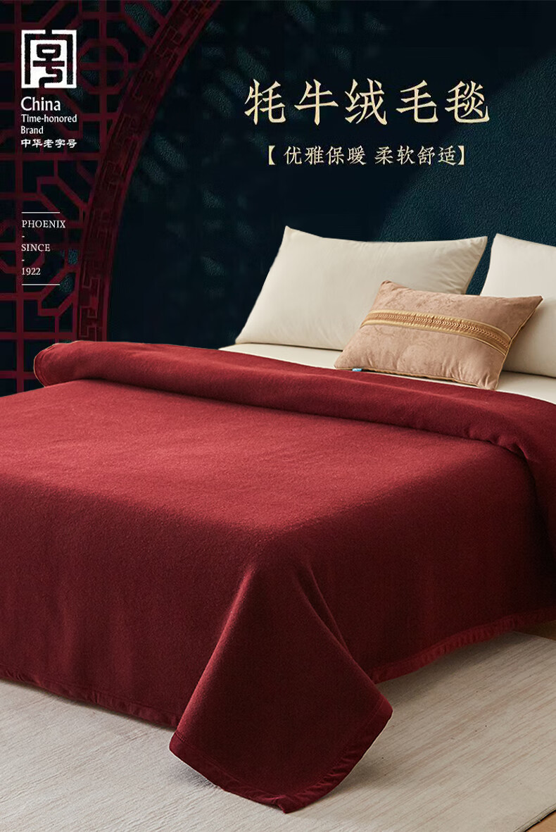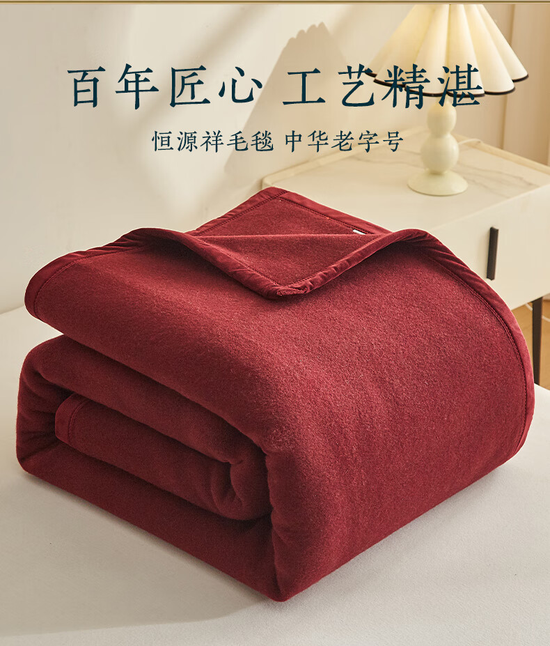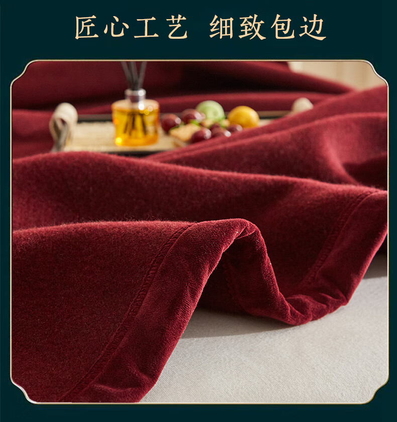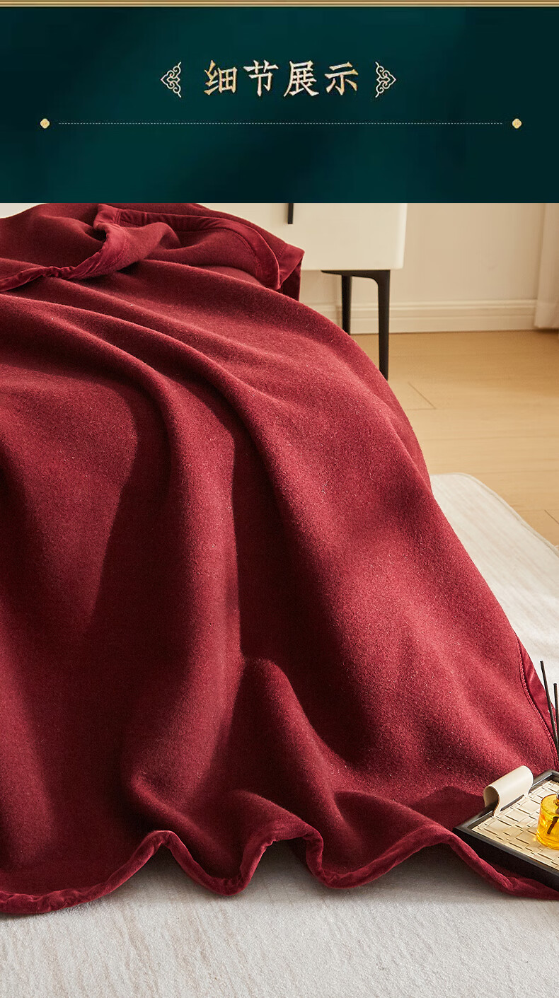 恒源祥牦牛绒羊毛毯冬季加厚加绒宿舍盖毯办公室午休毯子沙发毯午睡毯子 牦牛绒羊毛毯-红色 200*230cm 【总重4.8斤】
