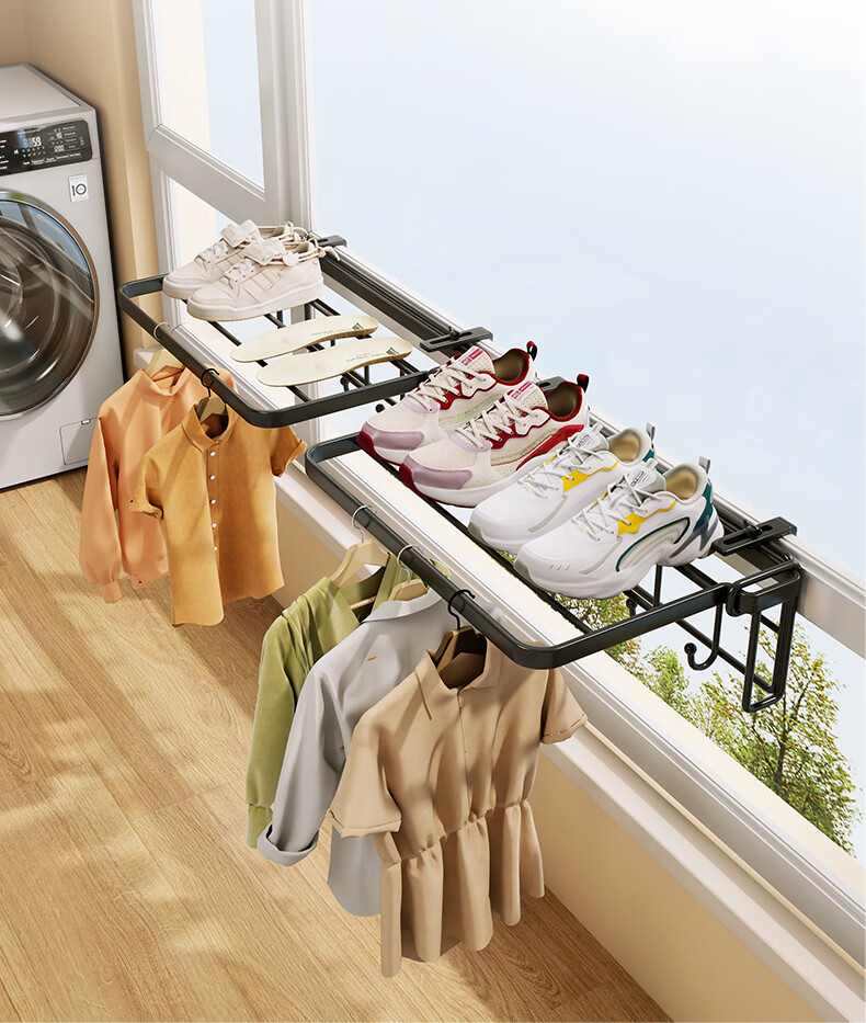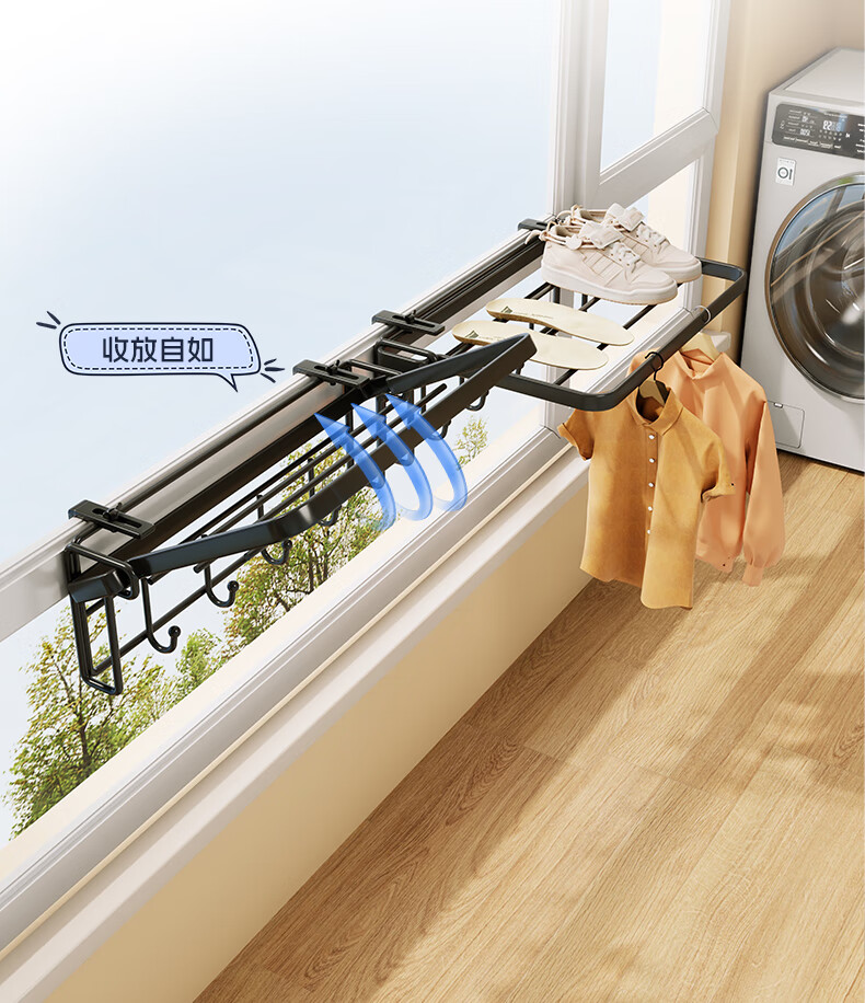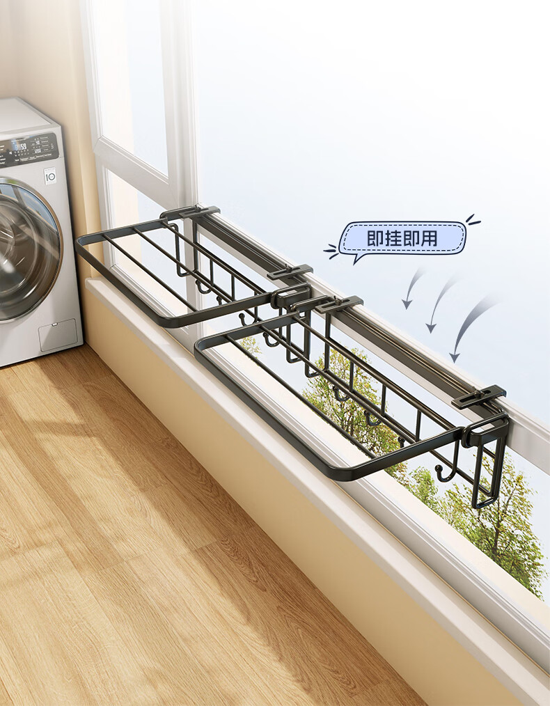 木格格暖气片置物架晾衣架免打孔专用收纳架挂钩支架储物架多功能置物架 黑色小号(1个装)