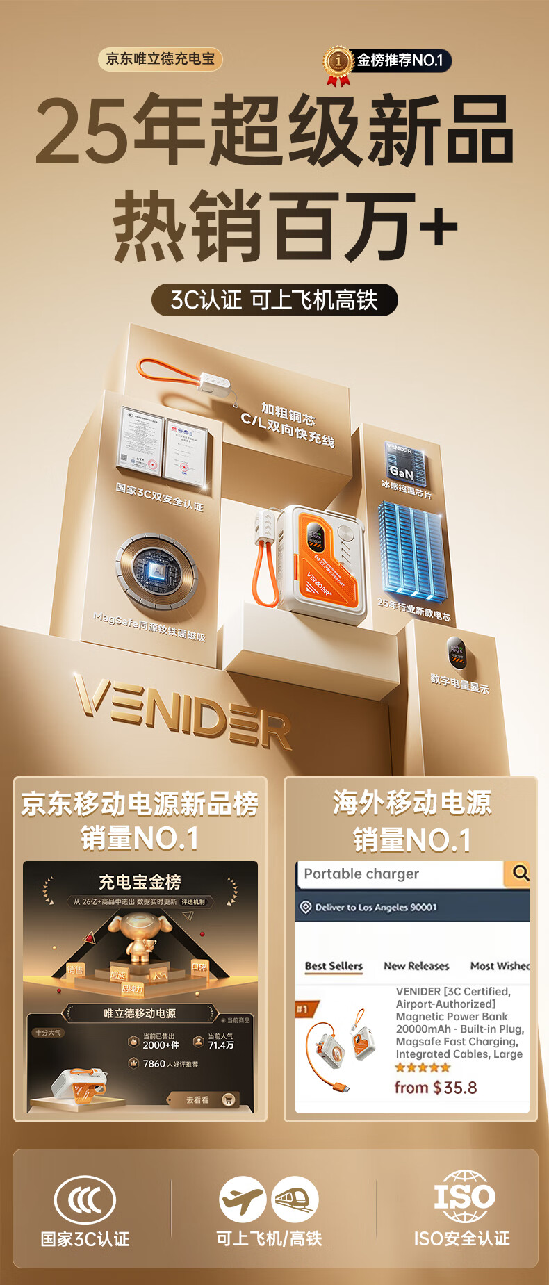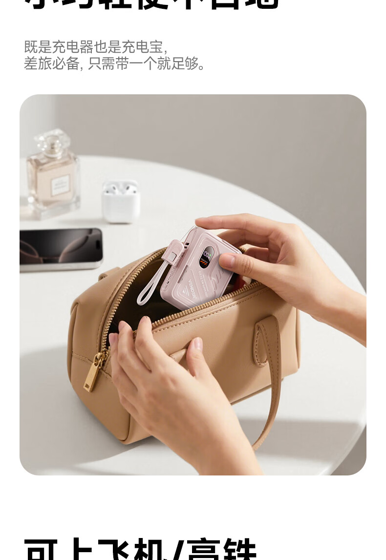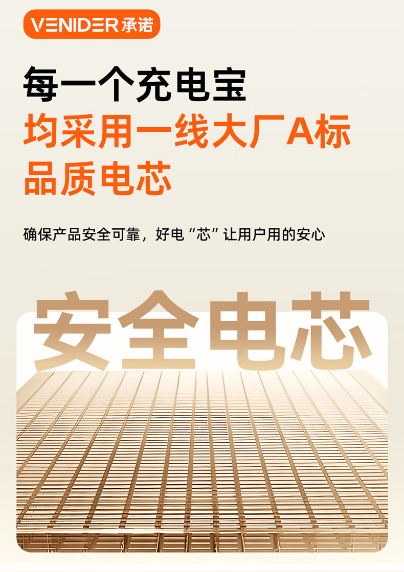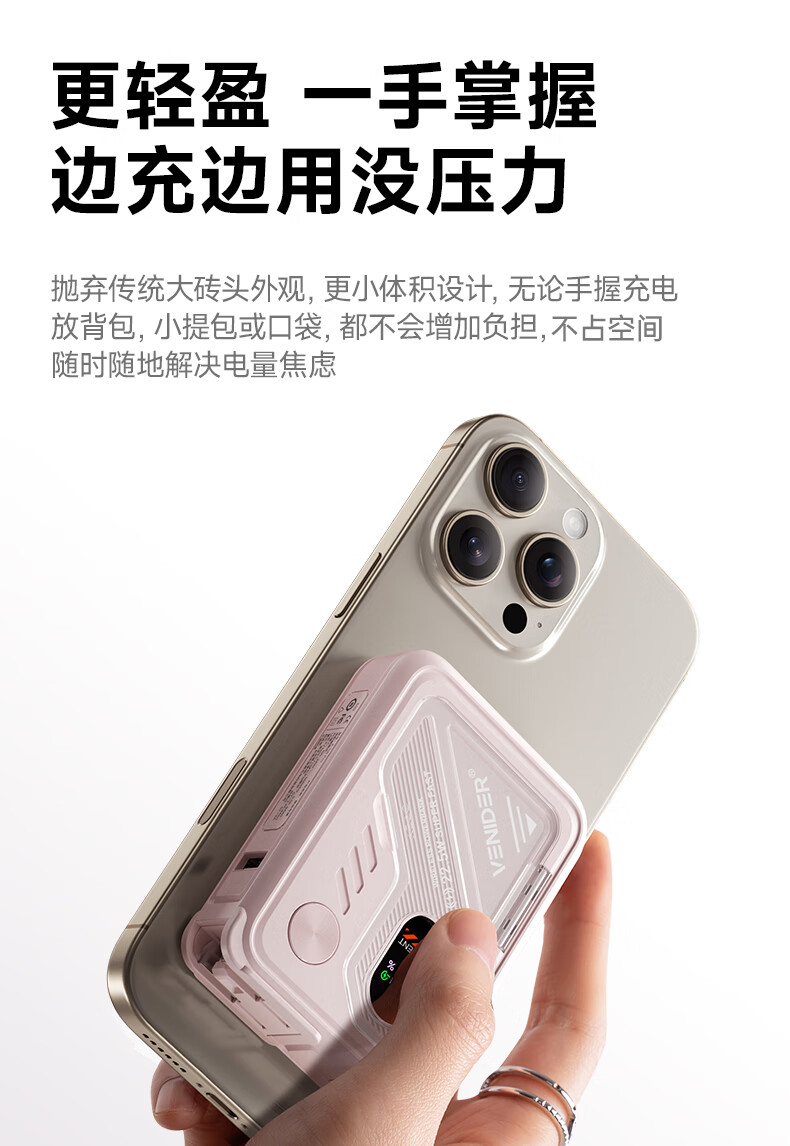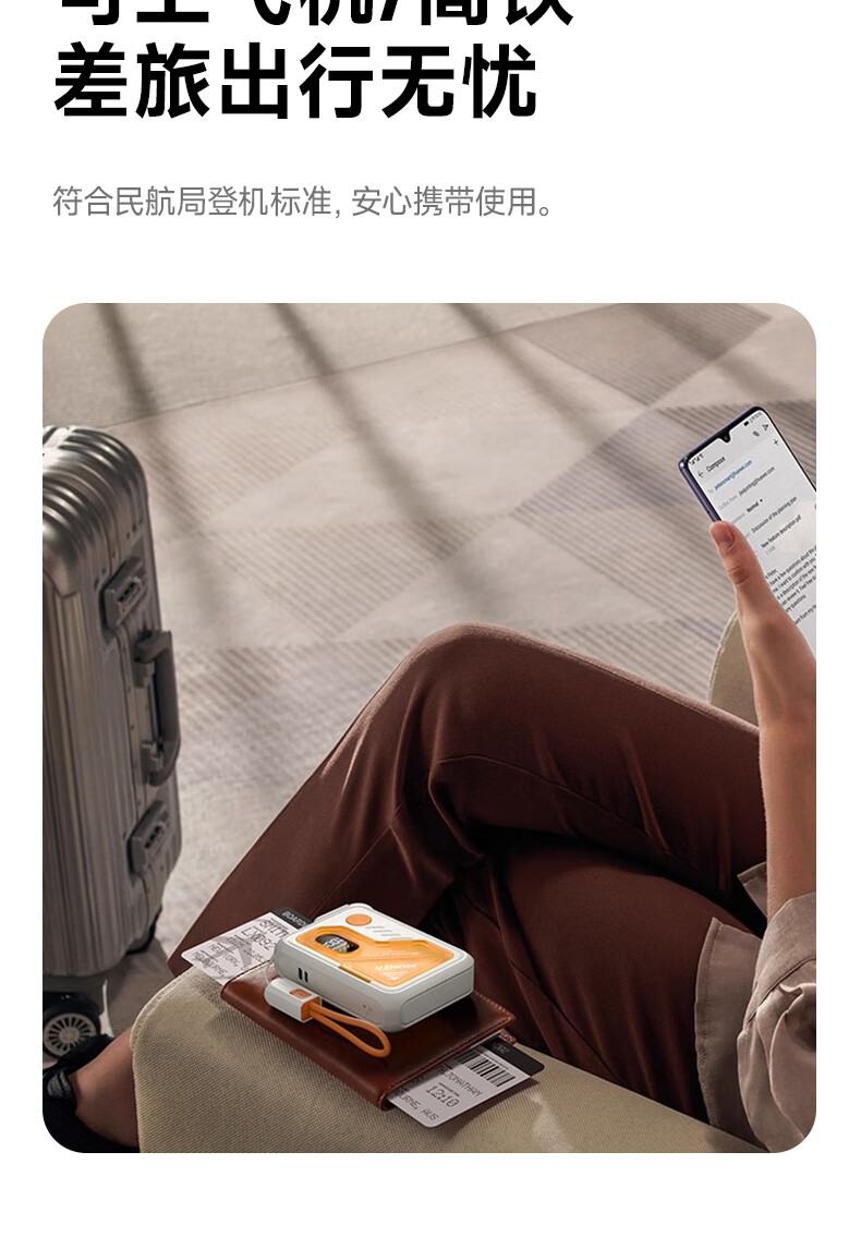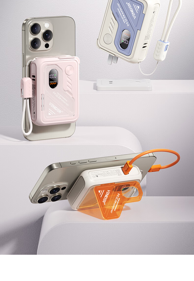 VENIDER【国家3C安全认证】【可上飞机高铁】磁吸充电宝20000mAh超级快充自带线移动电源适用苹果小米 顶配版【2万毫安时+磁吸+AC插头+自带线】米橙色