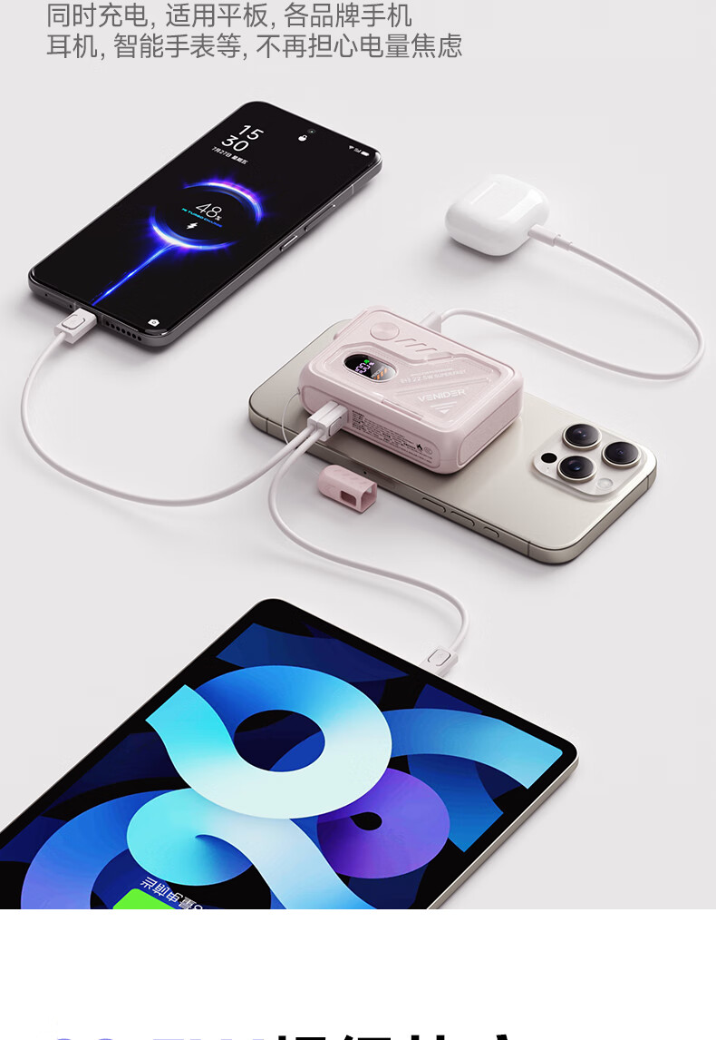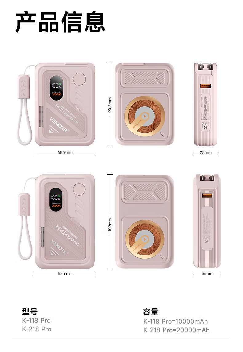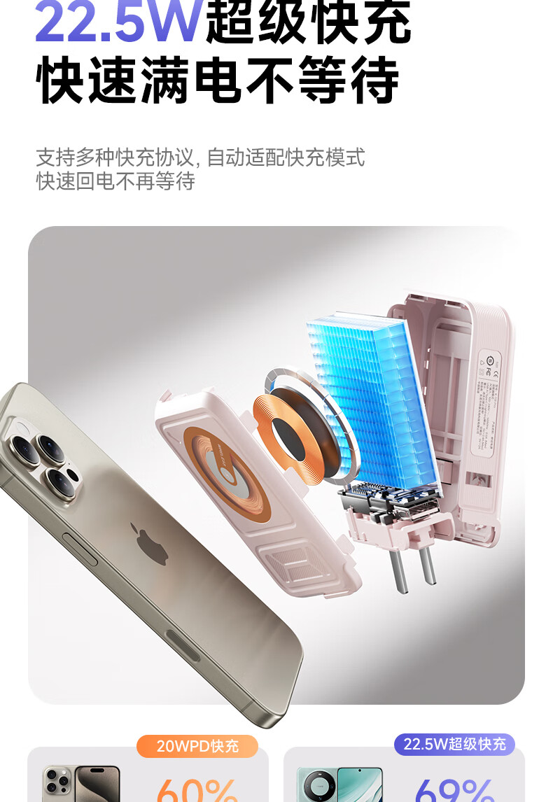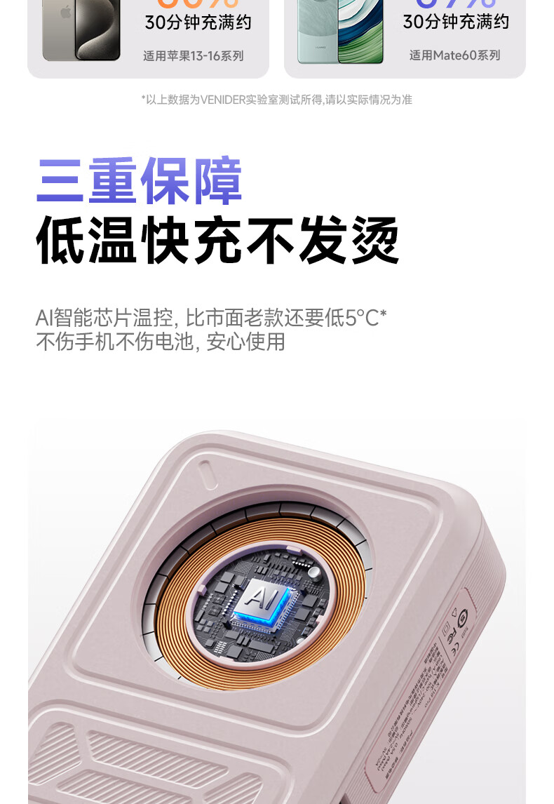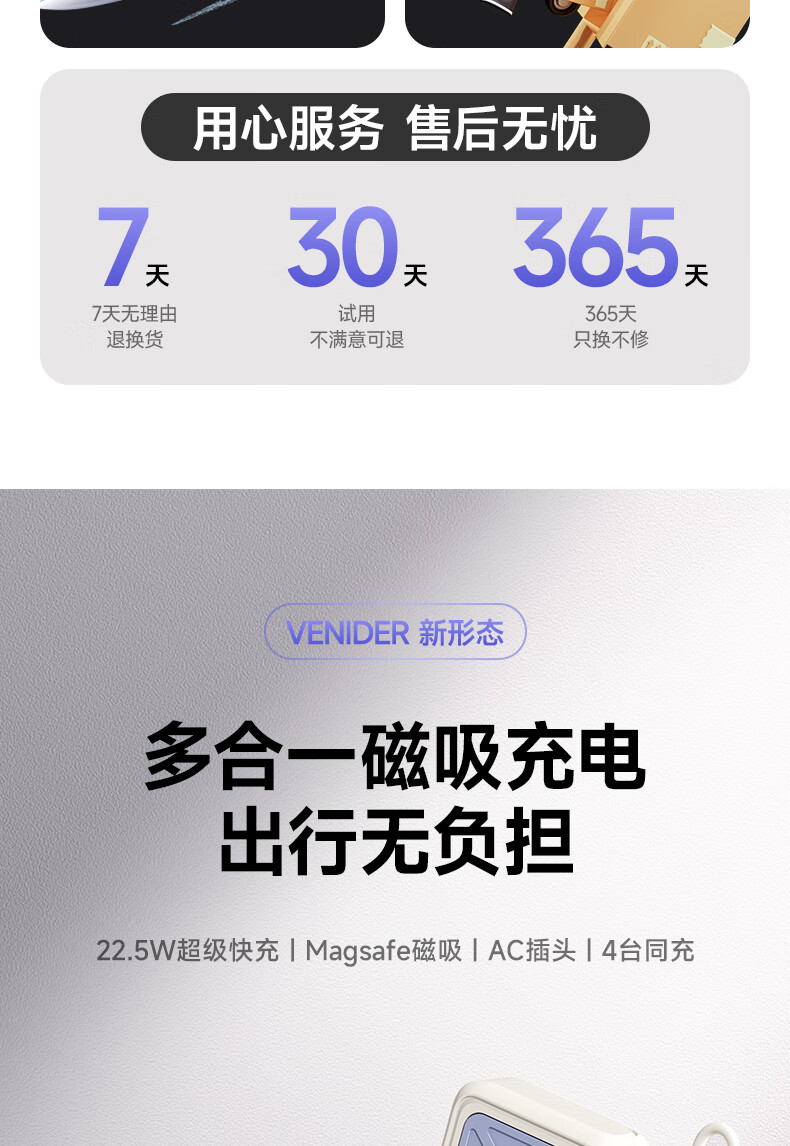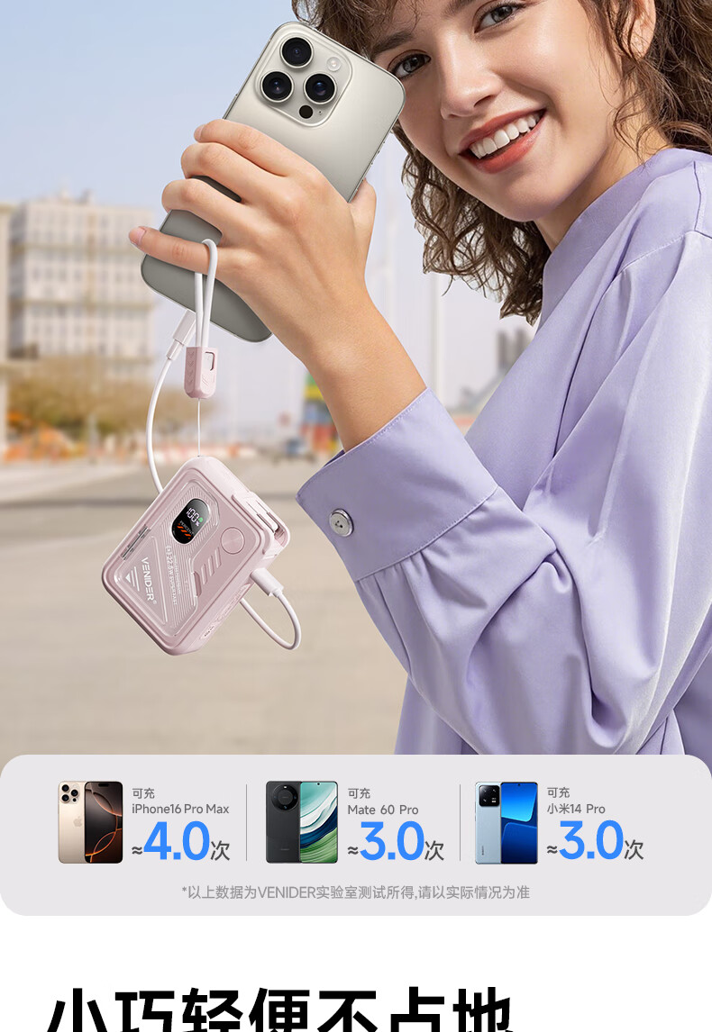VENIDER【国家3C安全认证】【可上飞机高铁】磁吸充电宝20000mAh超级快充自带线移动电源适用苹果小米 顶配版【2万毫安时+磁吸+AC插头+自带线】米橙色