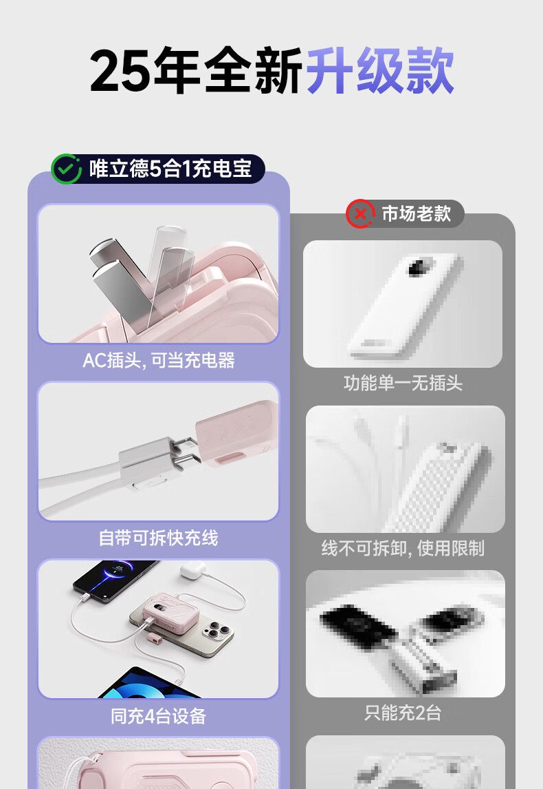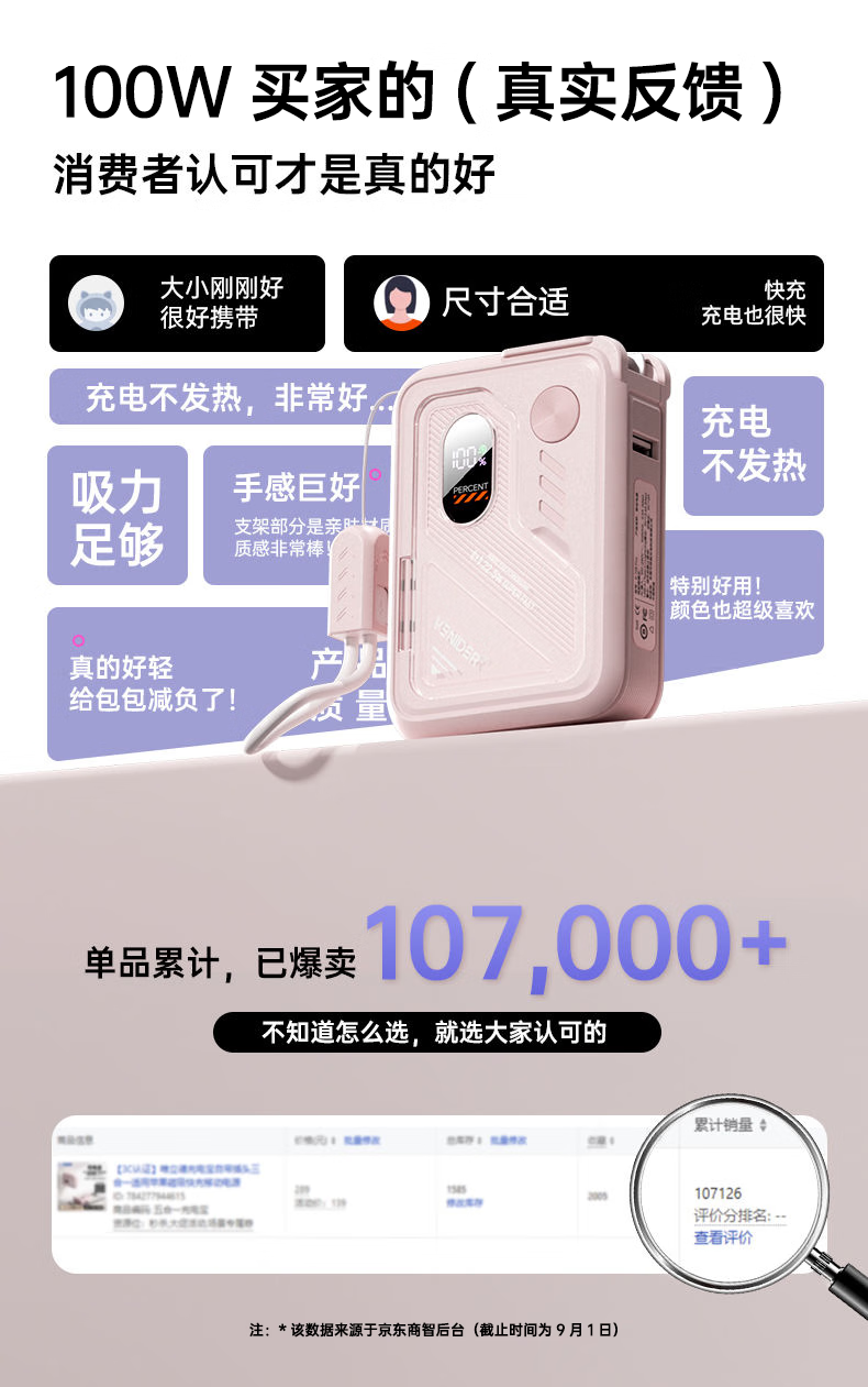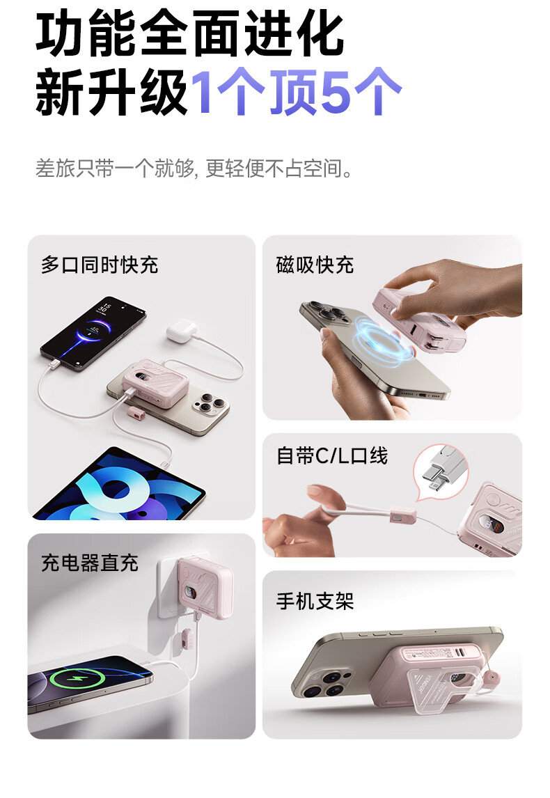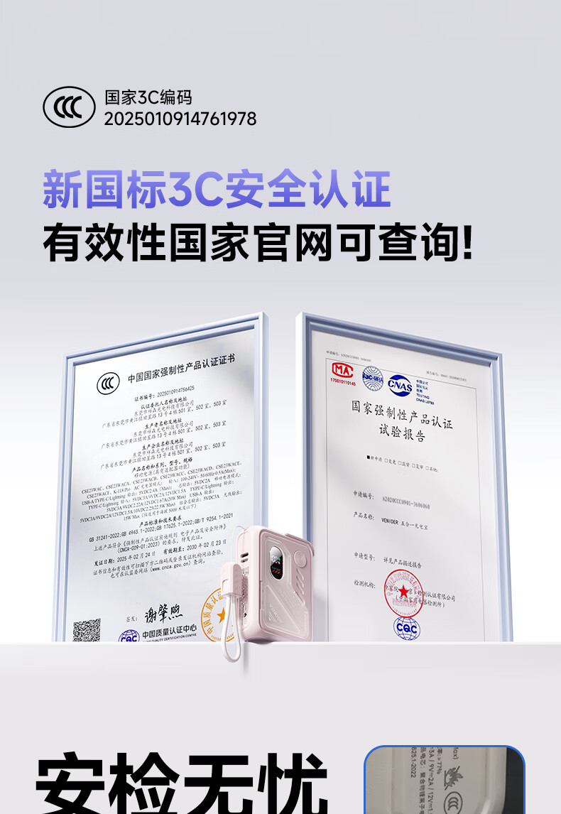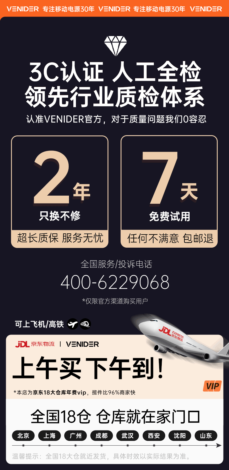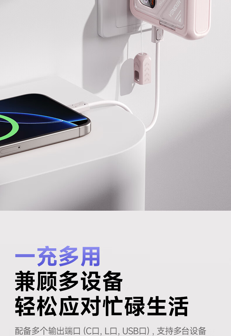 VENIDER【国家3C安全认证】【可上飞机高铁】磁吸充电宝20000mAh超级快充自带线移动电源适用苹果小米 顶配版【2万毫安时+磁吸+AC插头+自带线】米橙色