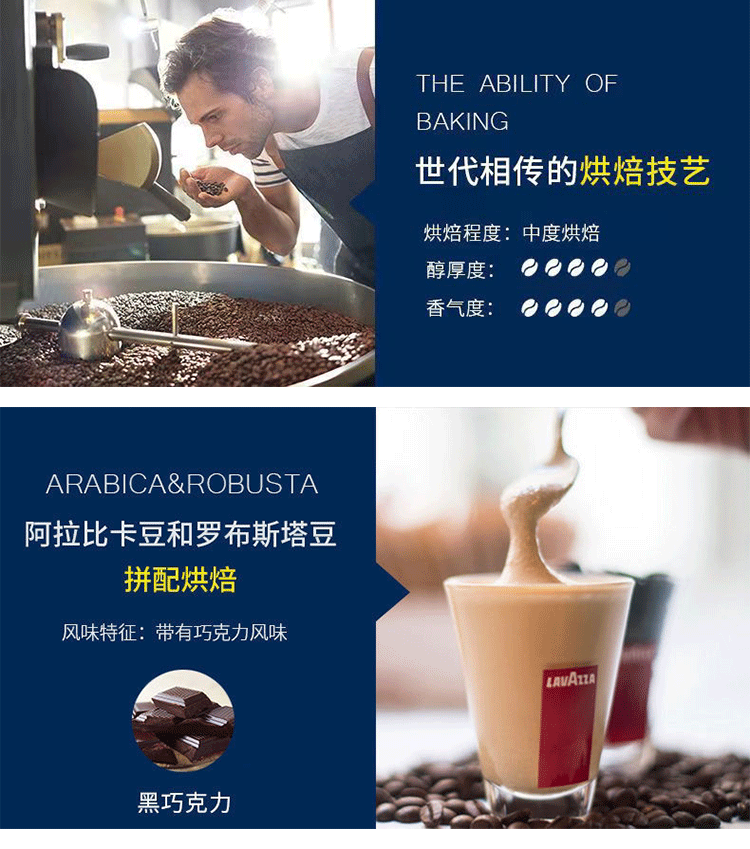 拉瓦萨(LAVAZZA)拉瓦萨意大利进口意式醇香特浓中度烘焙咖啡豆冷萃咖啡1kg 醇香咖啡豆1000g