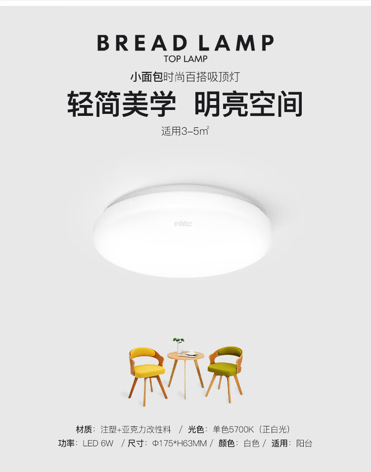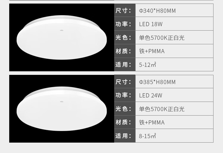雷士(NVC)led吸顶灯阳台灯现代简约家用圆形房间卧室灯百搭灯具 24W正白光