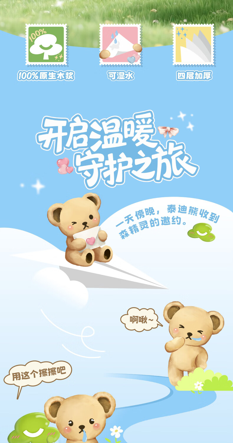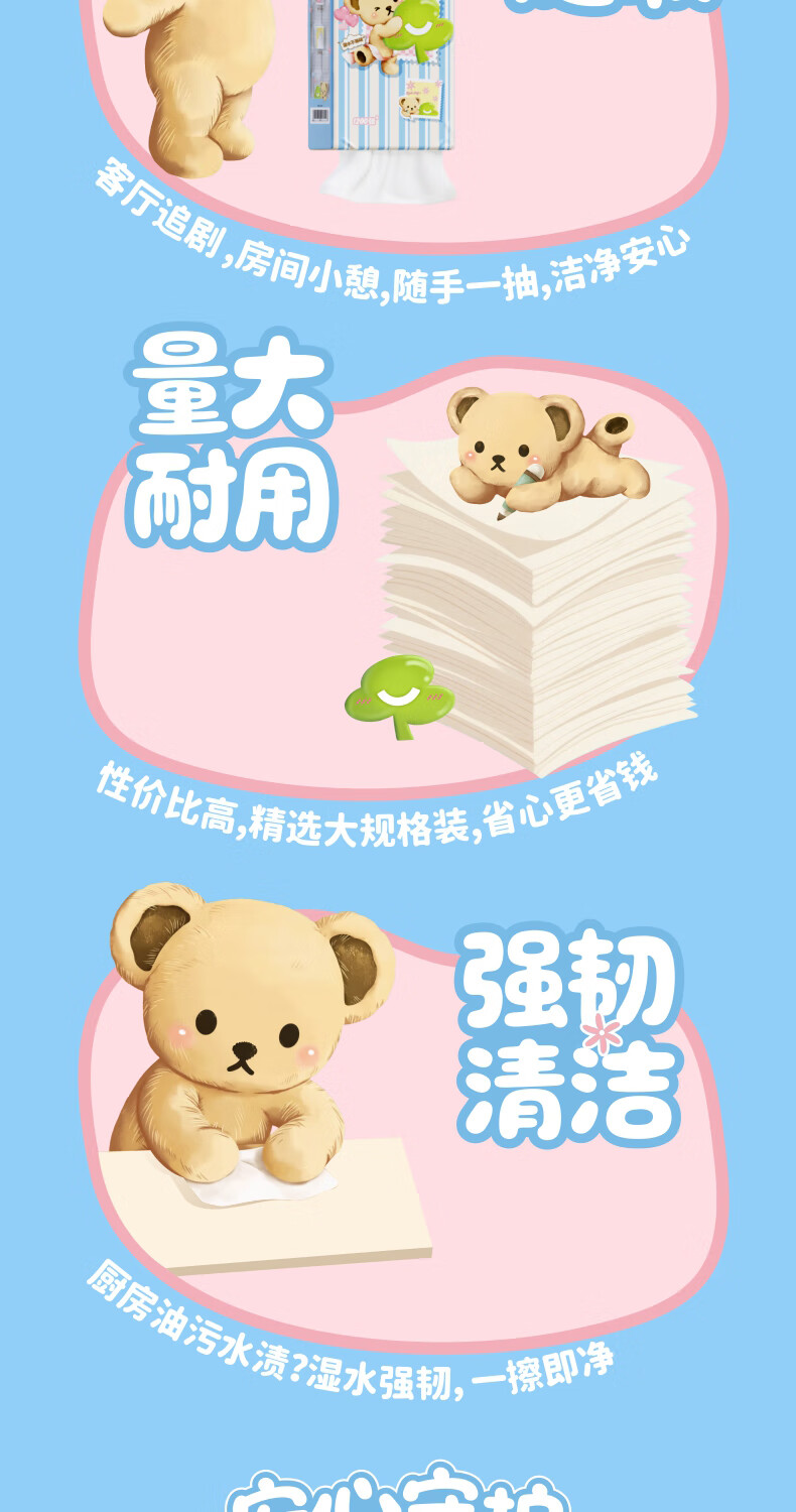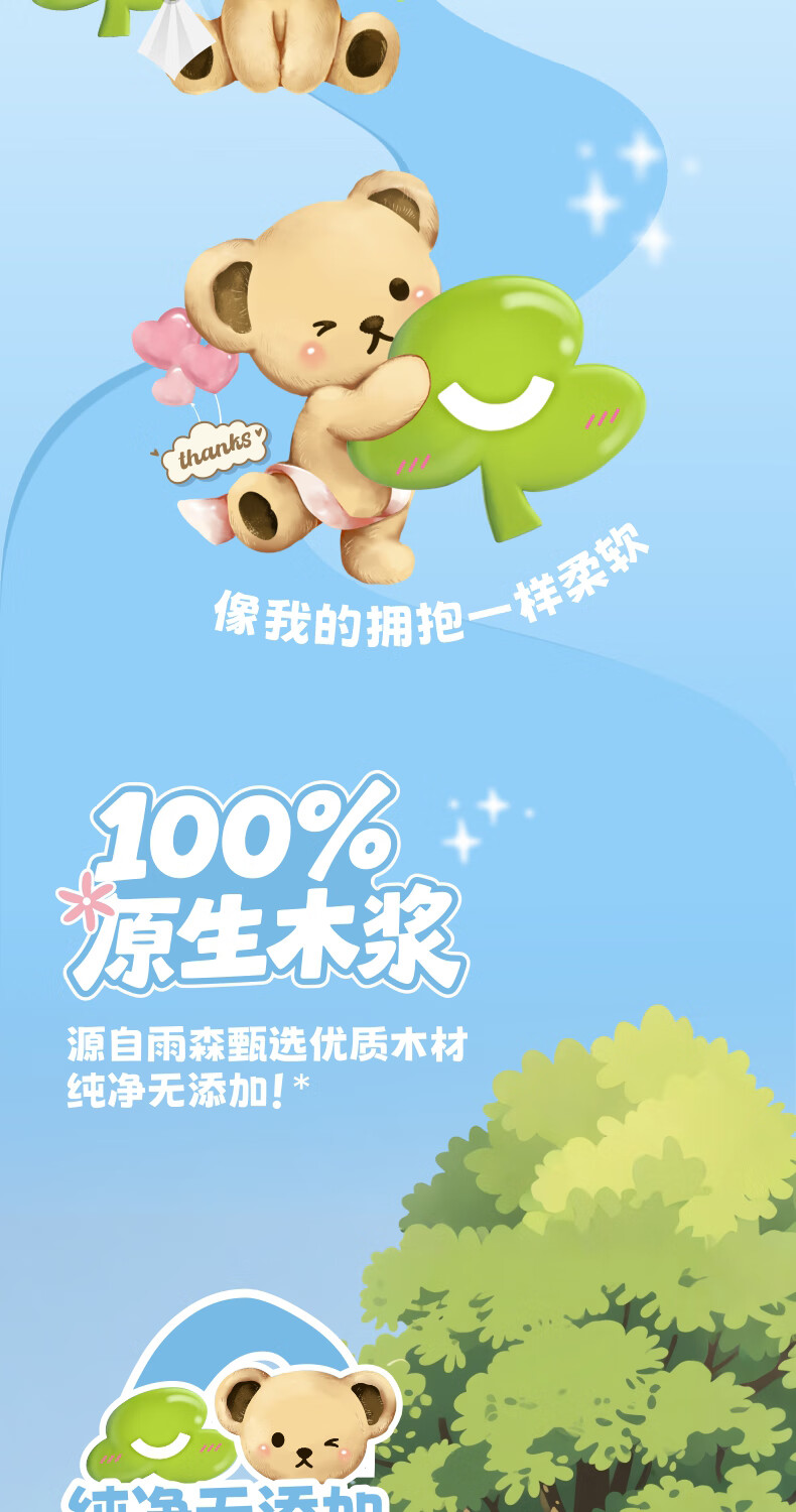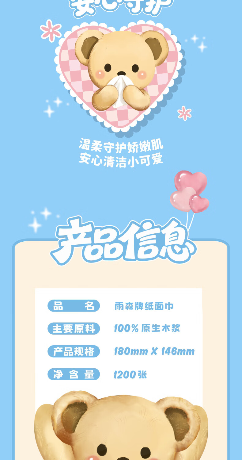 雨森(YUSEN)泰迪熊悬挂式抽纸1200张300抽4层加厚可湿水原生木浆纸抽纸面巾 4层 300抽*4提 【超值新品】