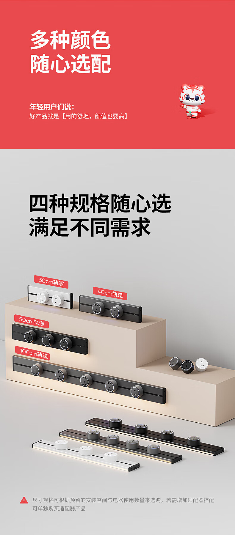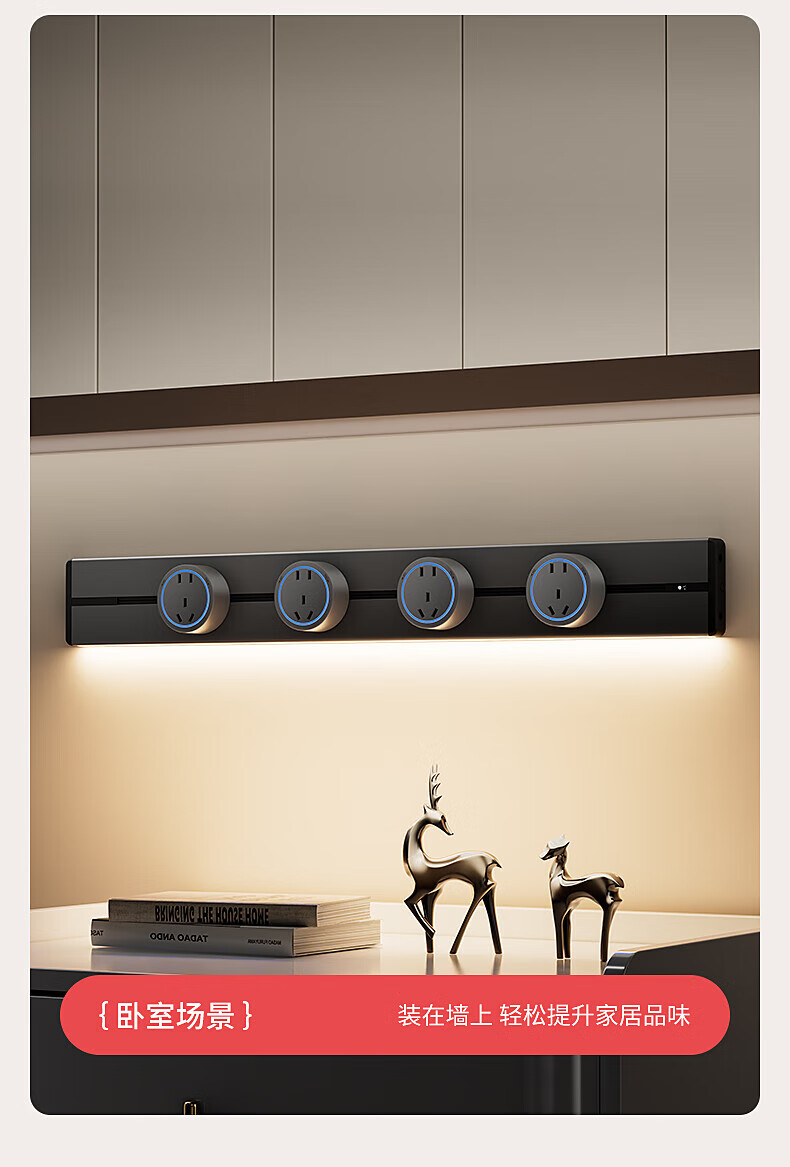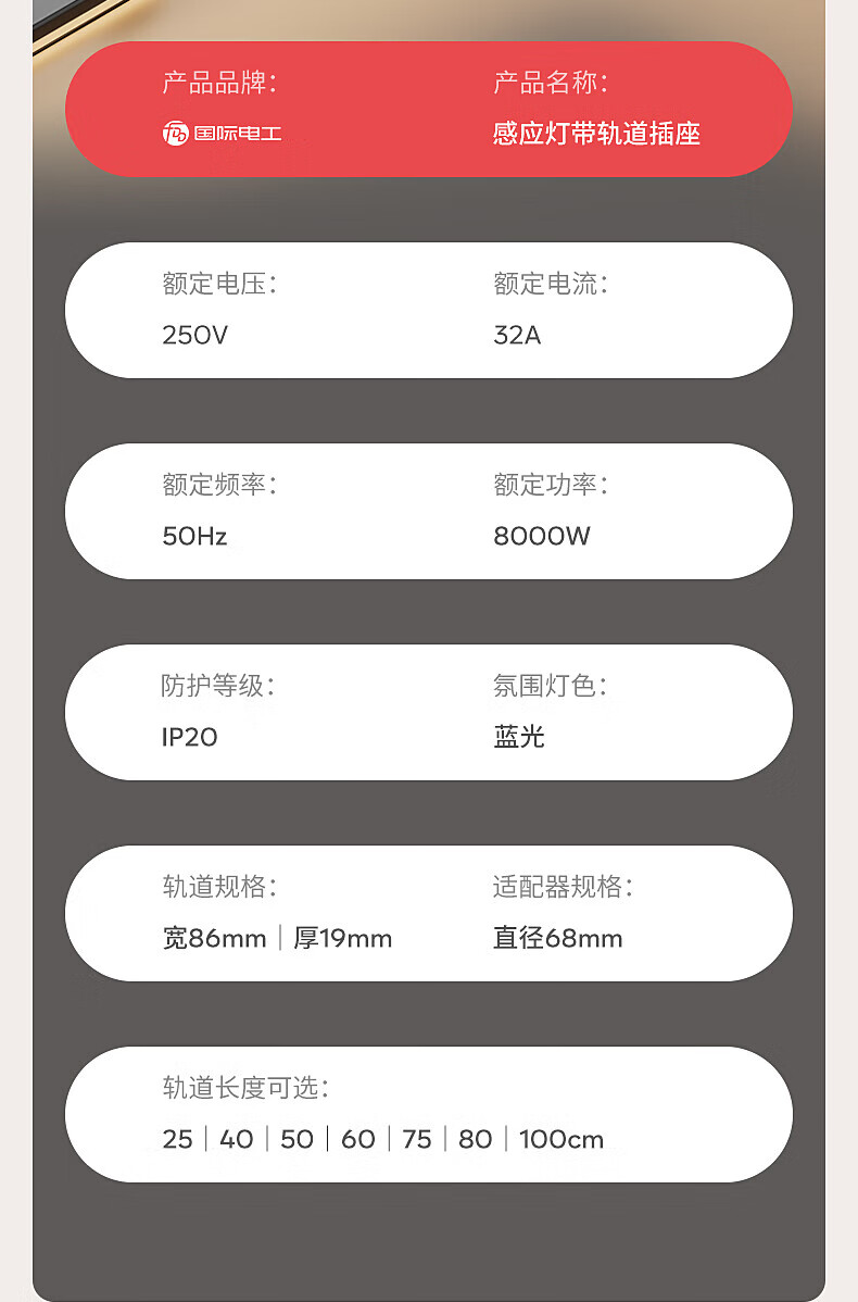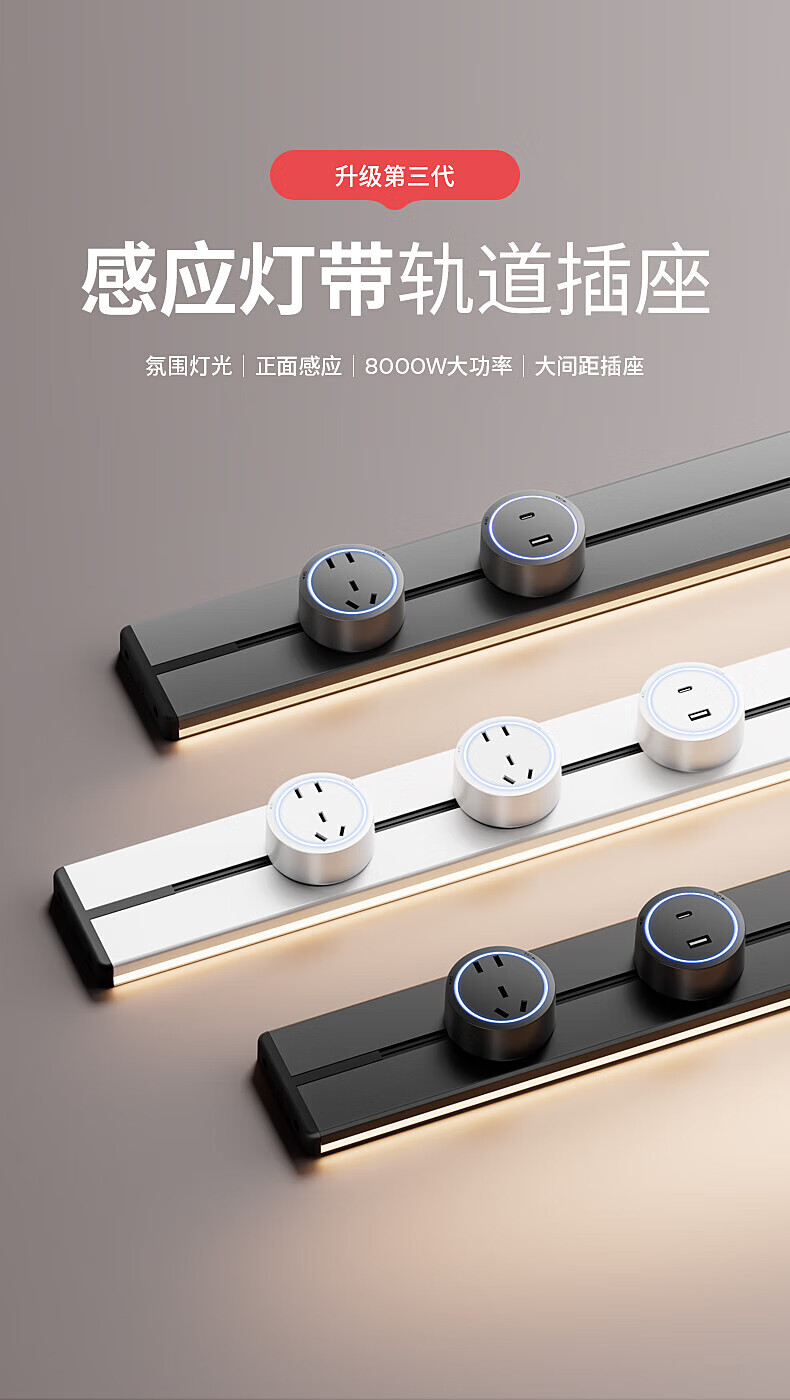 国际电工感应灯轨道插座可移动电力导轨厨房客厅餐边柜插排氛围灯滑轨明装 明装白色40厘米轨道+3个五孔怕【氛围灯】