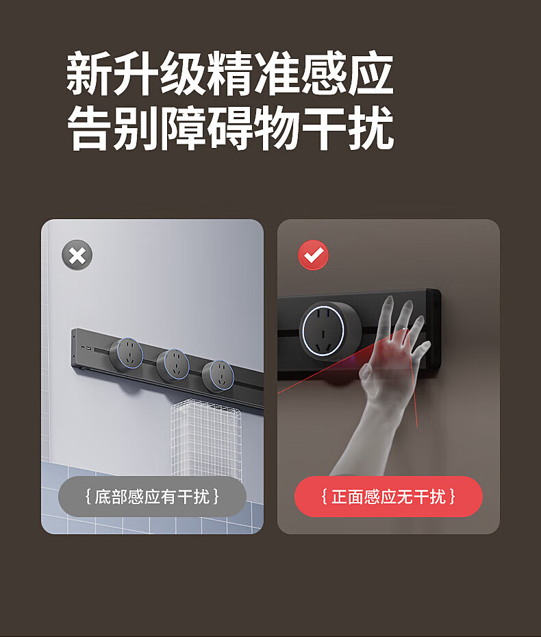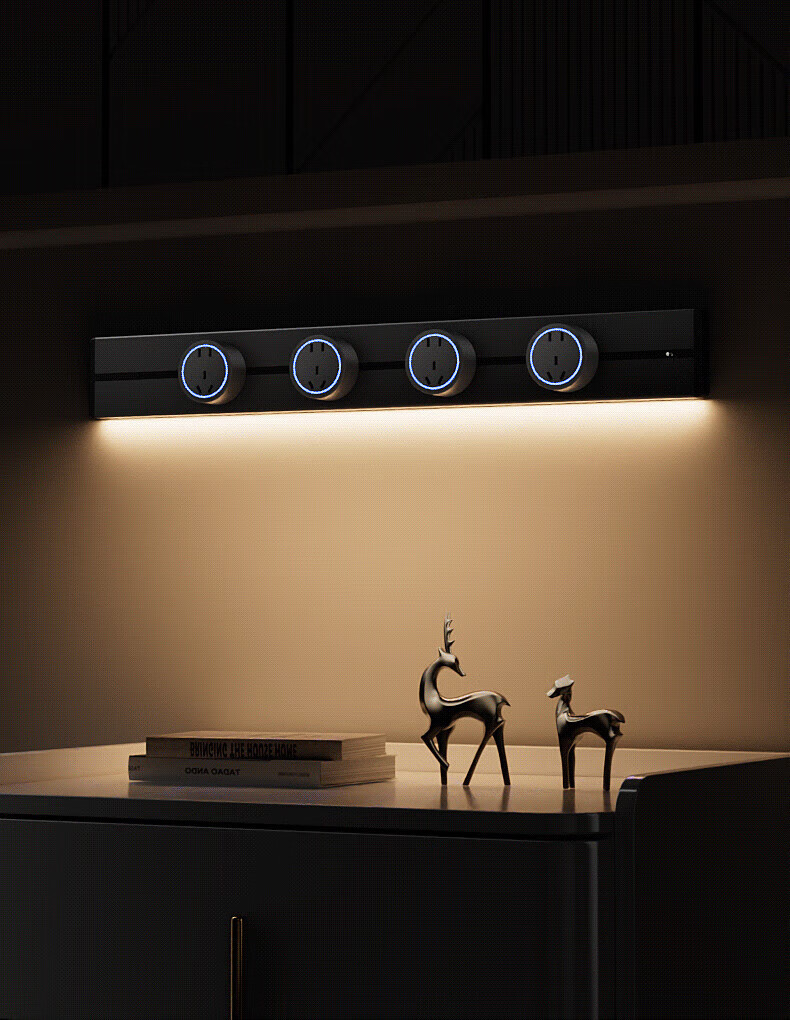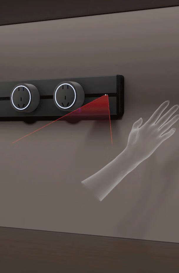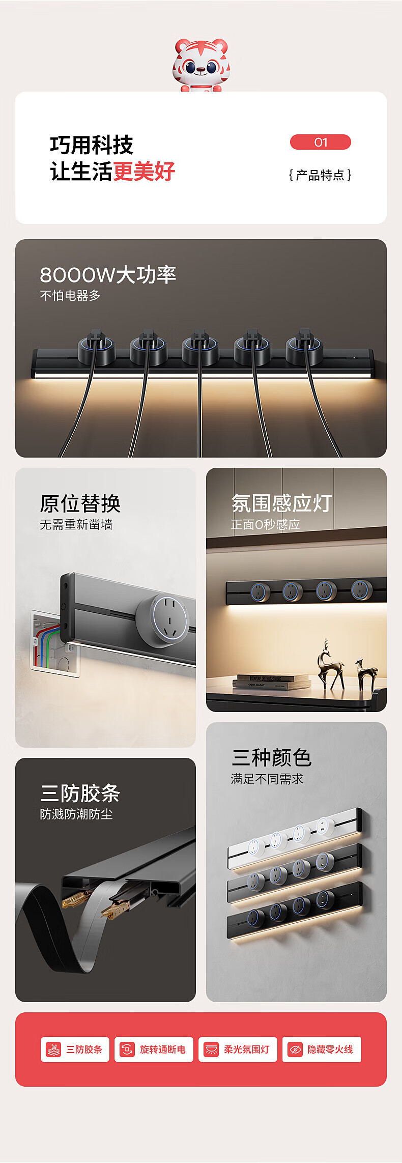 国际电工感应灯轨道插座可移动电力导轨厨房客厅餐边柜插排氛围灯滑轨明装 明装白色40厘米轨道+3个五孔怕【氛围灯】