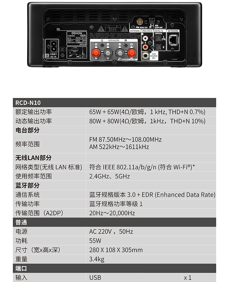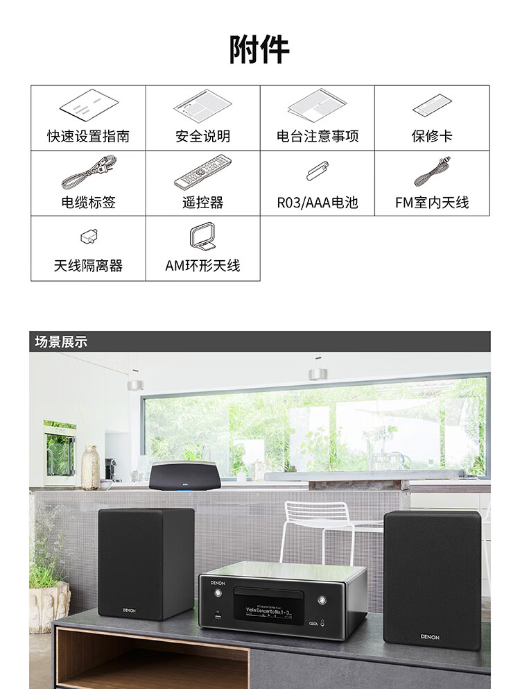 天龙(DENON)SC-N10 音响 音箱 高保真 Hi-Fi 发烧级 书架箱 音箱 黑色(一对)