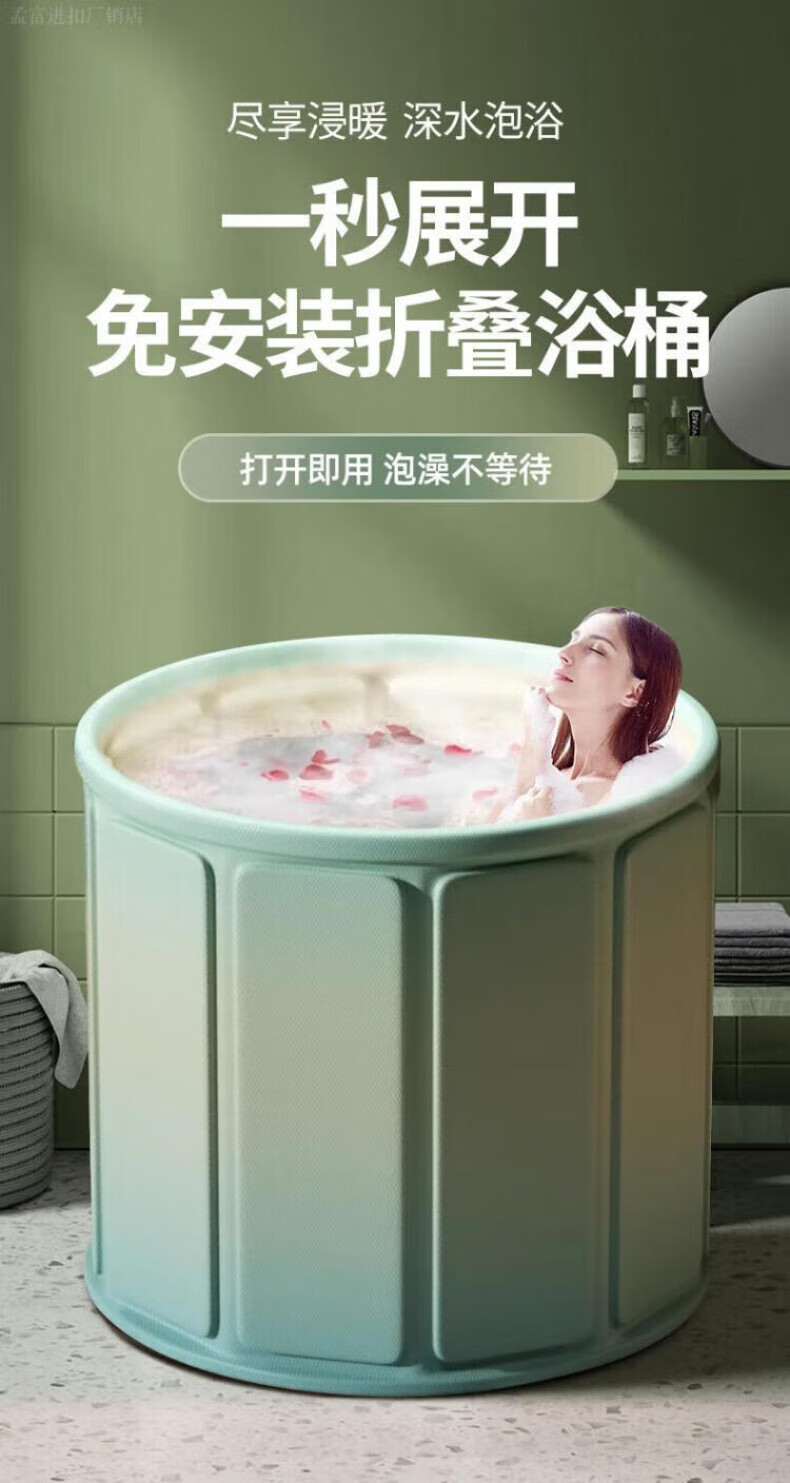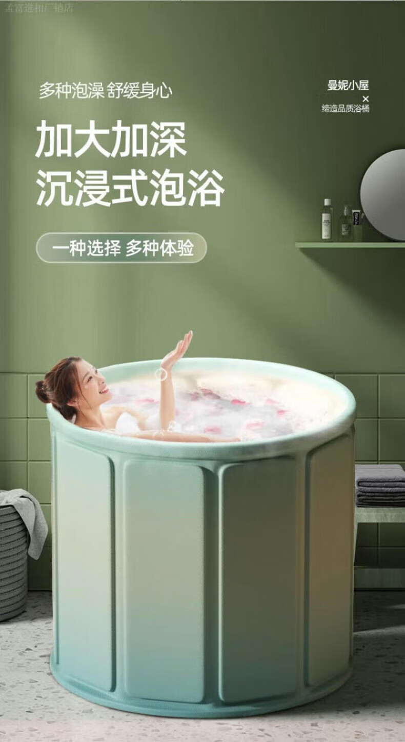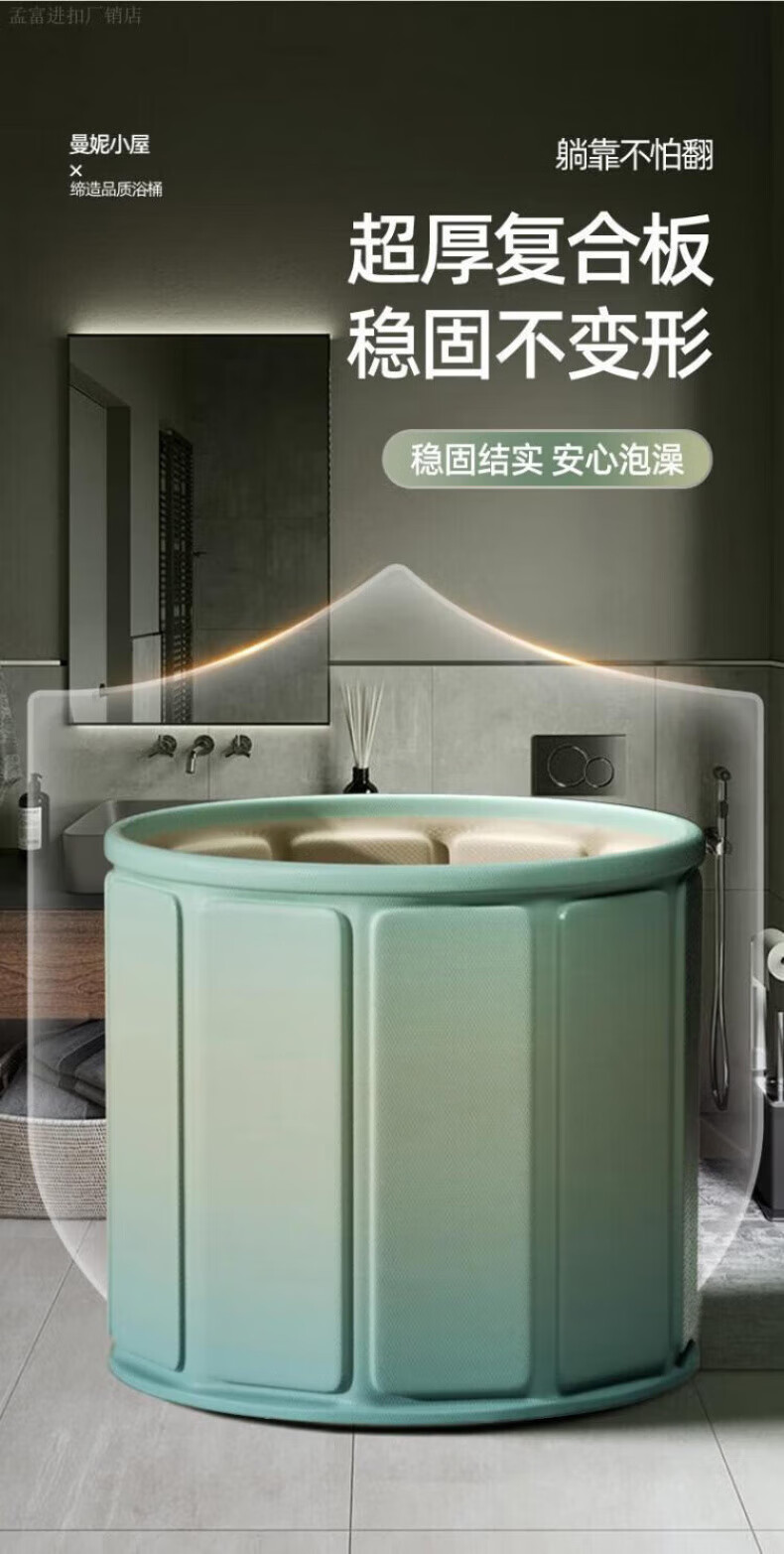 DEATKN德国高端泡澡桶大人折叠泡浴桶家用儿童洗澡桶冬天成人浴缸全 墨烟绿-加棉加厚[送坐垫+排水管]