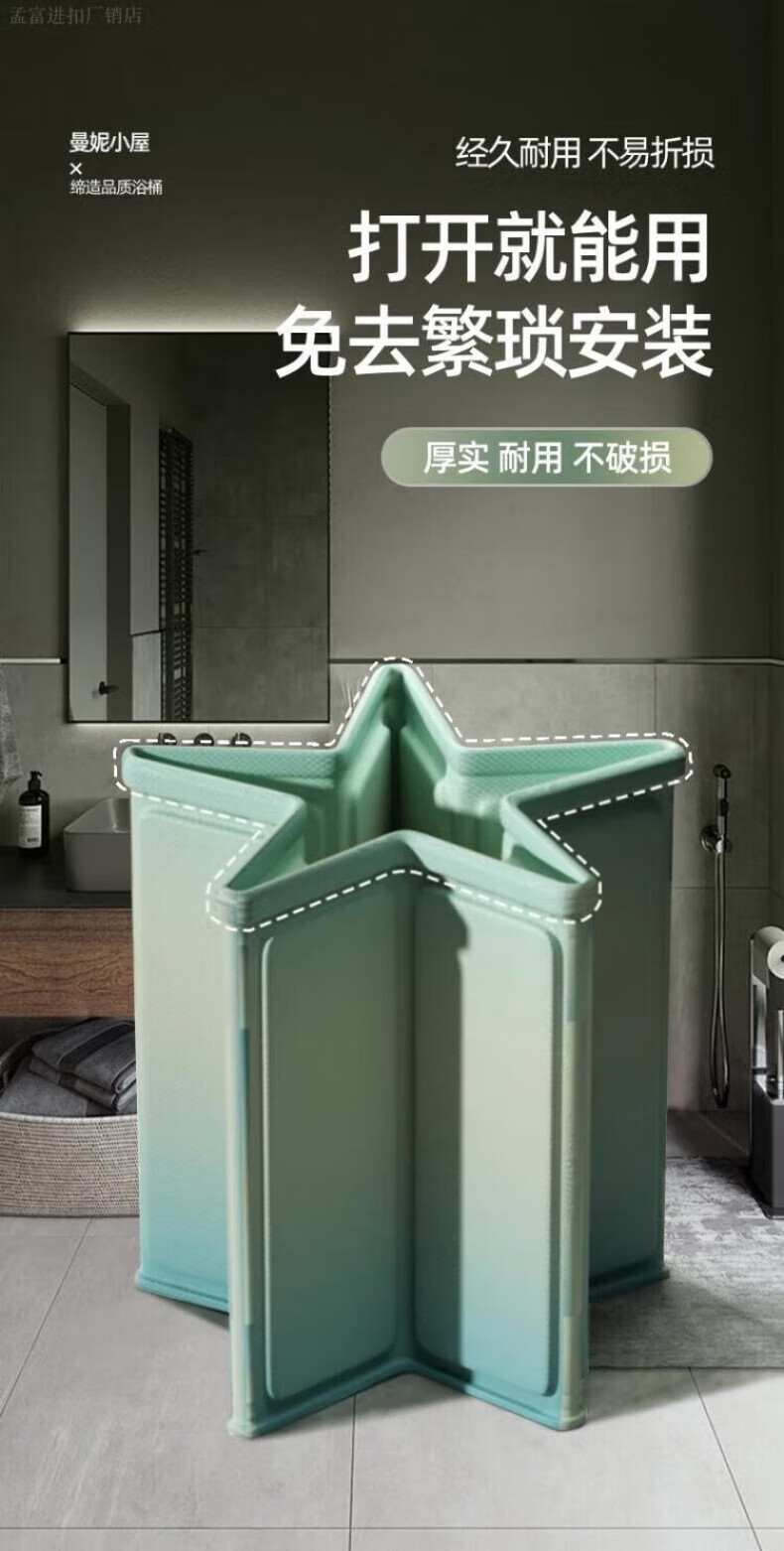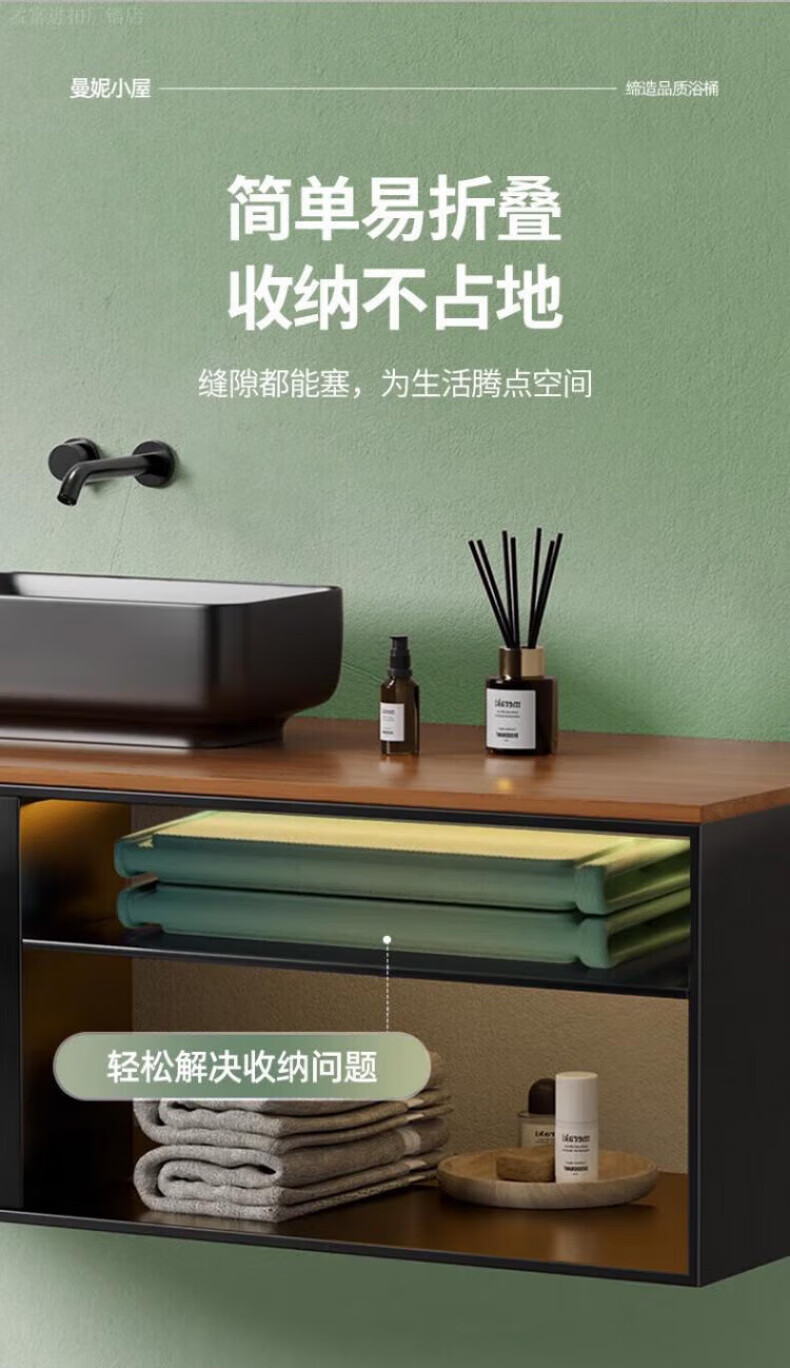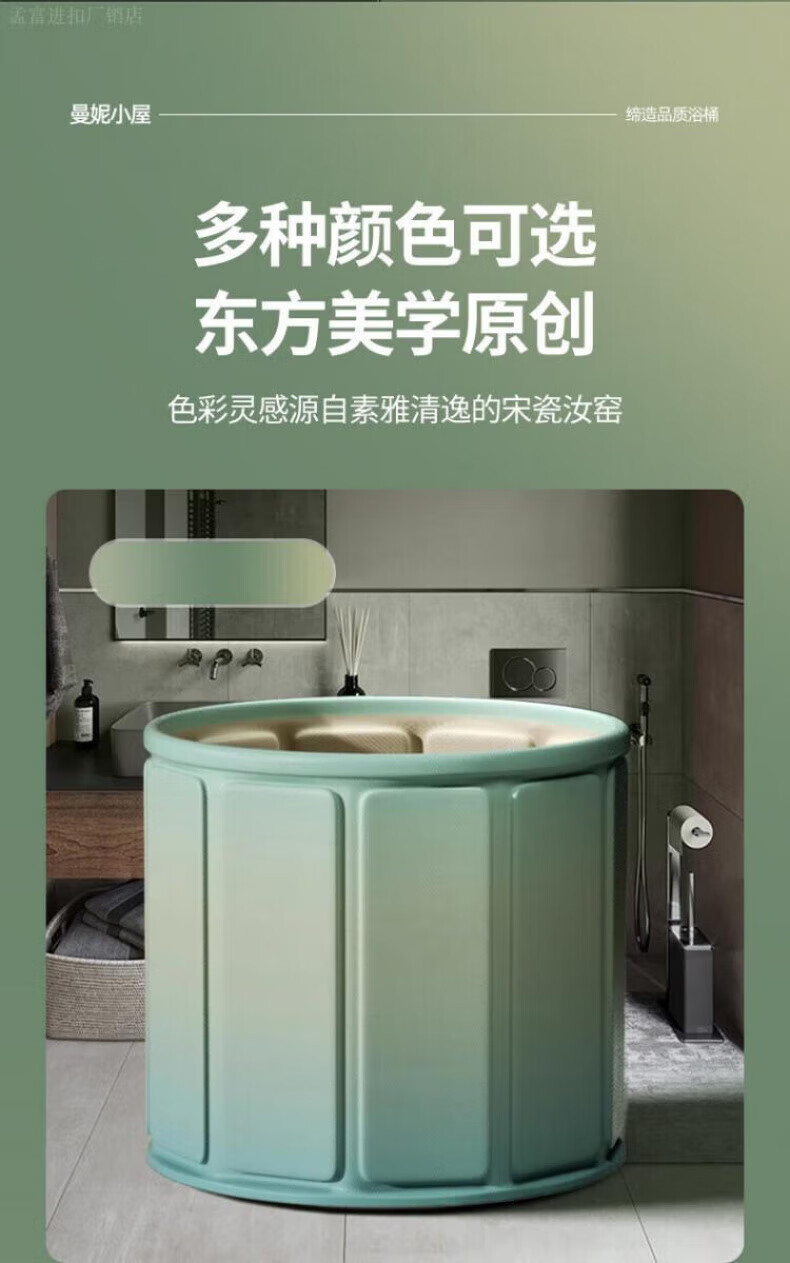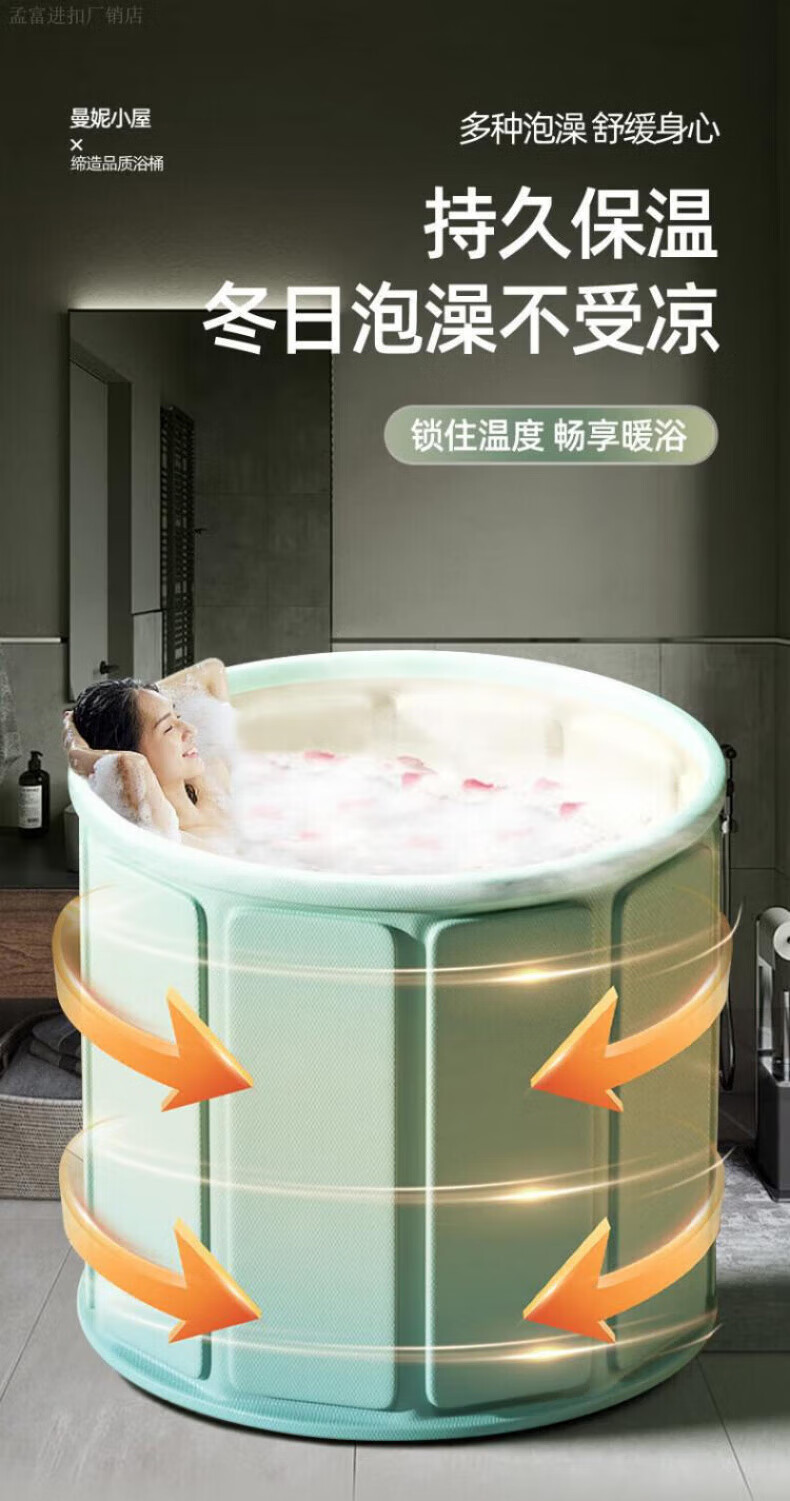 DEATKN德国高端泡澡桶大人折叠泡浴桶家用儿童洗澡桶冬天成人浴缸全 墨烟绿-加棉加厚[送坐垫+排水管]