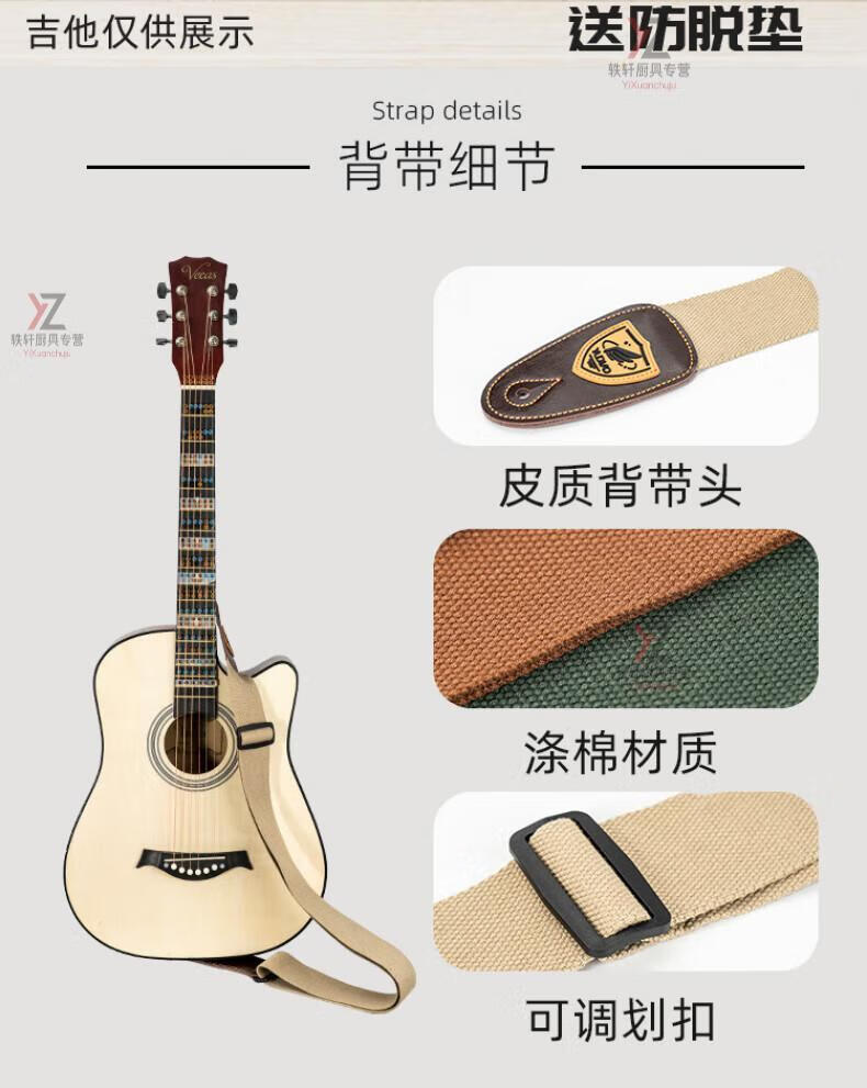 AILUKI日本吉他背带民谣琴带涤棉吉他带子肩带斜挎木电吉他男生女生通用 棕色(皮革款)