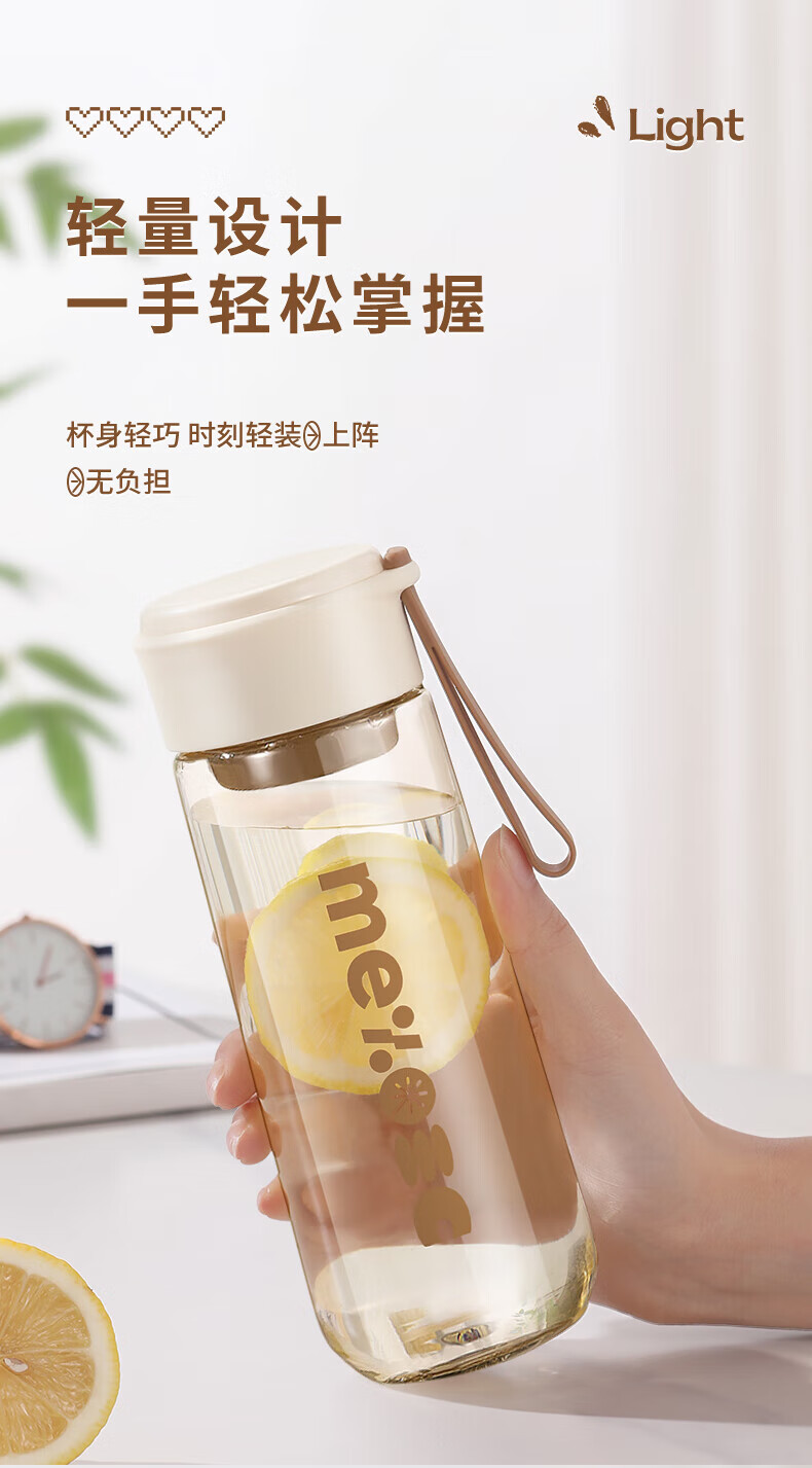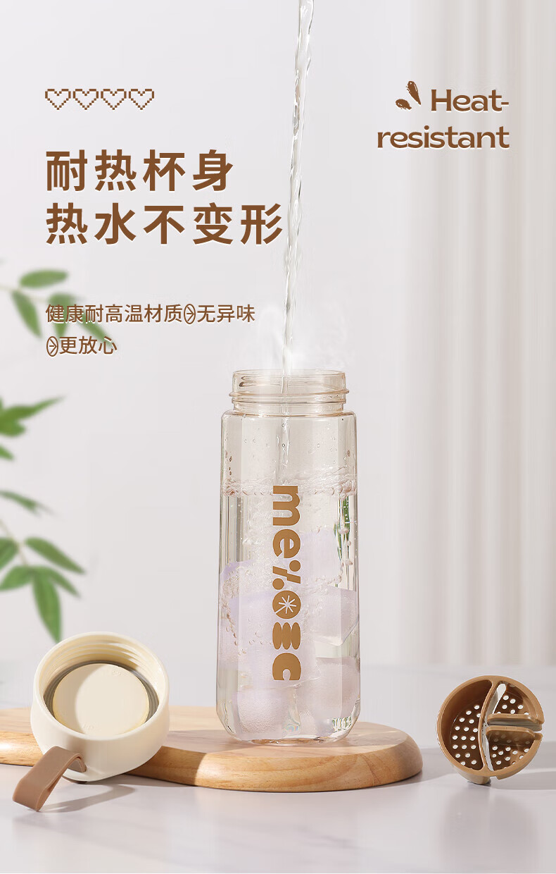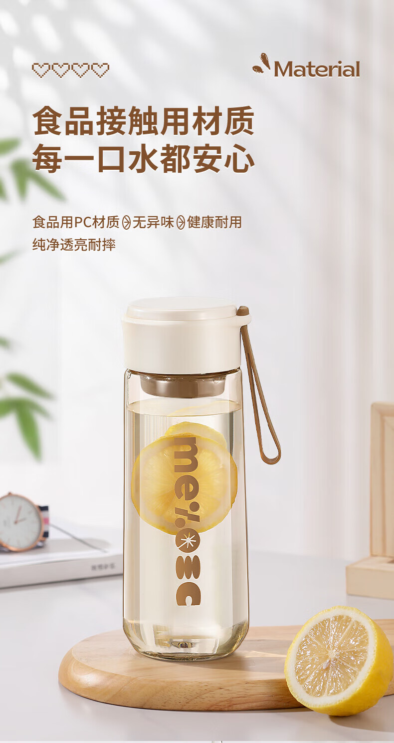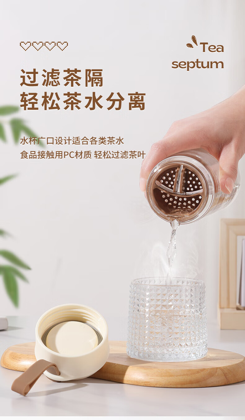 AILUKI日本透明水杯男可泡茶2025夏季防摔耐高温塑料杯子上班族便携茶杯 绅士黑600ml【304不锈钢茶滤】