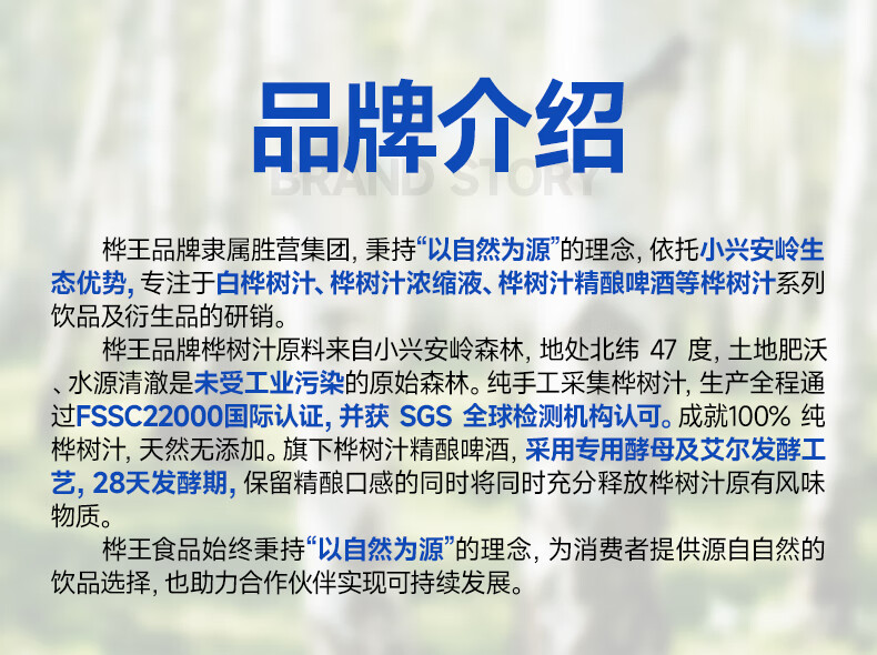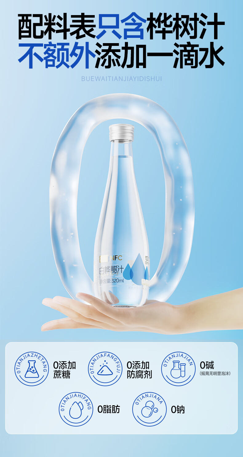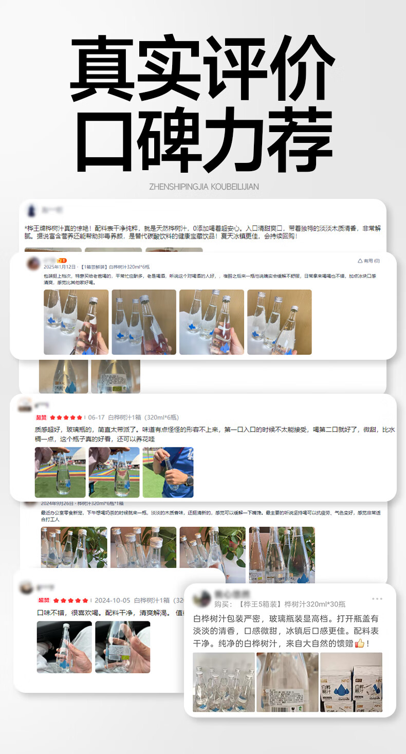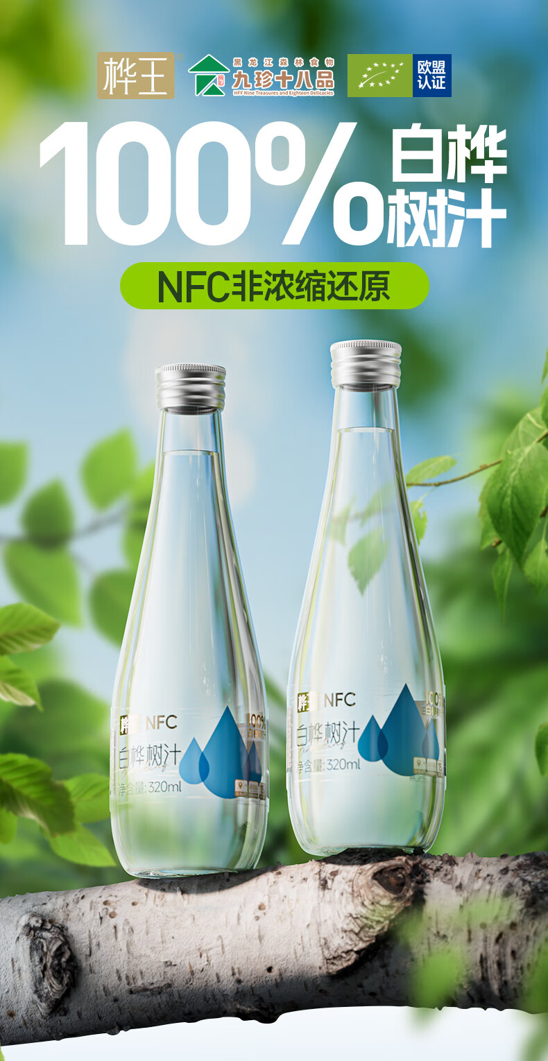桦王100%纯天然NFC白桦树汁原液天然低脂果蔬汁饮料320ml*6瓶/箱