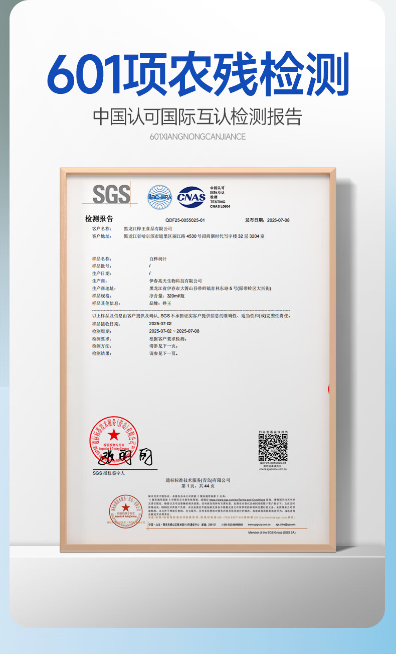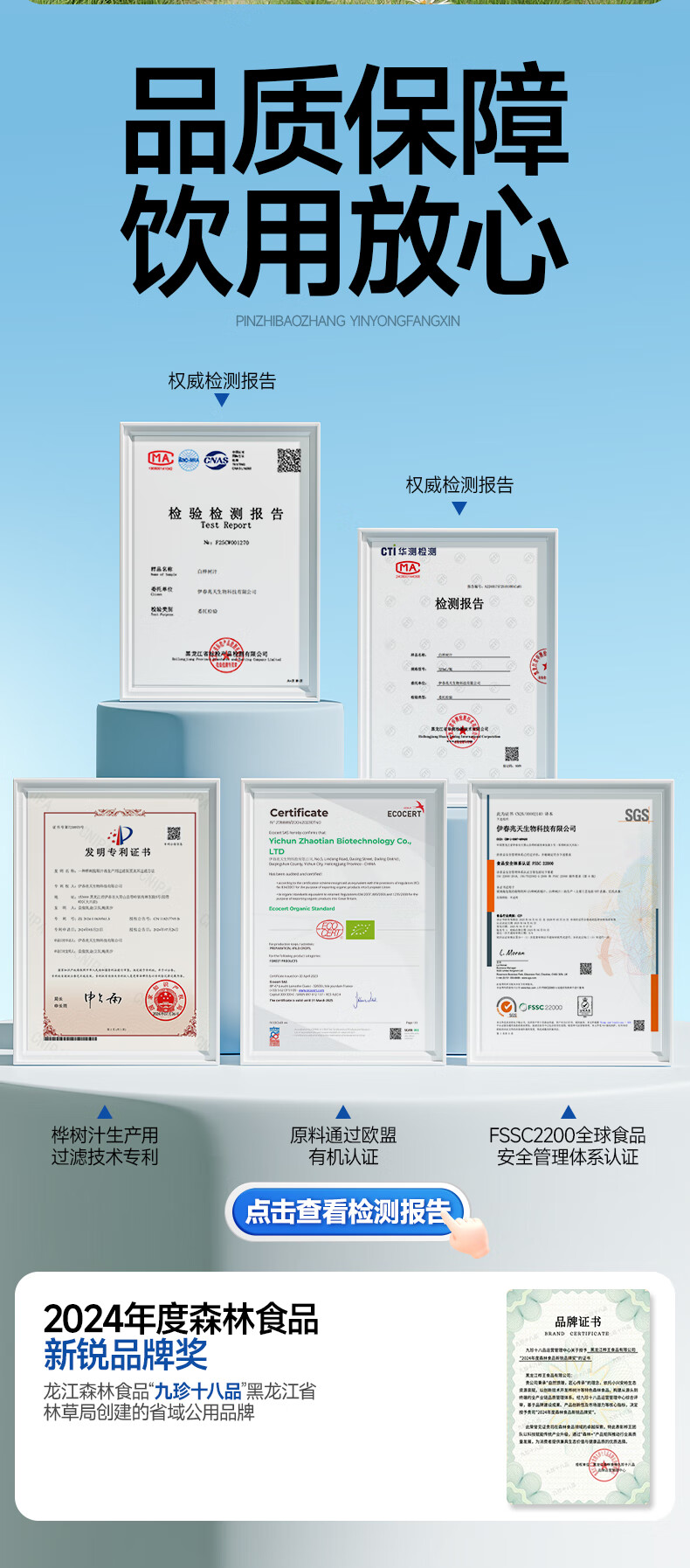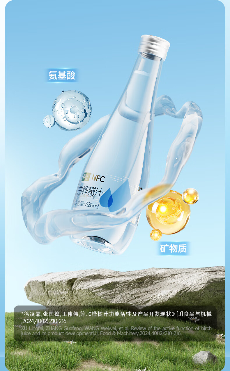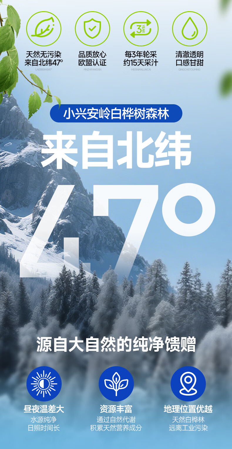 桦王100%纯天然NFC白桦树汁原液天然低脂果蔬汁饮料320ml*6瓶/箱