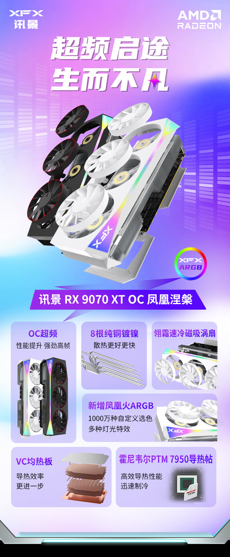 讯景(XFX)AMD RADEON RX 9070 XT OC 凤凰涅槃 16GB 白色 全新电竞游戏设计智能学习台式电脑独立显卡