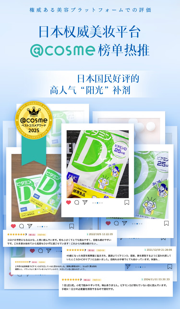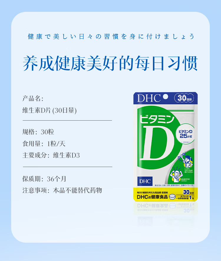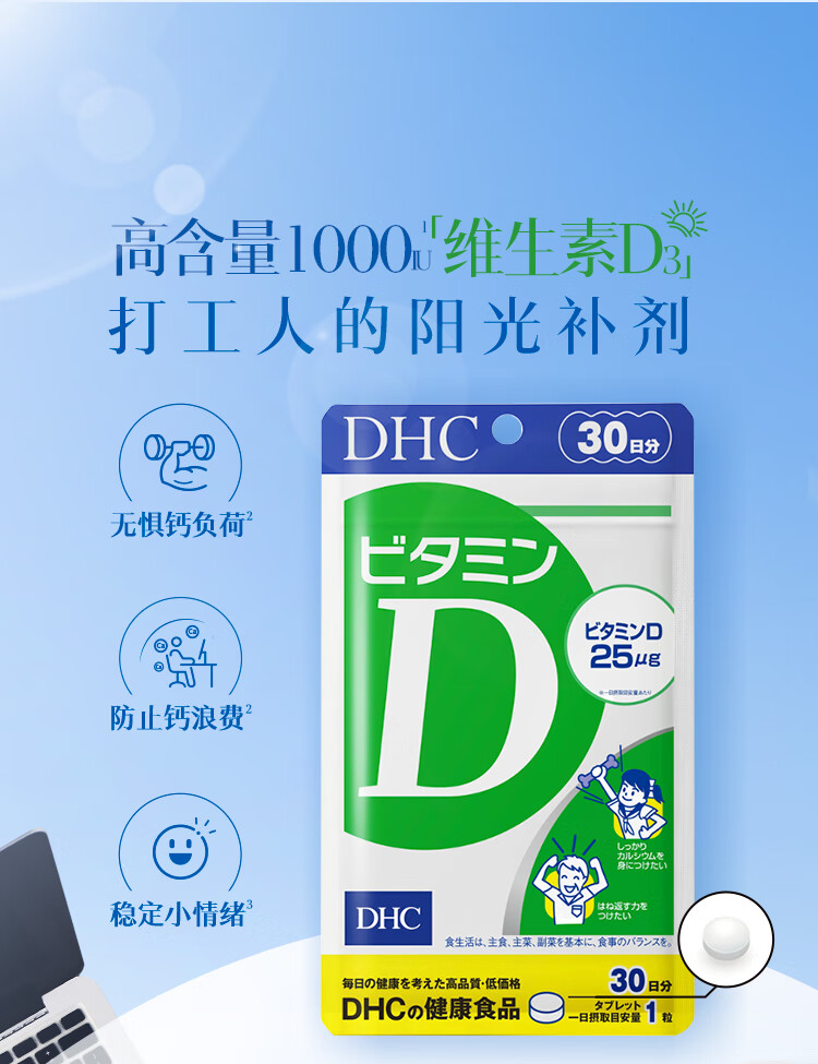 蝶翠诗(DHC)维生素D片30粒高含量VD成人男女士儿童青少年孕妇促补钙吸收含D3