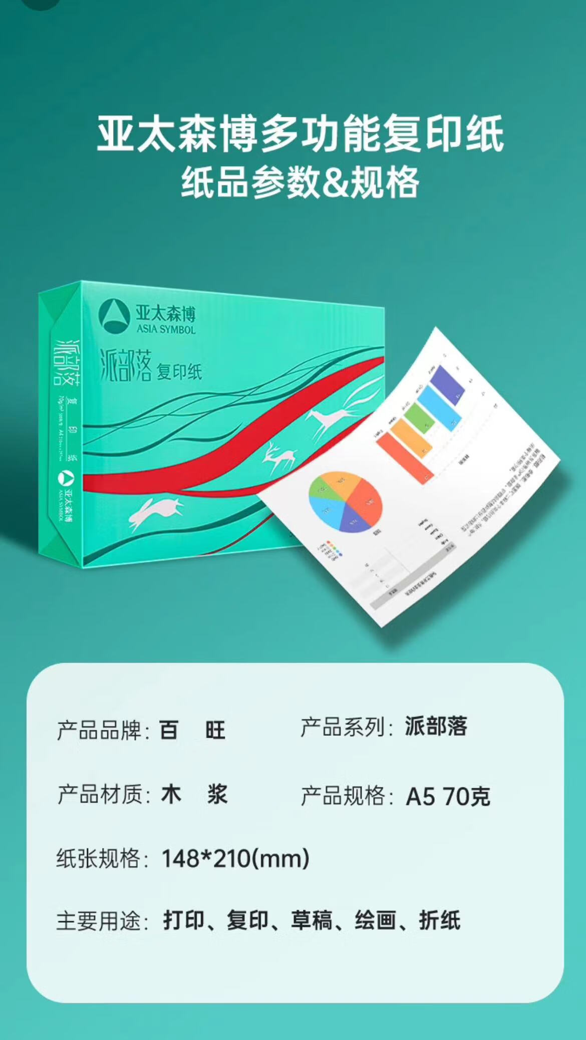 亚太森博 a5打印纸 派部落/粉可乐 a5复印纸 高性价比a5纸 白纸财务报销单凭证电子发票打印草稿纸包邮 【随机款】亚太70gA5-5000张
