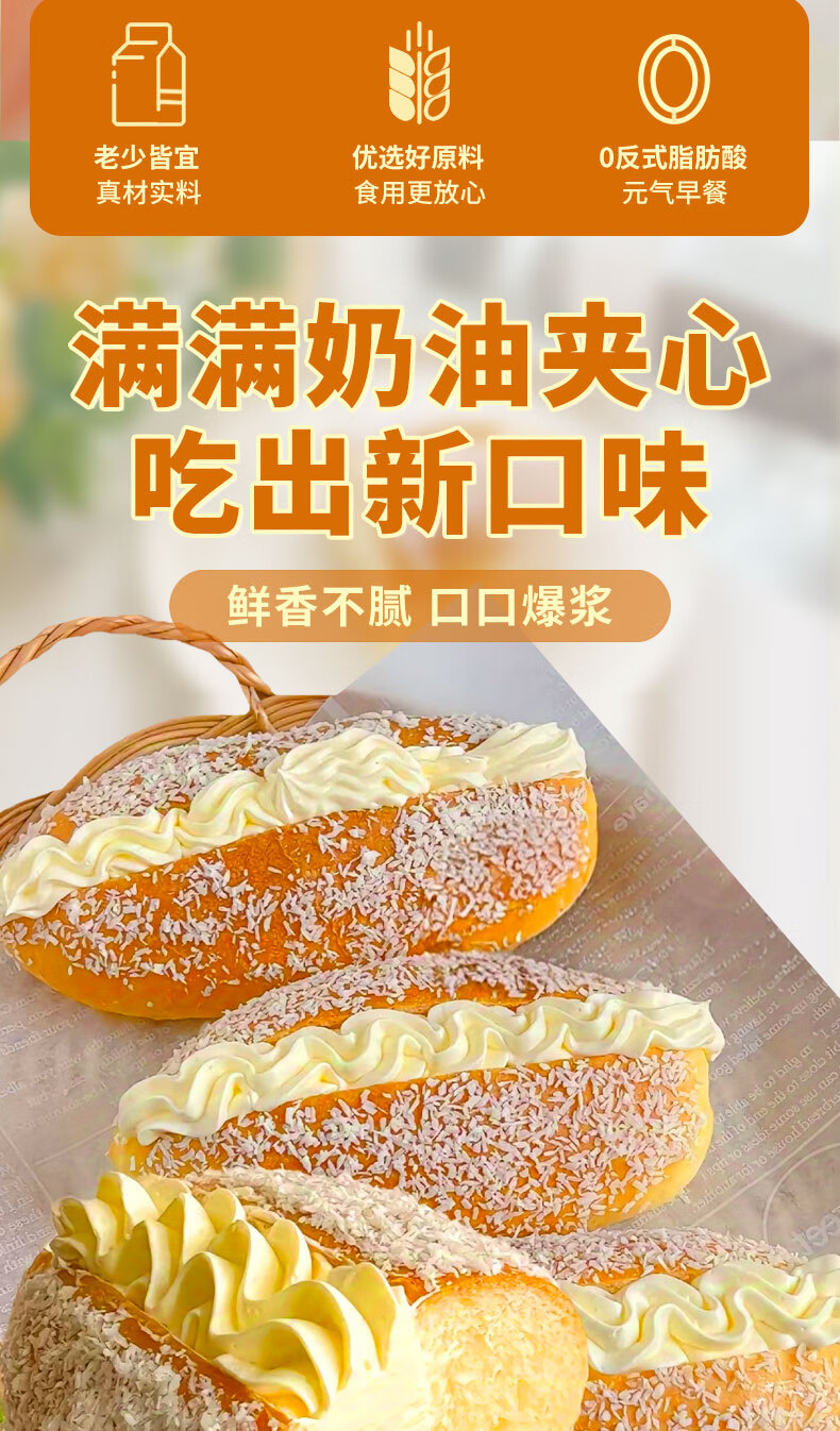 不多言老式椰蓉奶油面包早餐整箱夹心学生代餐点心休闲健康小吃货零食品 500g 【1箱/10包】椰蓉奶油面包