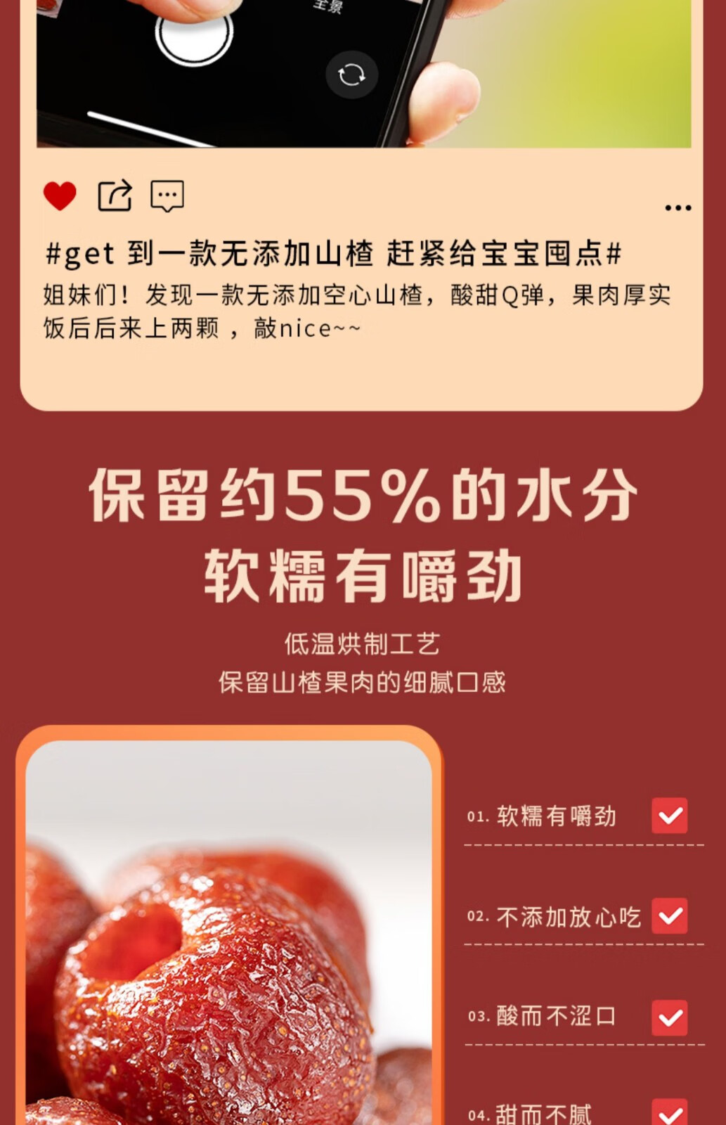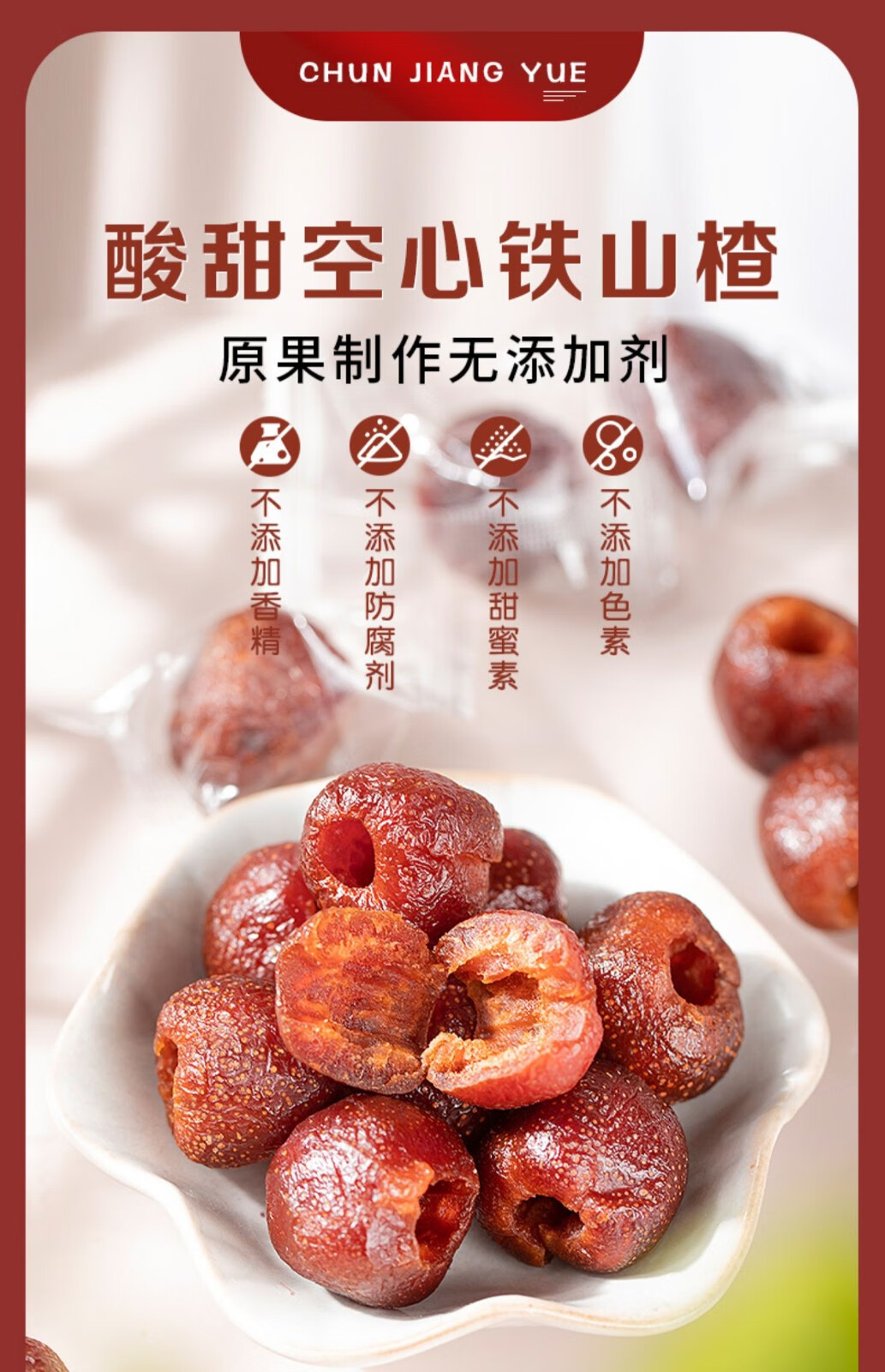 春江月空心山楂干独立装无添加剂山楂制品蜜饯果干无核山楂球孕妇零食 0蔗糖款【250g*1袋】尝鲜装