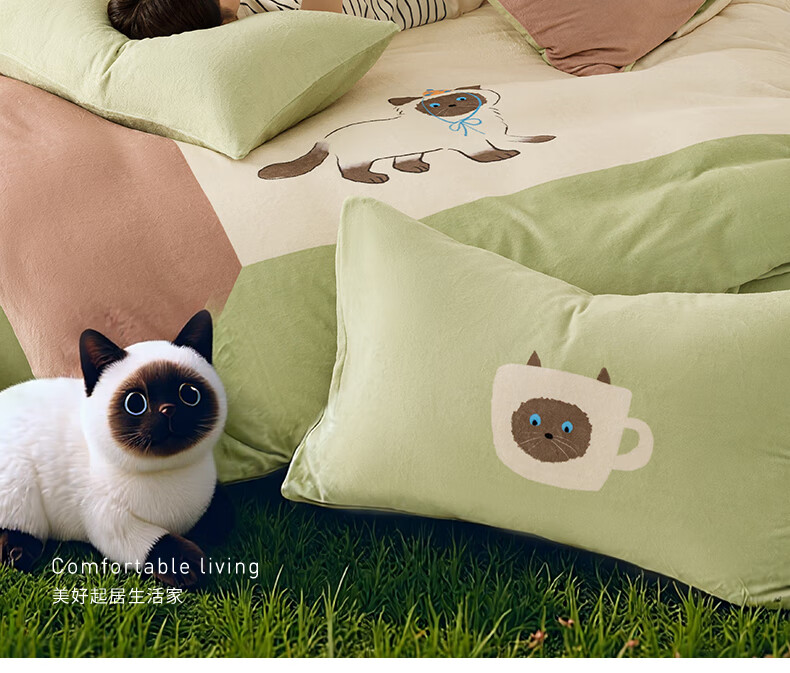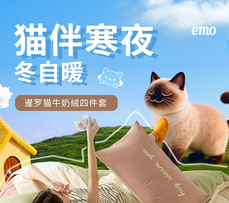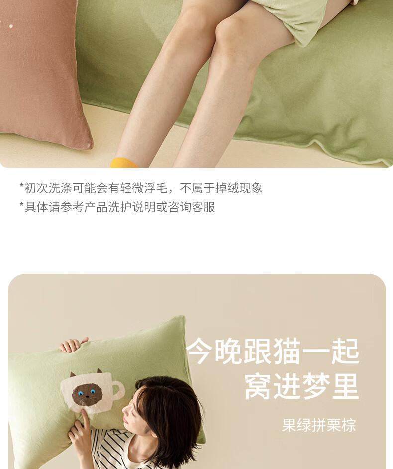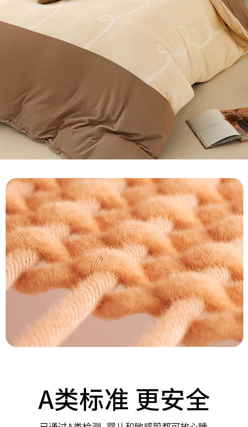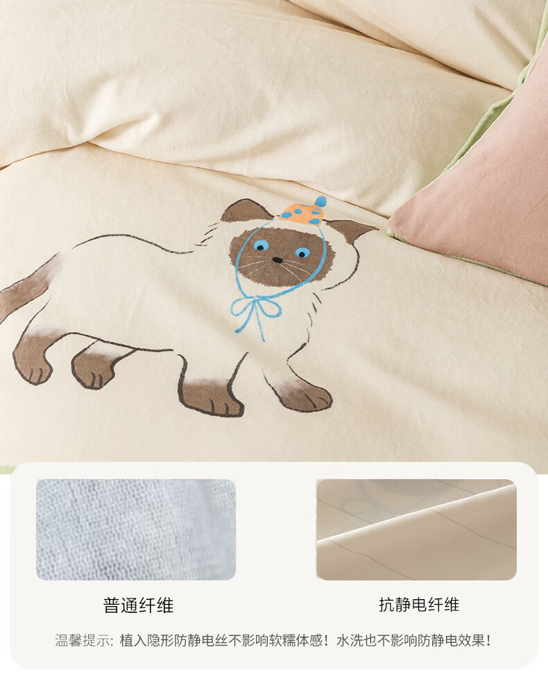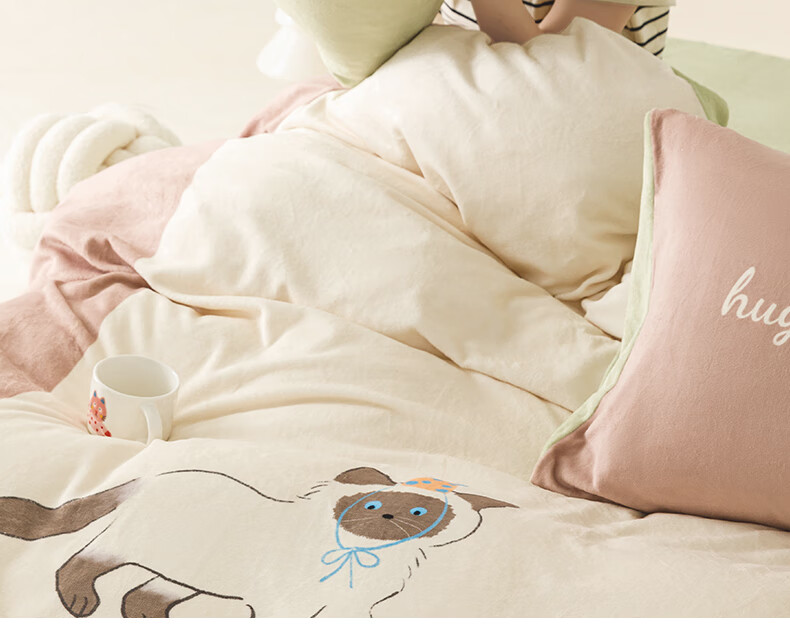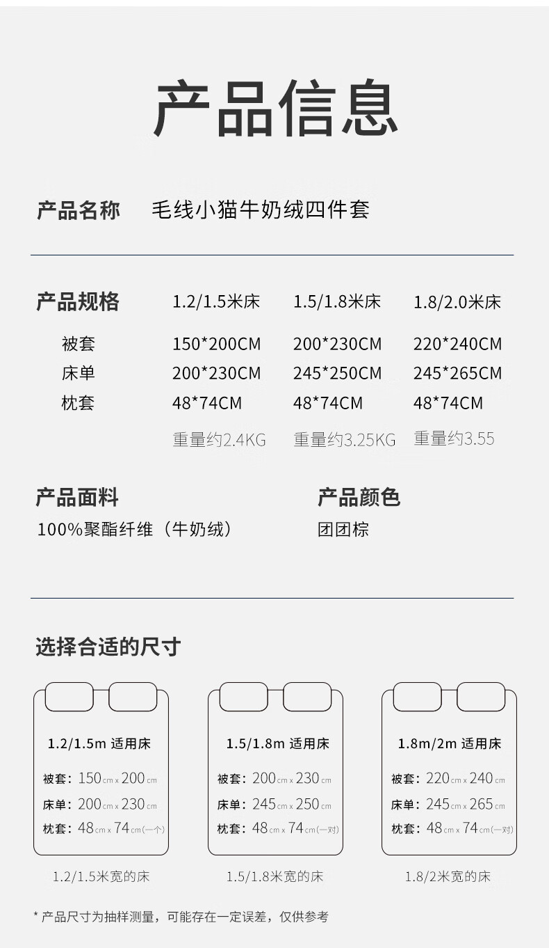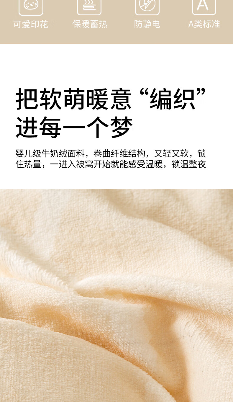 一默四件套冬季被套床单枕套床上用品加厚保暖毛线小猫牛奶绒四件套 毛线小猫 【团团棕】 床单款 (被套200*230cm)