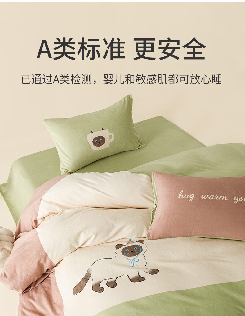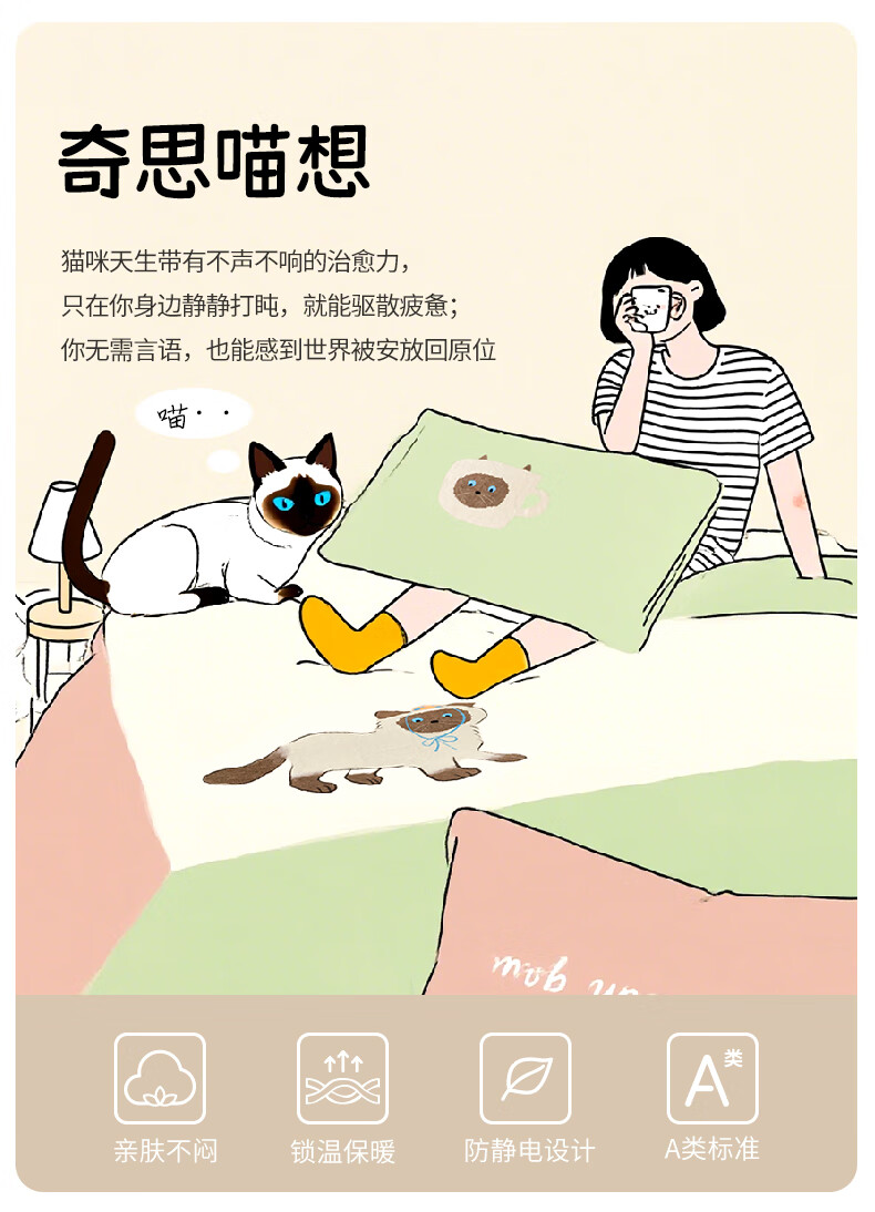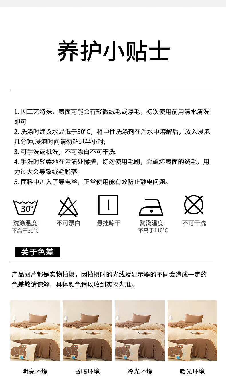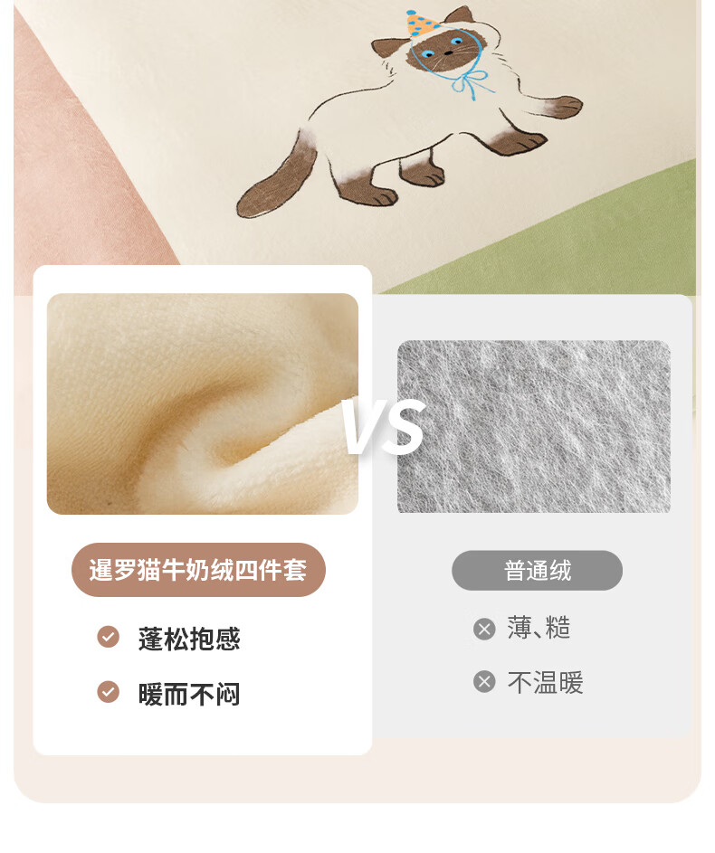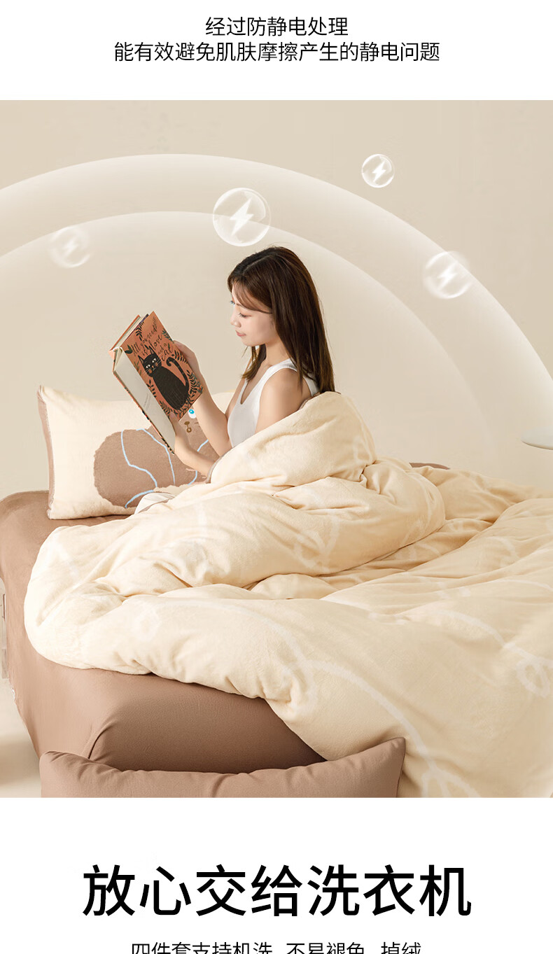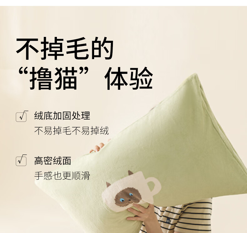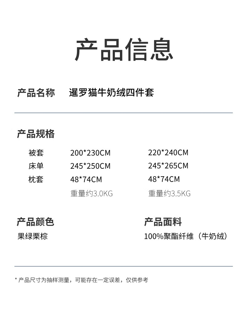 一默四件套冬季被套床单枕套床上用品加厚保暖毛线小猫牛奶绒四件套 毛线小猫 【团团棕】 床单款 (被套200*230cm)