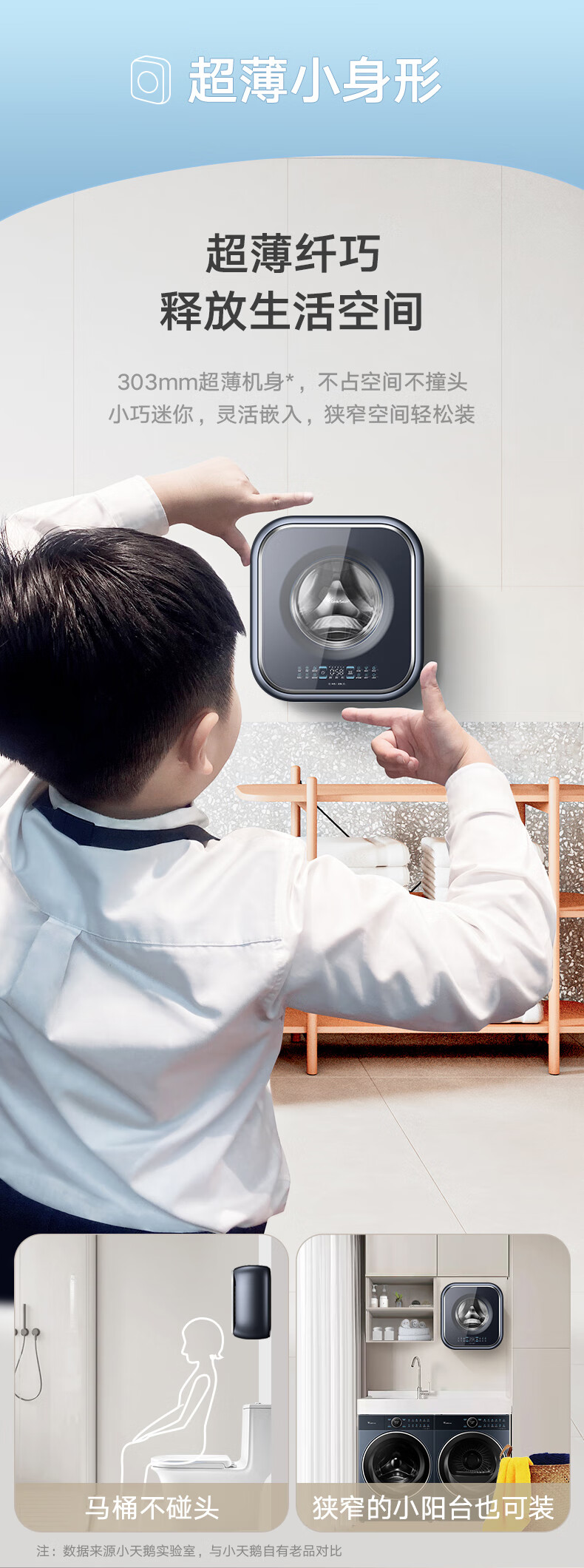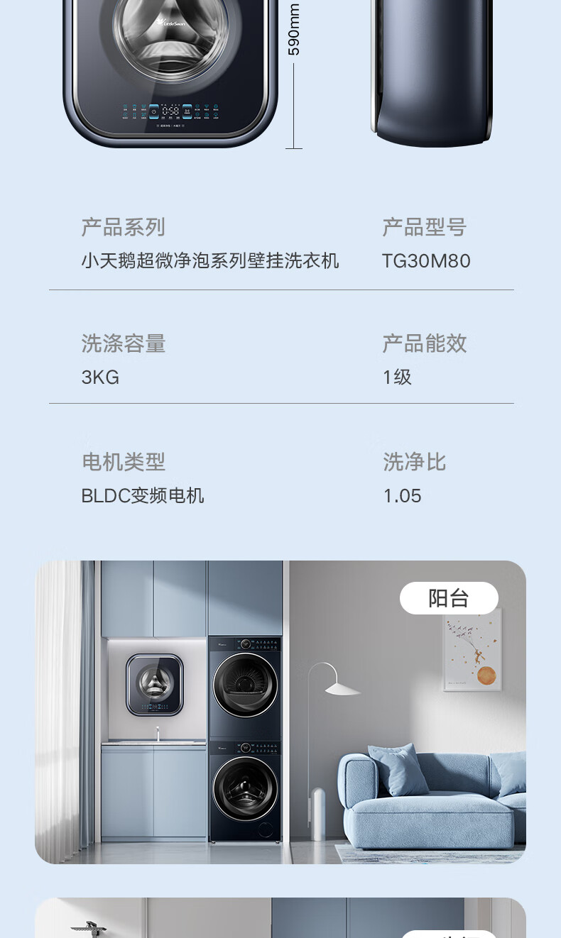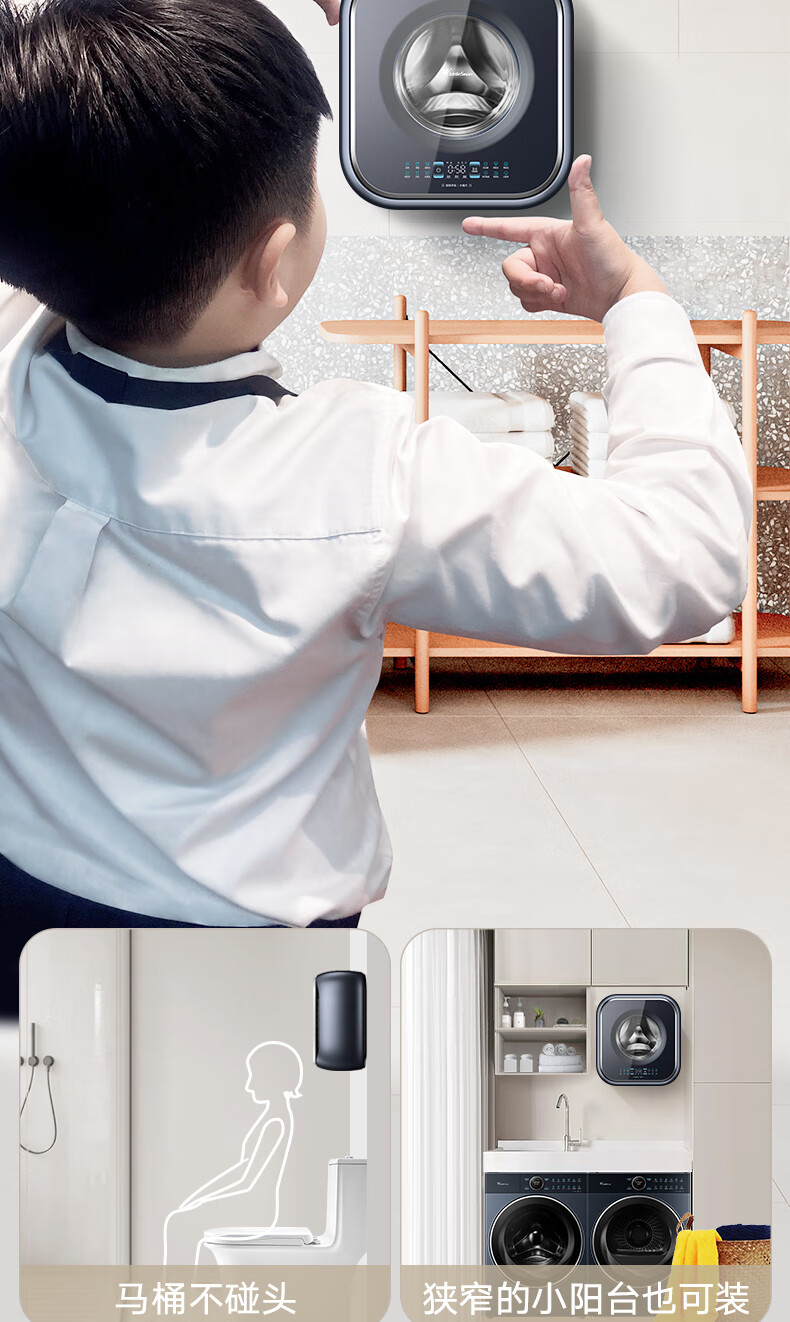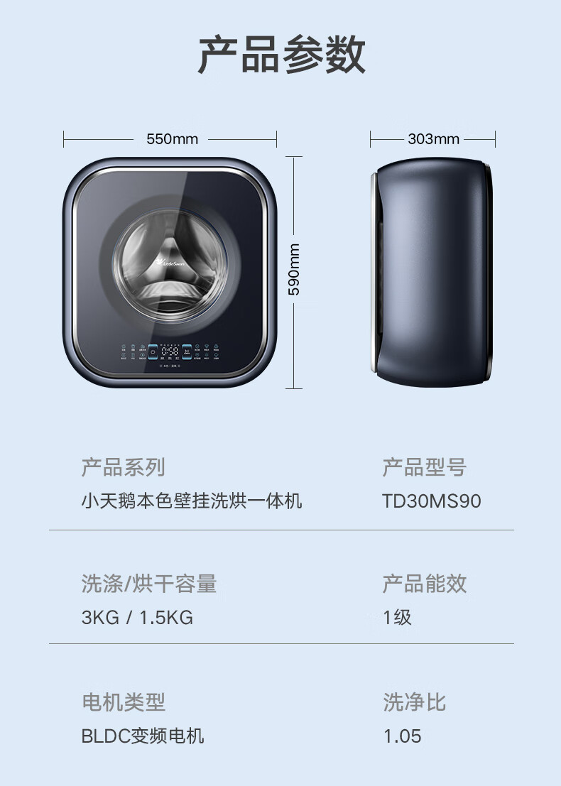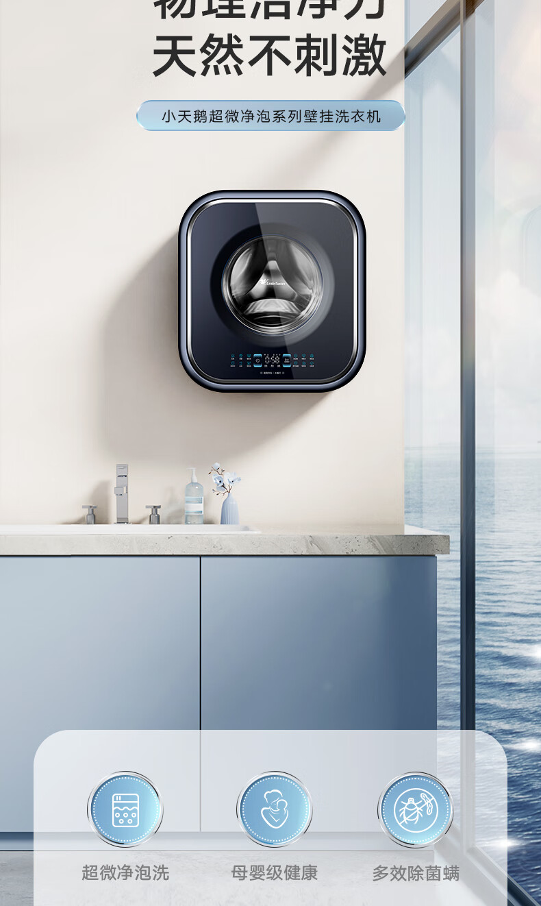 小天鹅(LittleSwan)壁挂洗衣机 迷你母婴儿童内衣裤挂壁式小型洗衣机3kg 超薄mini本色蓝氧去渍洗 一级能效变频节能 洗烘一体机TD30MS90 本色蓝氧去渍 低温柔烘