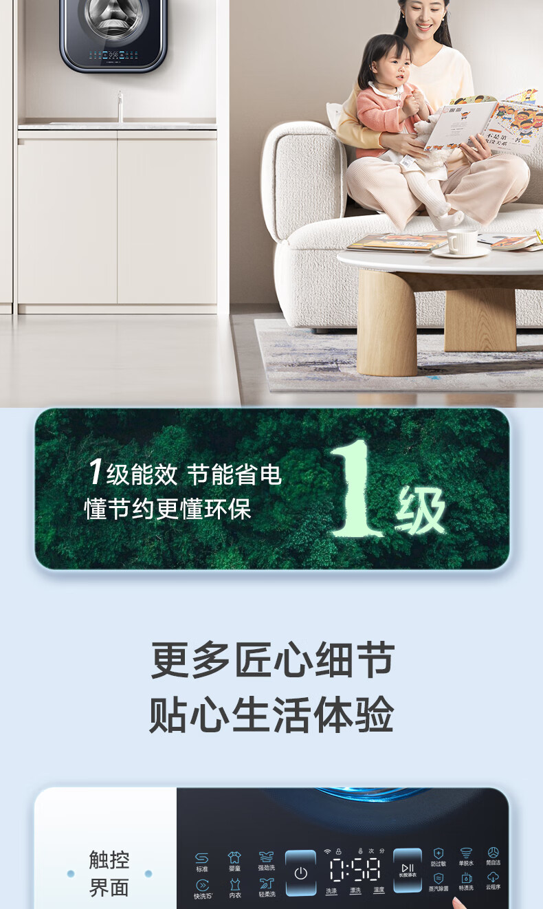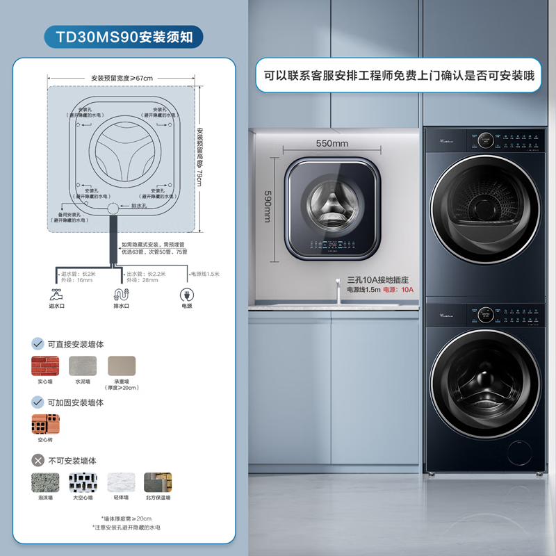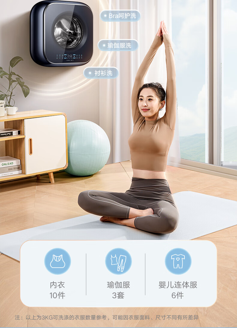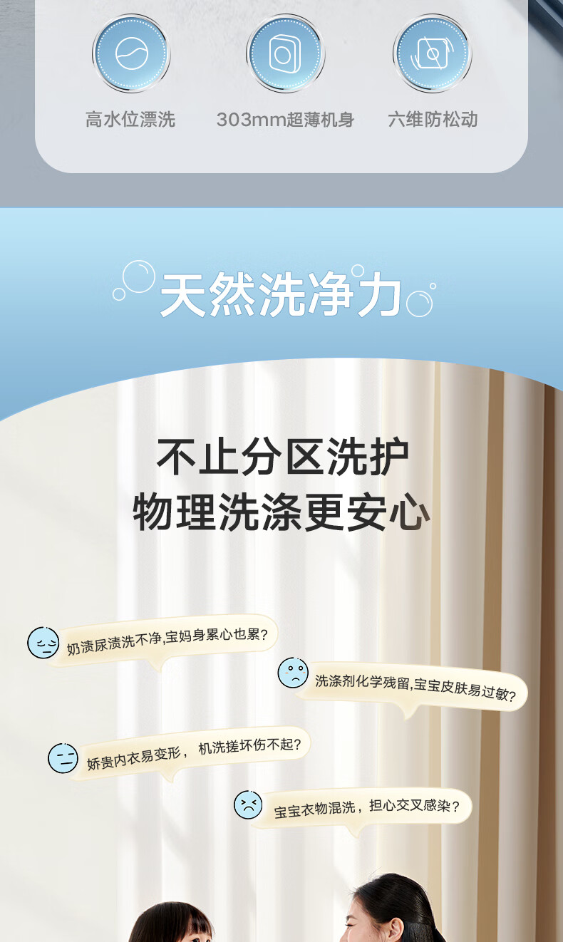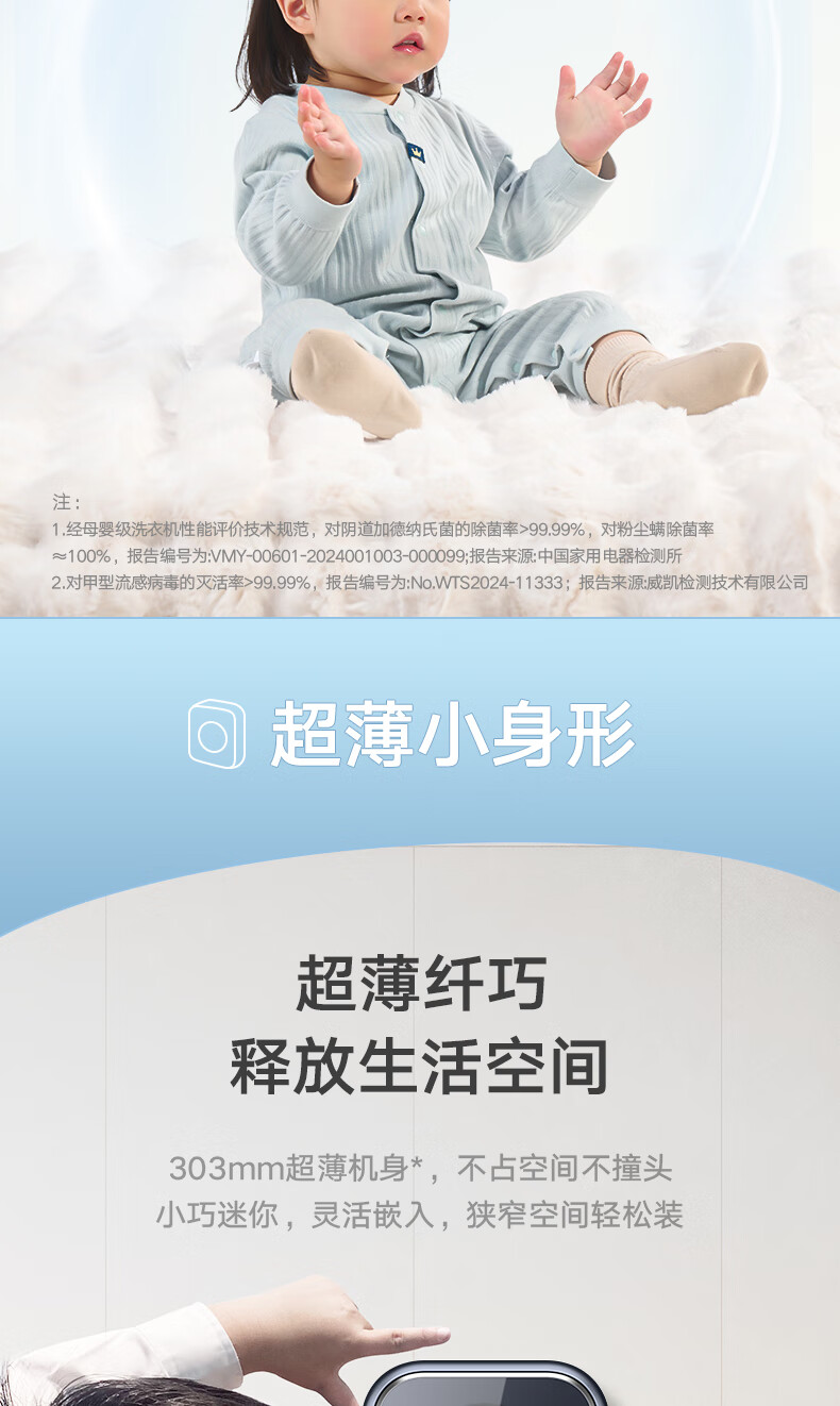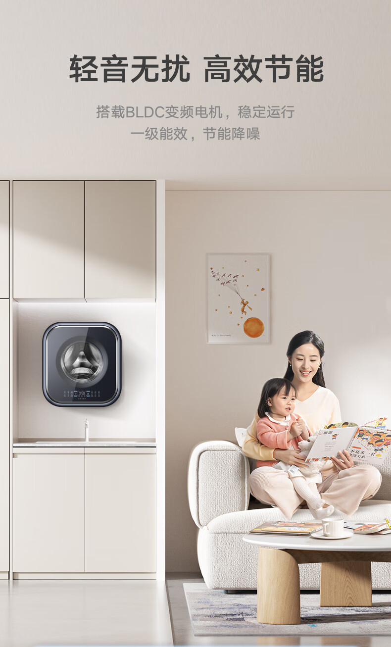小天鹅(LittleSwan)壁挂洗衣机 迷你母婴儿童内衣裤挂壁式小型洗衣机3kg 超薄mini本色蓝氧去渍洗 一级能效变频节能 洗烘一体机TD30MS90 本色蓝氧去渍 低温柔烘