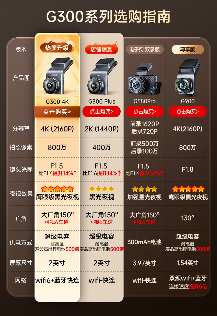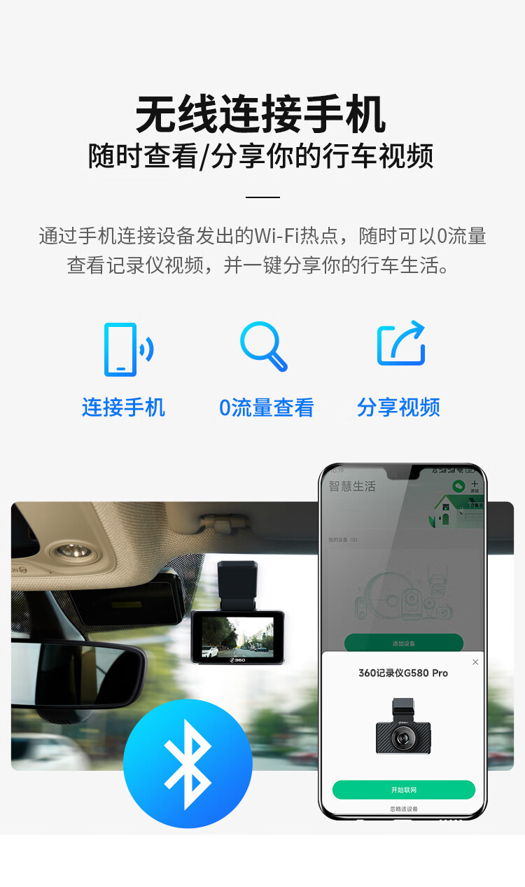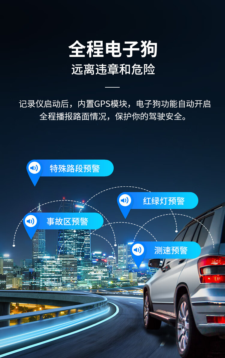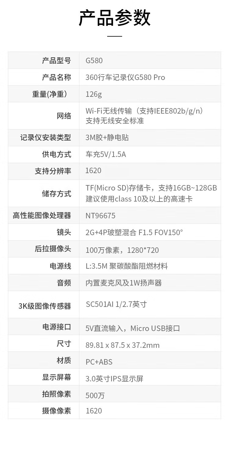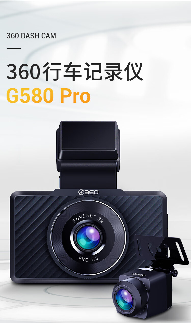 360行车记录仪 G580pro 3K高清拍摄 取证前后双录 星光夜视 电子狗