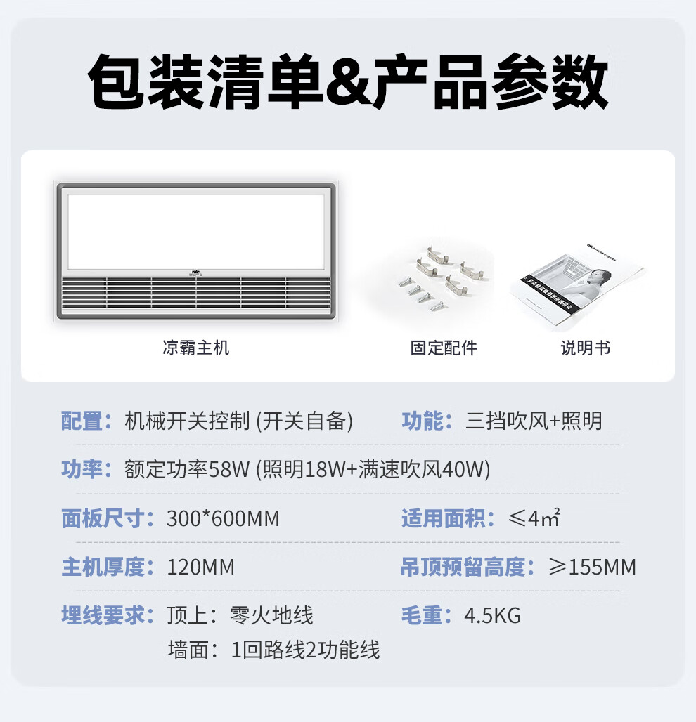 雷士(NVC)政府补贴冷霸厨房专用凉霸二合一照明吹风一体卫生间冷风机Y031