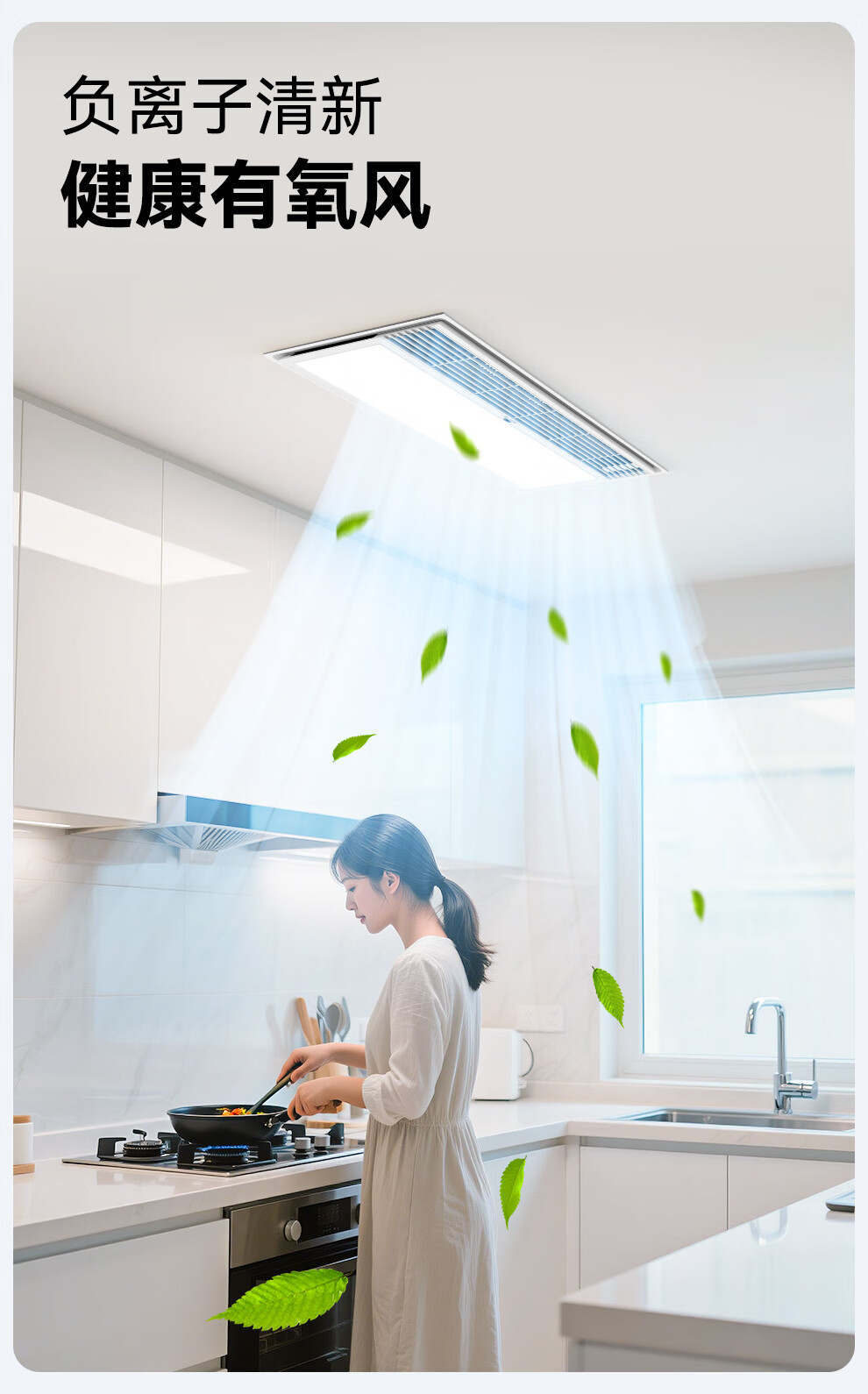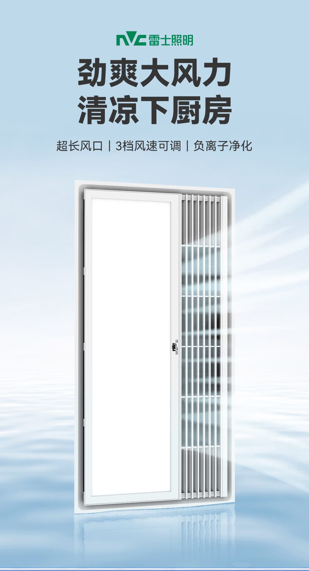 雷士(NVC)凉霸厨房冷风机集成吊顶换气照明一体无线遥控摆叶吹风扇Y028