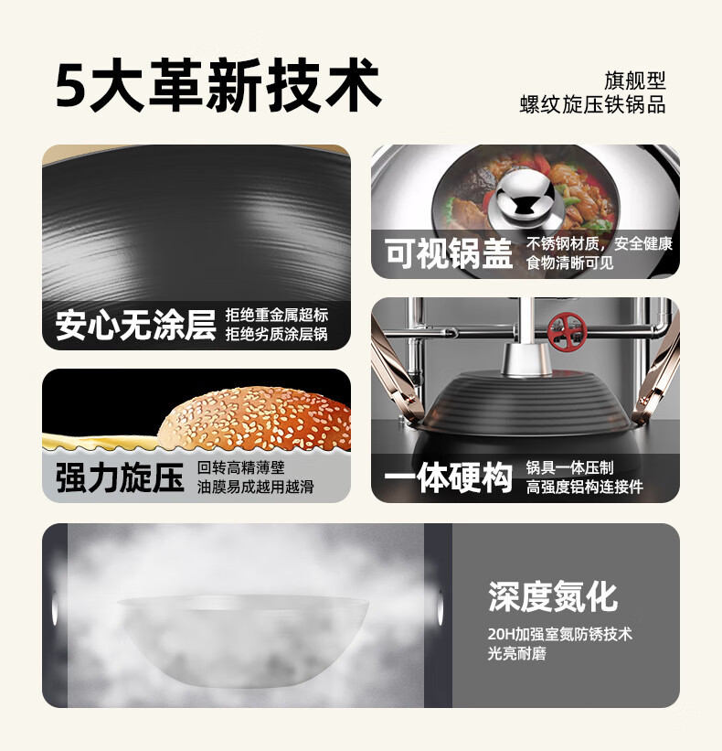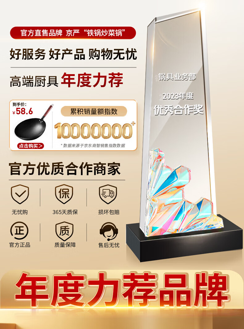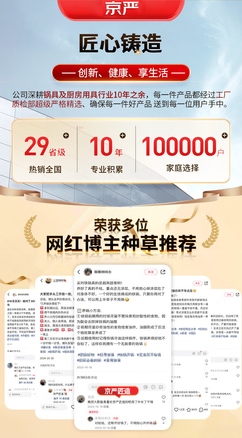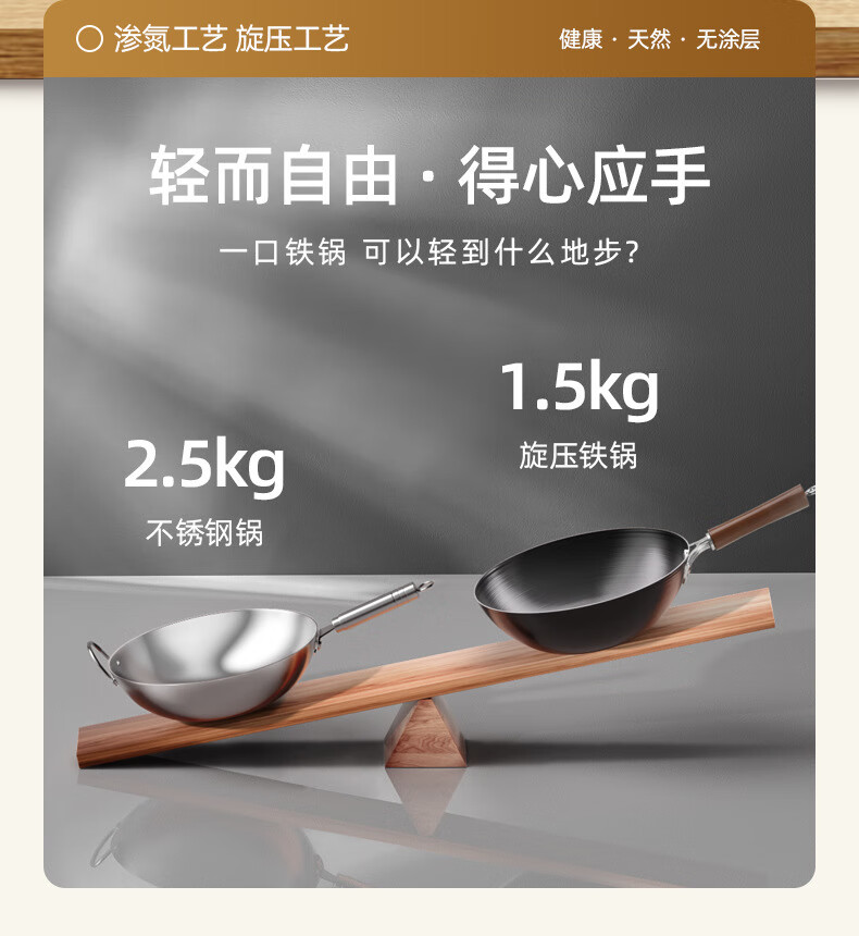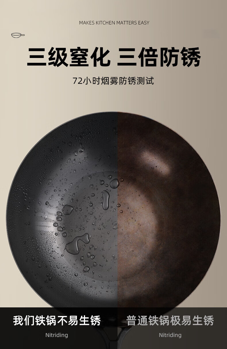 京严章丘款精铁锅炒菜锅老式爆炒锅家用不粘锅无涂层电磁炉燃气灶适用 【三倍防锈】严选大厨铁锅+升级玻璃盖+铲 32cm