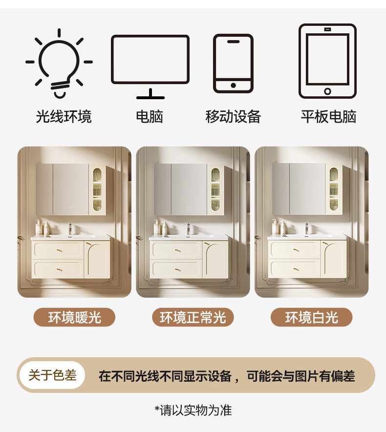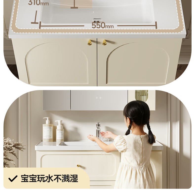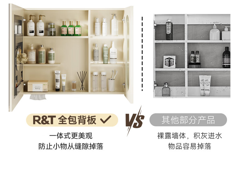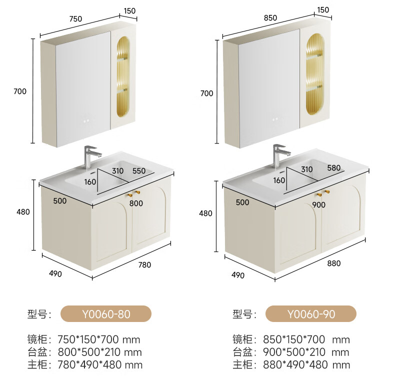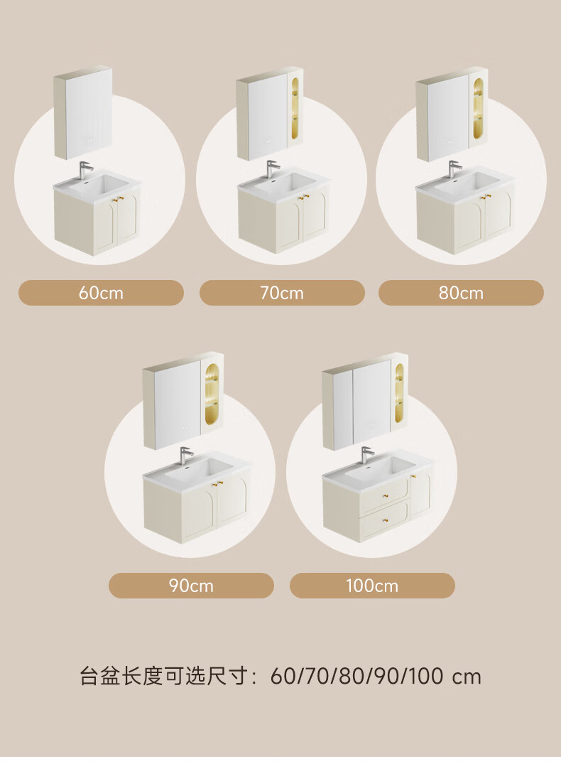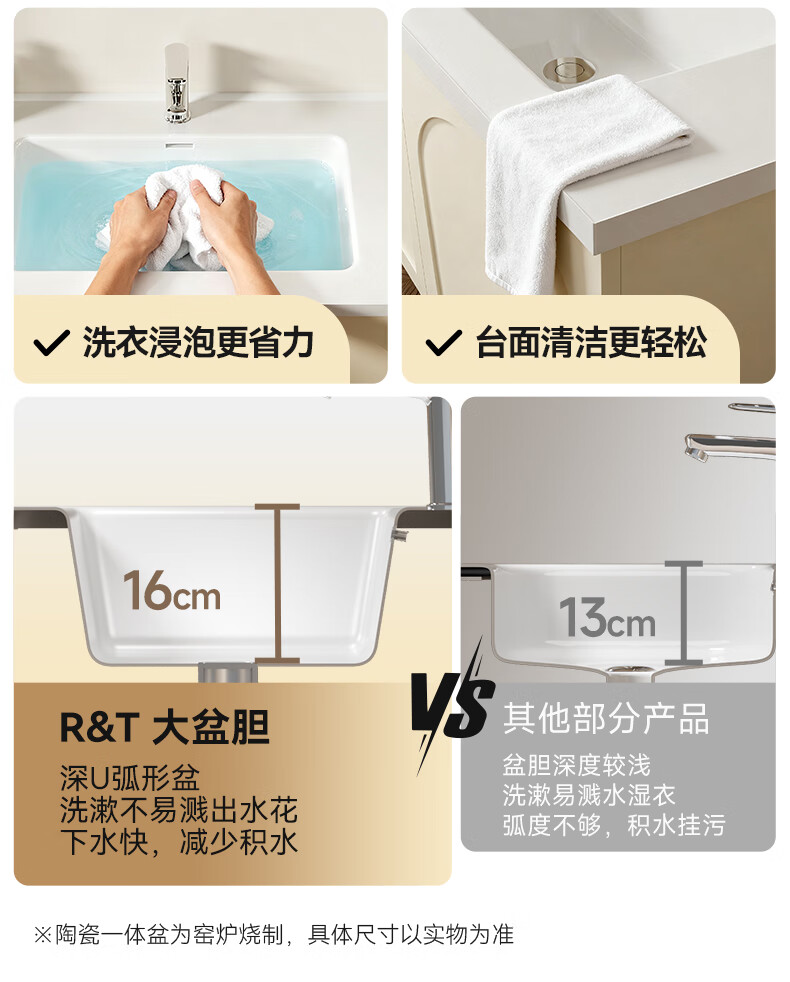 瑞尔特(R&T)2025新款法式浴室柜组合陶瓷一体盆卫生间洗脸洗漱台盆柜 Y0060-80cm【触摸感应板灯+精选陶瓷一体盆+一键除雾】