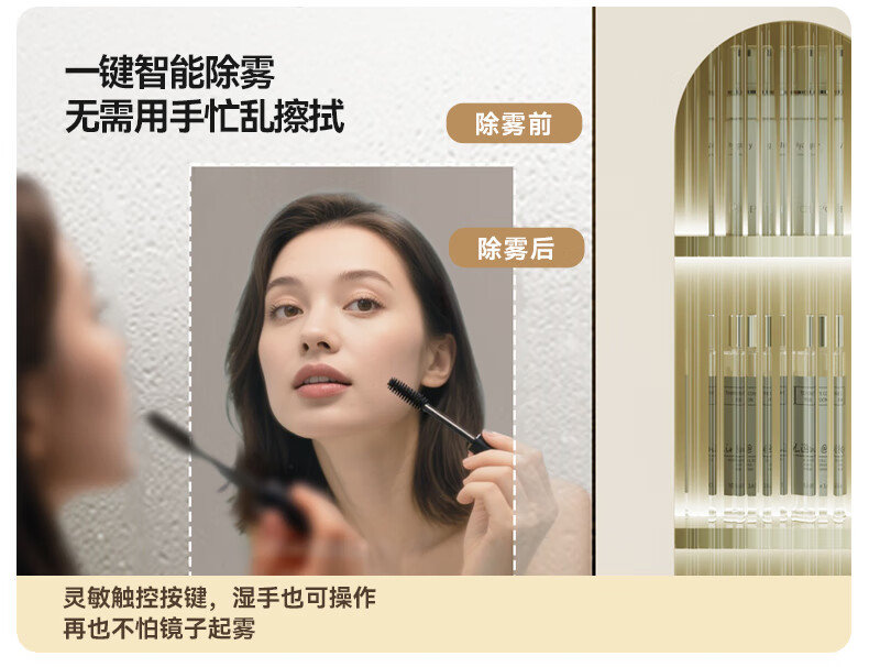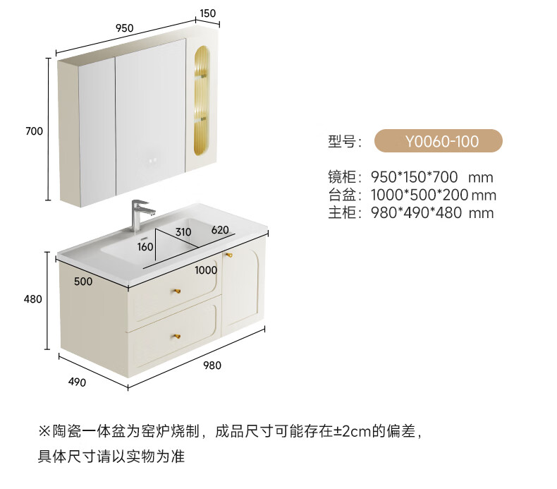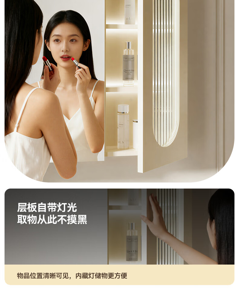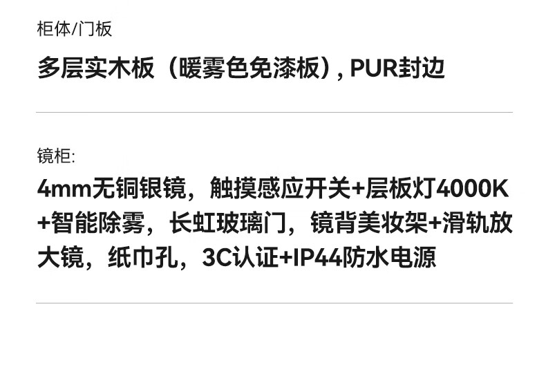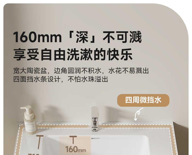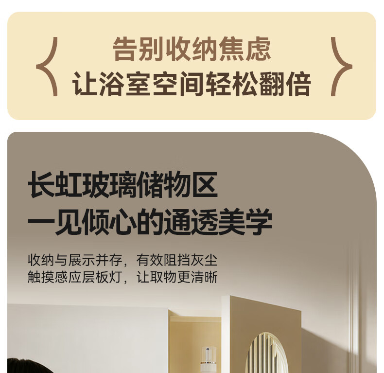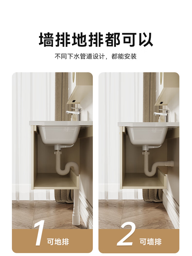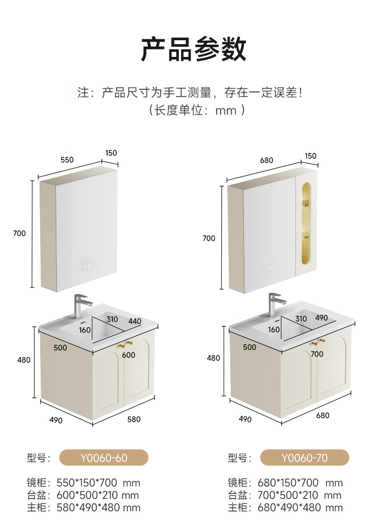 瑞尔特(R&T)2025新款法式浴室柜组合陶瓷一体盆卫生间洗脸洗漱台盆柜 Y0060-80cm【触摸感应板灯+精选陶瓷一体盆+一键除雾】