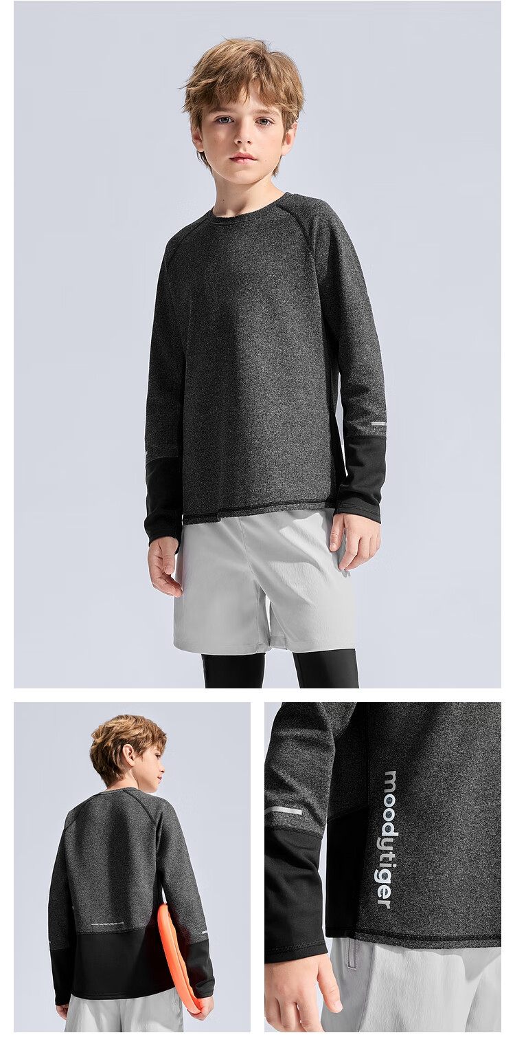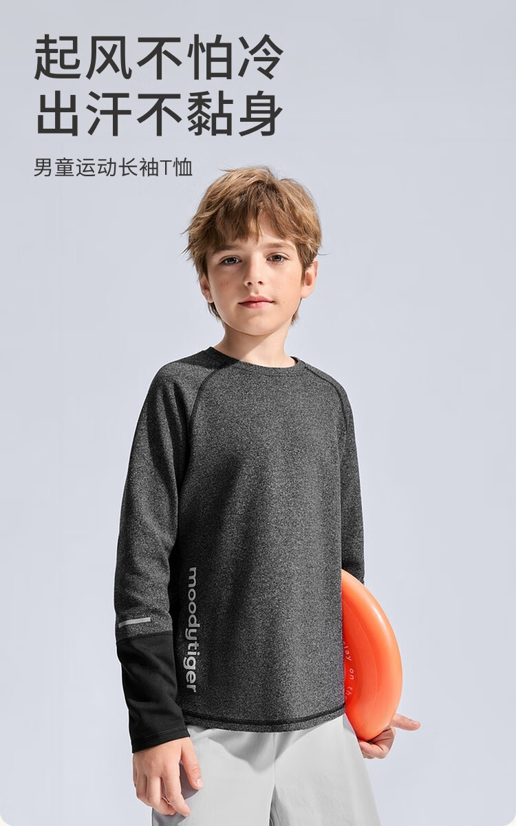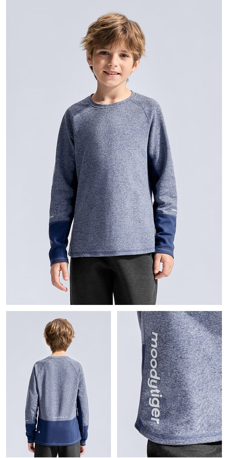 moodytiger男童长袖T恤柔软弹力25年秋新品儿童上衣吸湿排汗圆领加厚运动衣