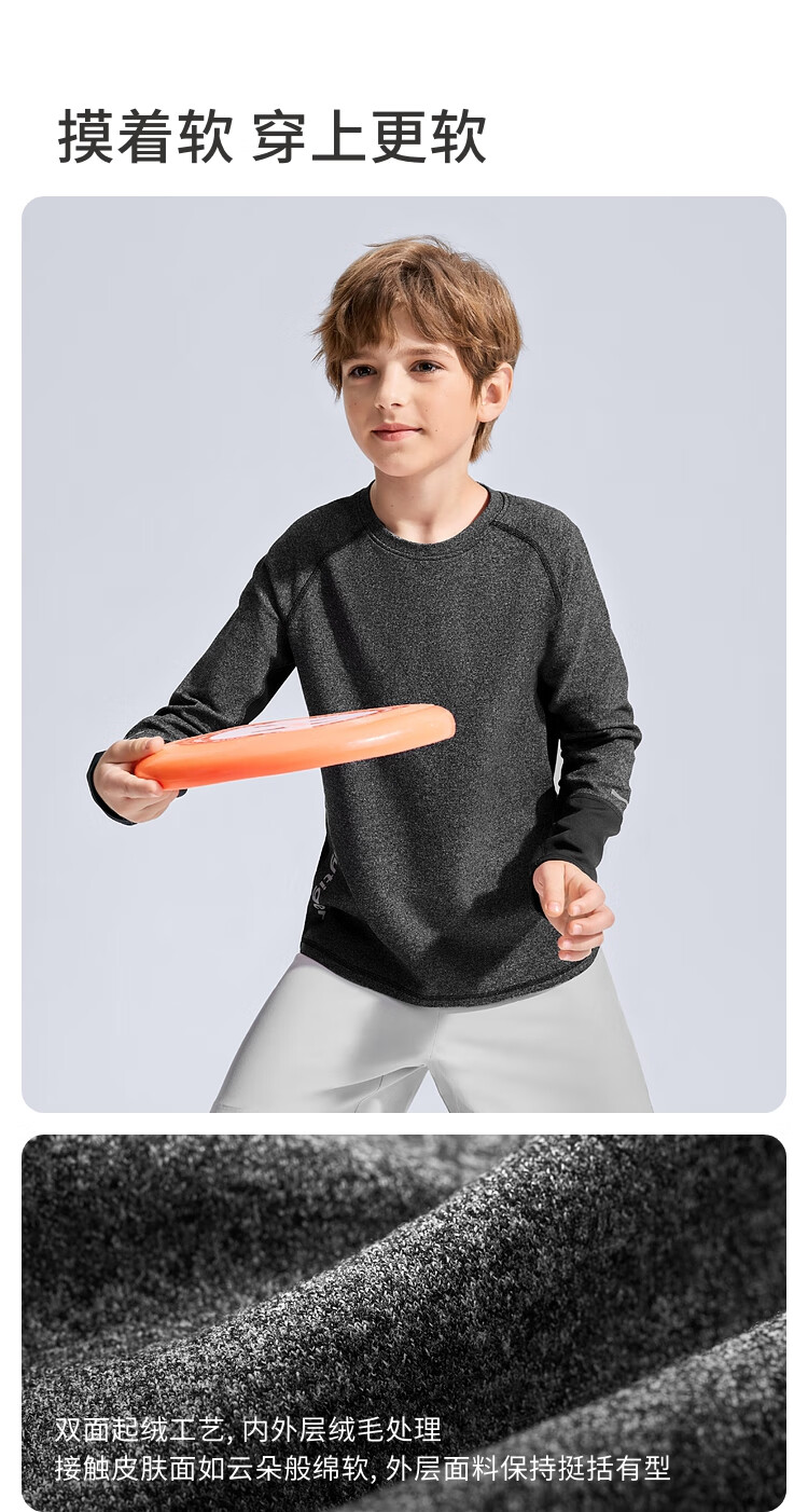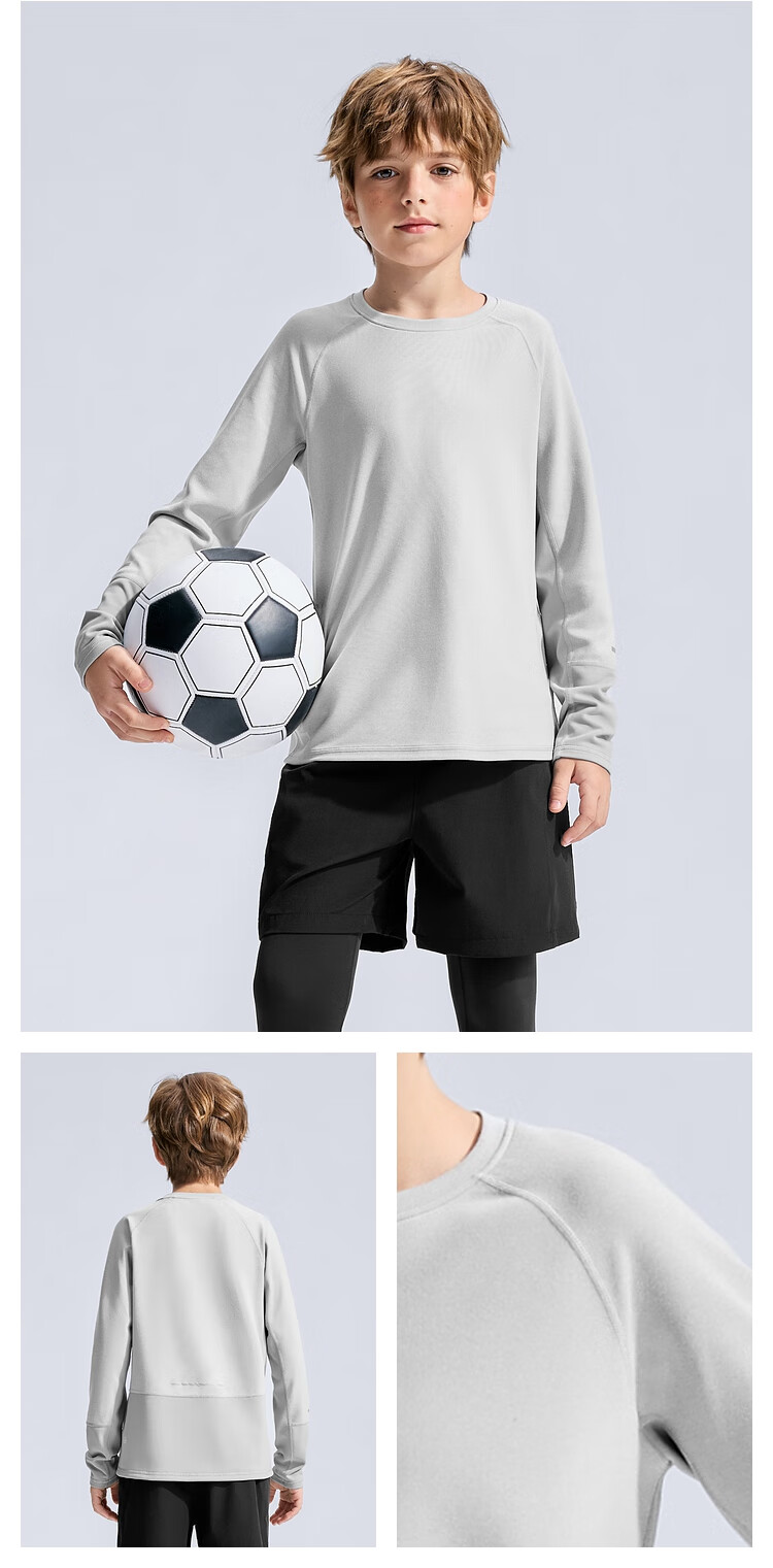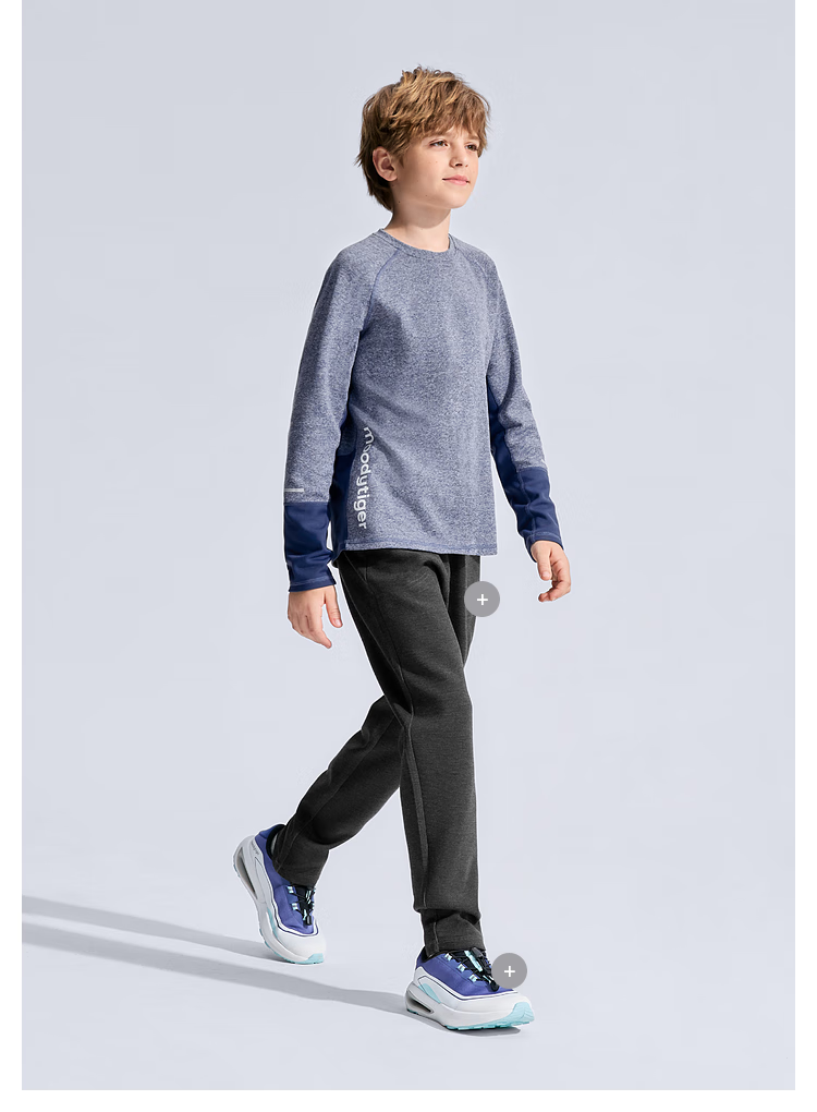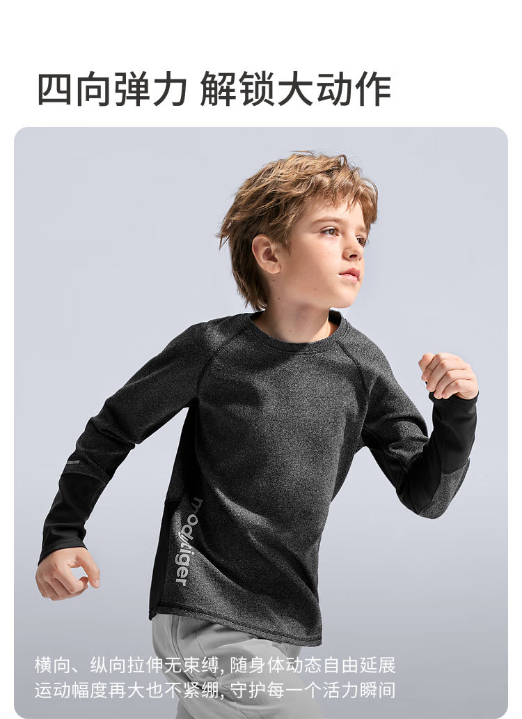moodytiger男童长袖T恤柔软弹力25年秋新品儿童上衣吸湿排汗圆领加厚运动衣