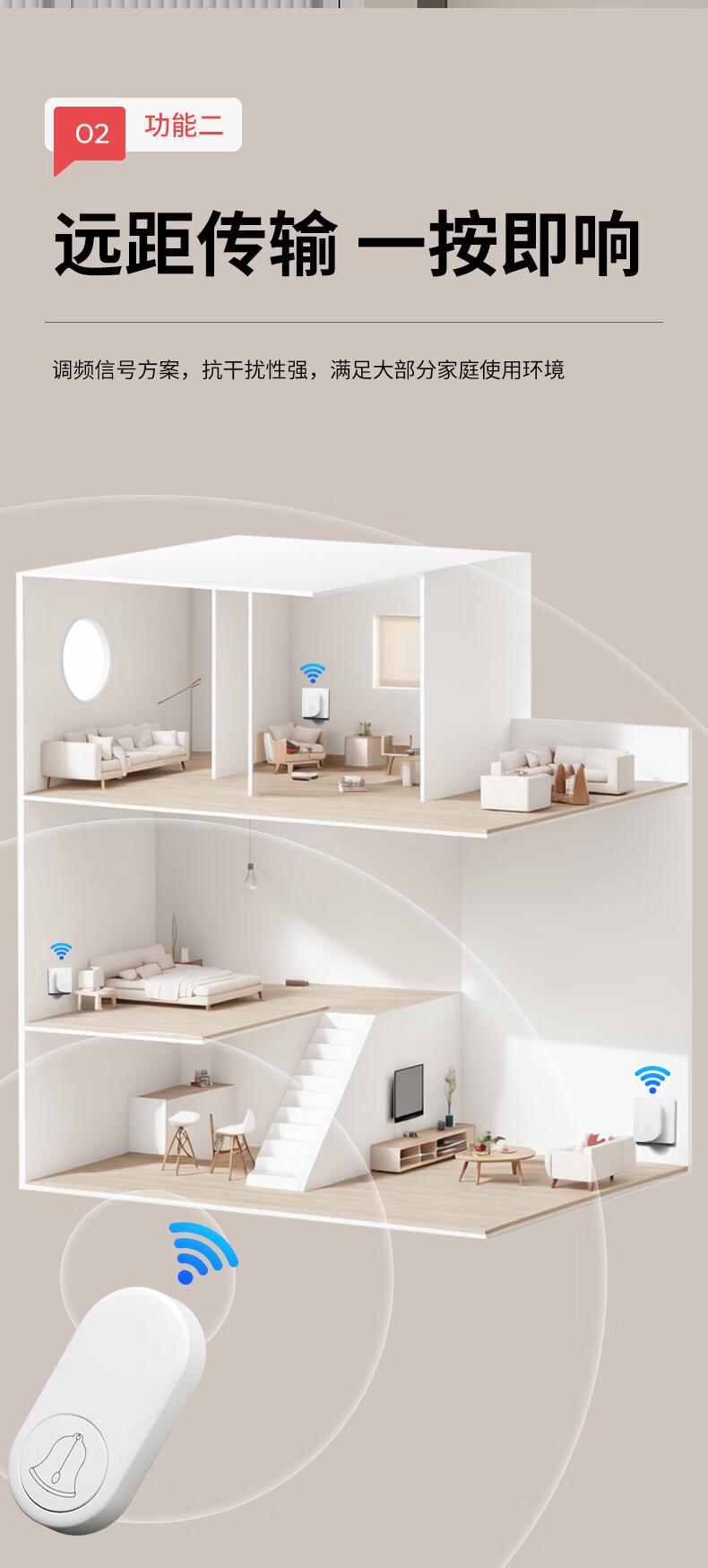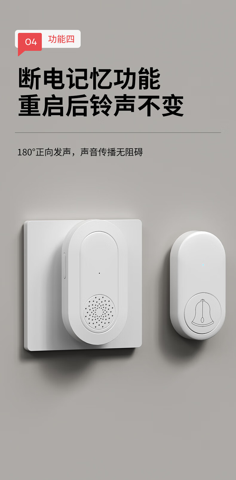 国际电工新款门铃家用无线老人呼叫器入户门铃铛电子遥控超远距离大音量 白色【1个按铃+1个响铃】