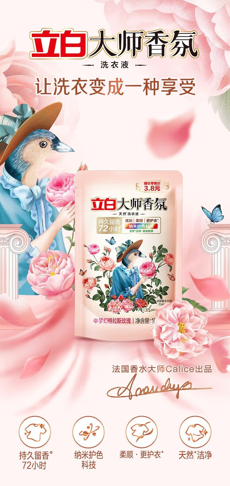 立白大师香氛洗衣液持久留香手洗机洗低泡易漂炫彩柔顺护衣家用防串色 洗衣组合7件套