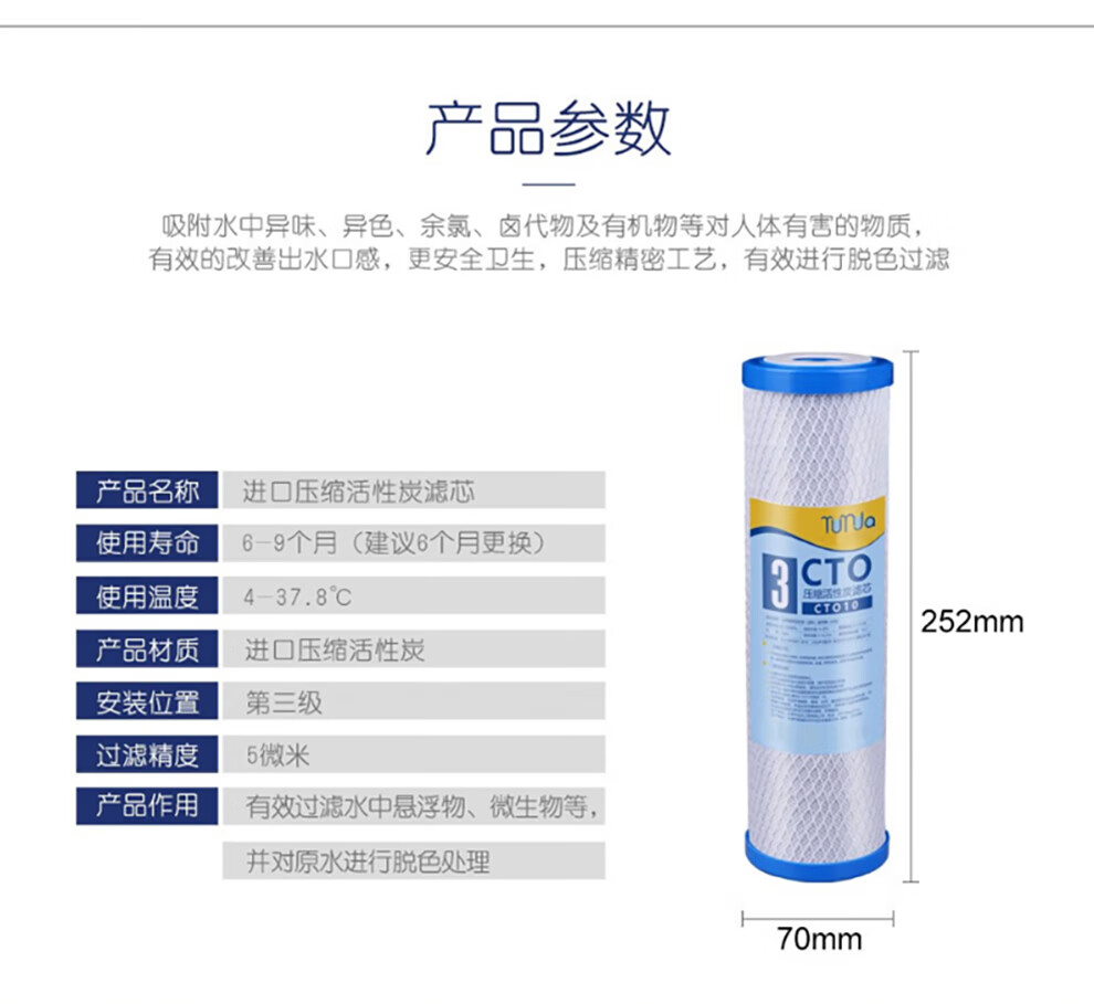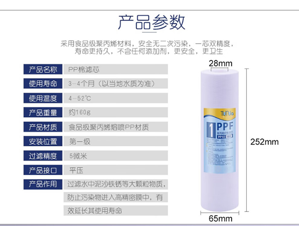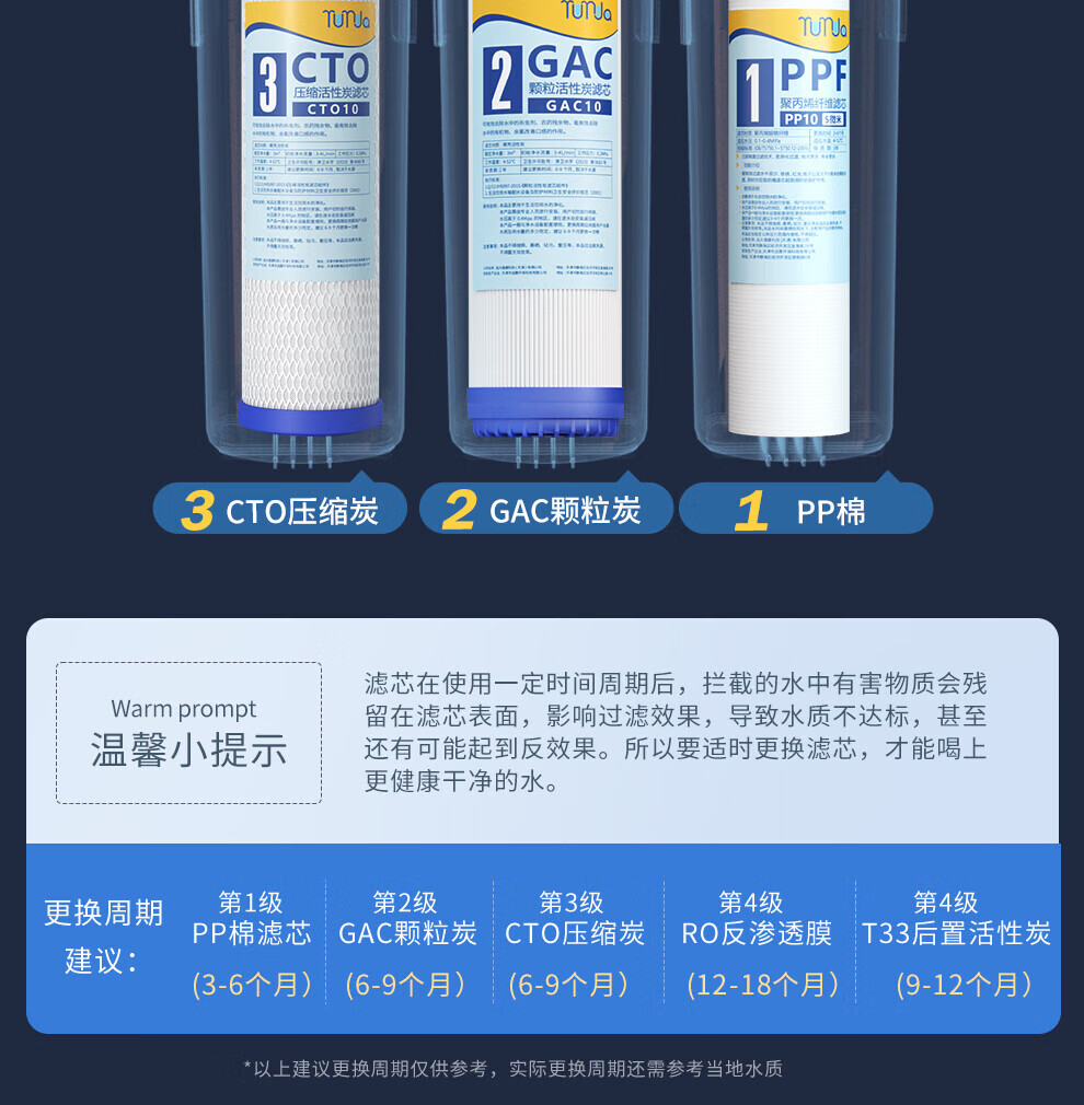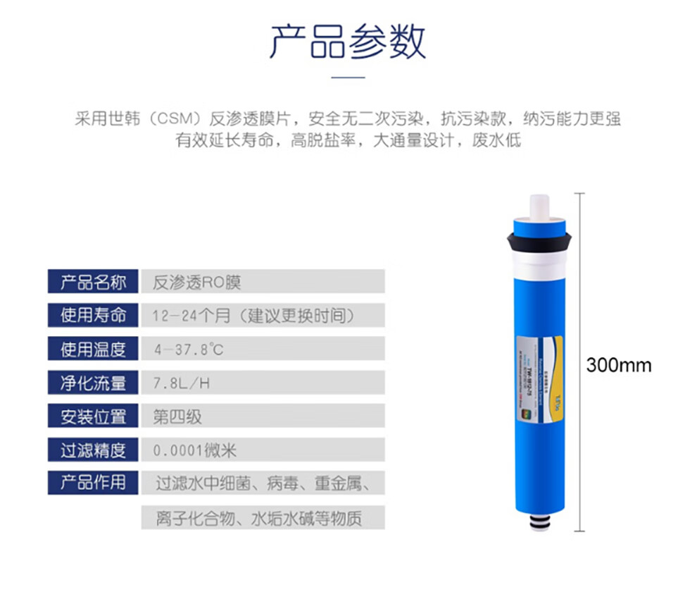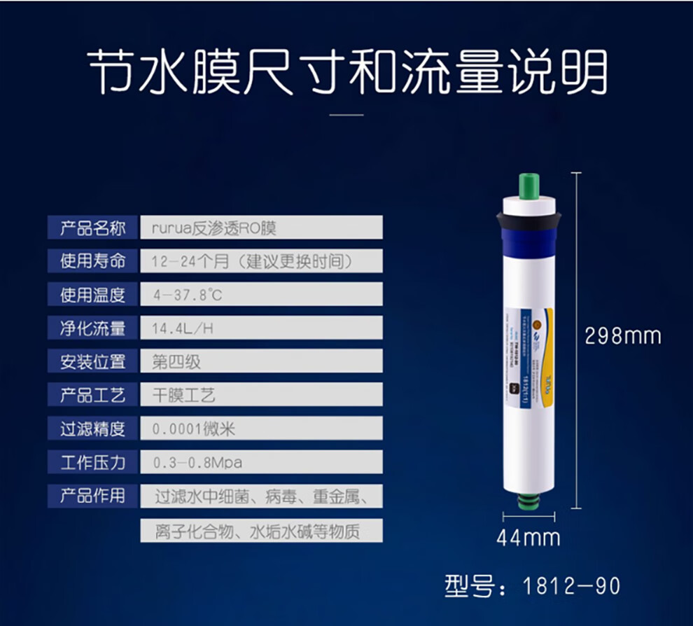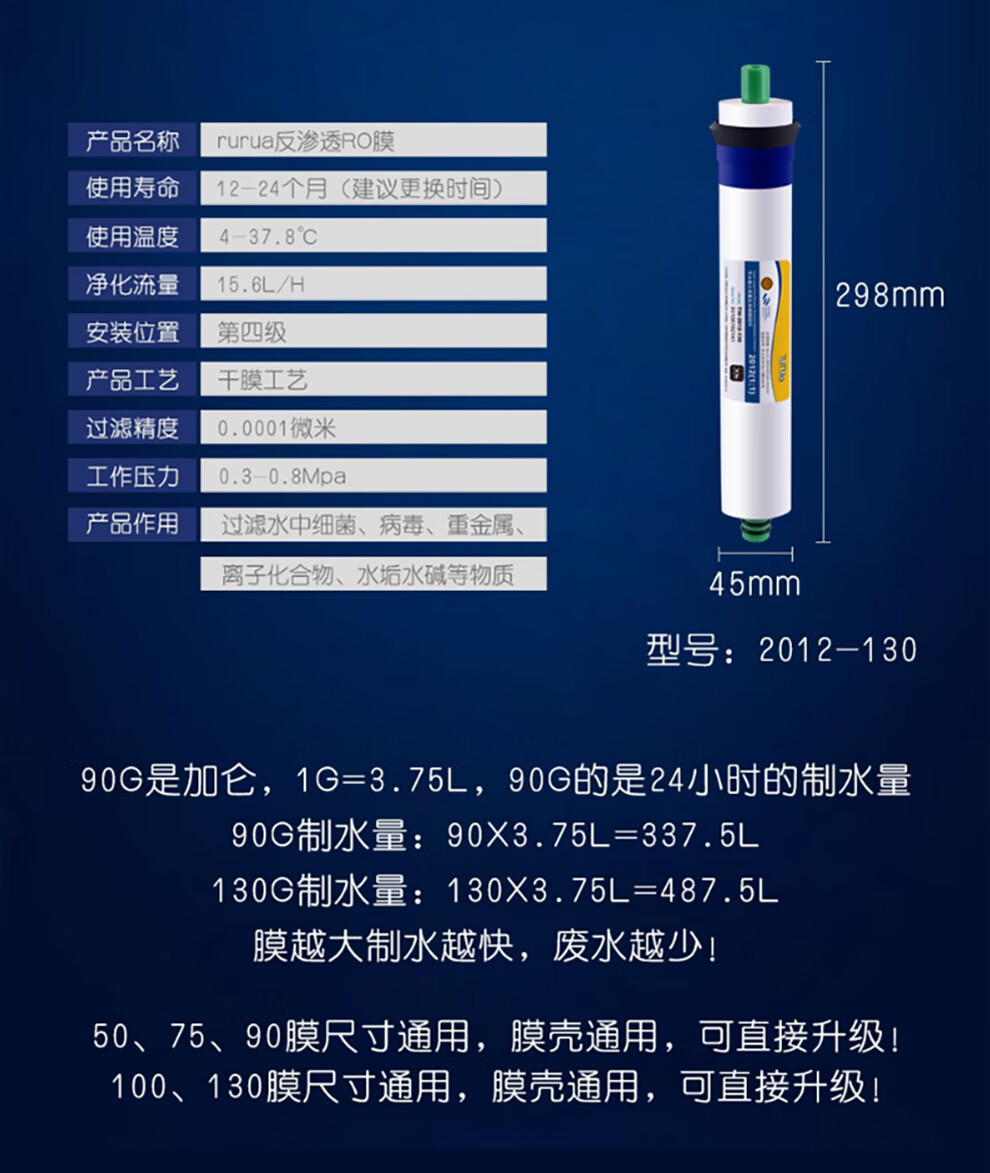 远大健科 rurua家用10英寸净水器滤芯通用五级套装 反渗透净水机滤芯pp棉活性炭ro膜t33 5支装 配1812-75 RO膜