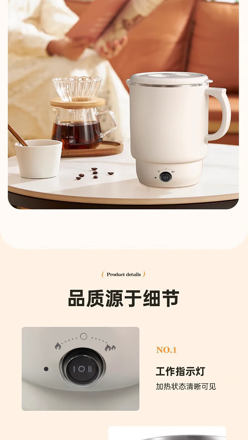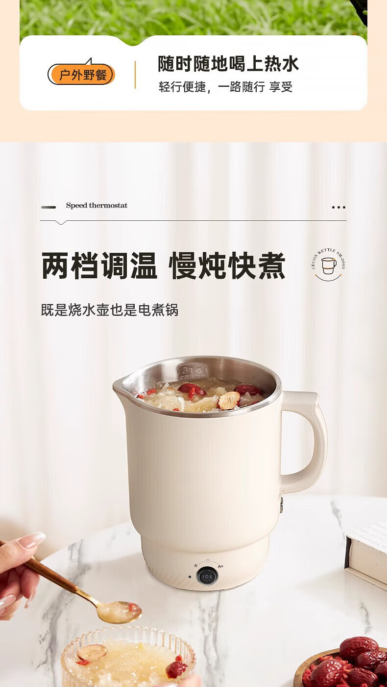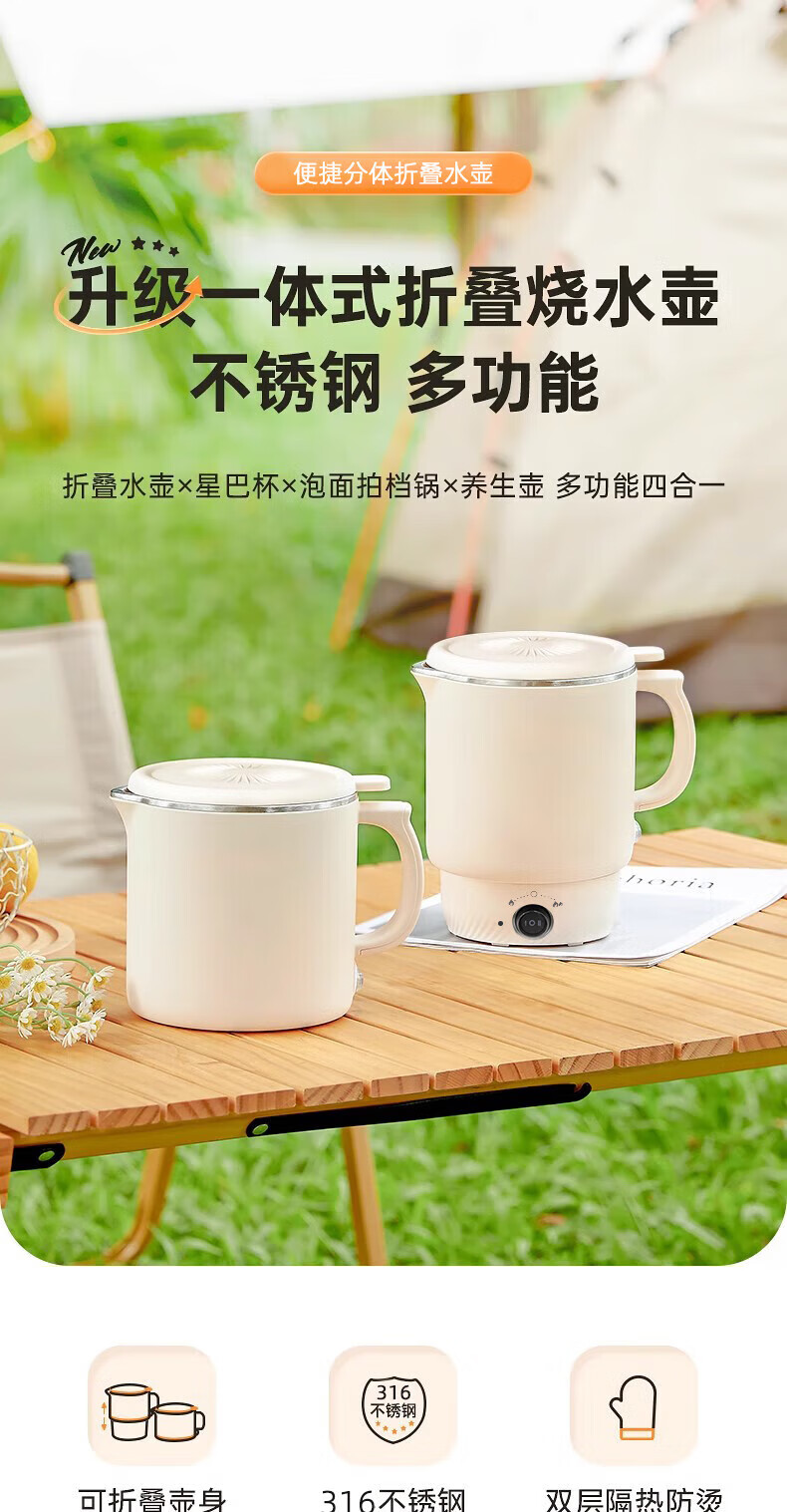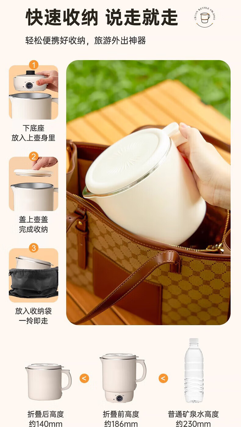 便携式不锈钢折叠烧水壶小型家用电热水壶旅行迷你出差热水壶 0.6L 尊享智能控温-三重断电