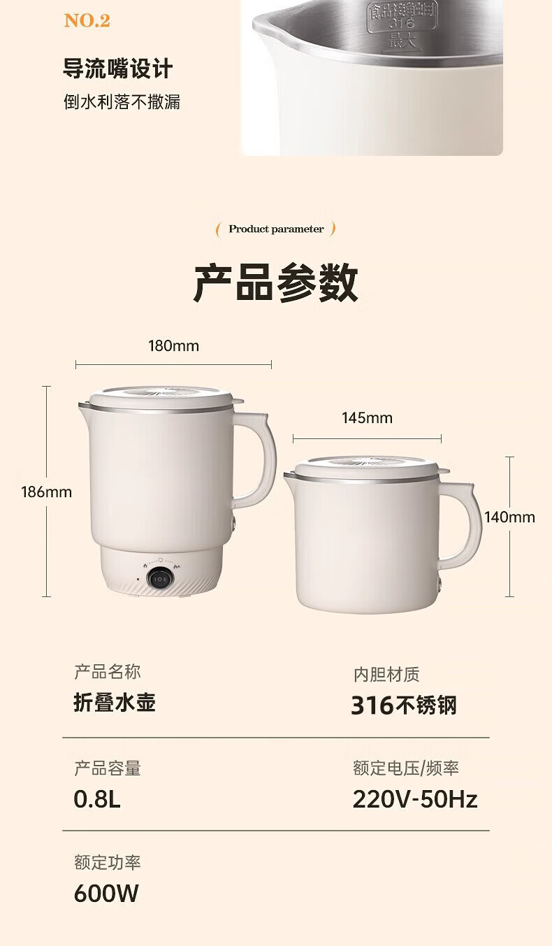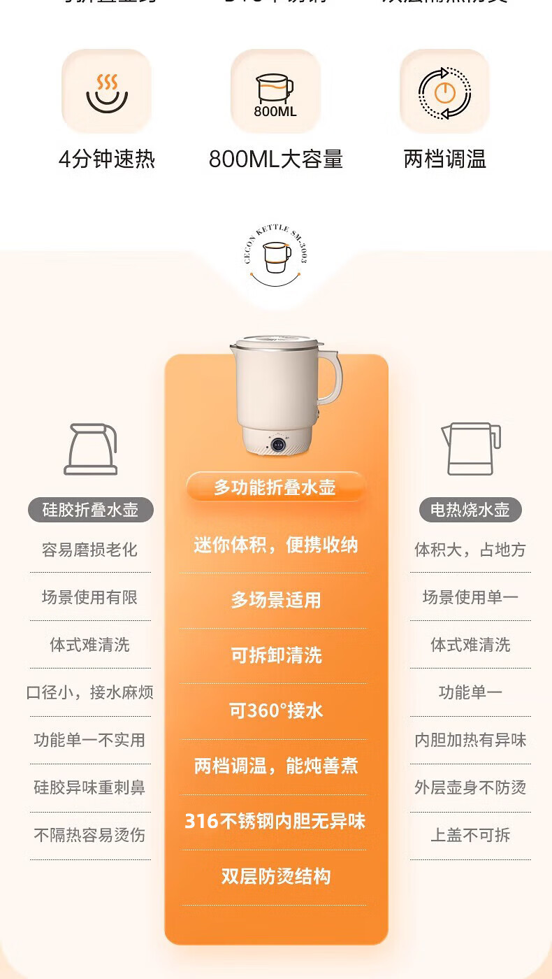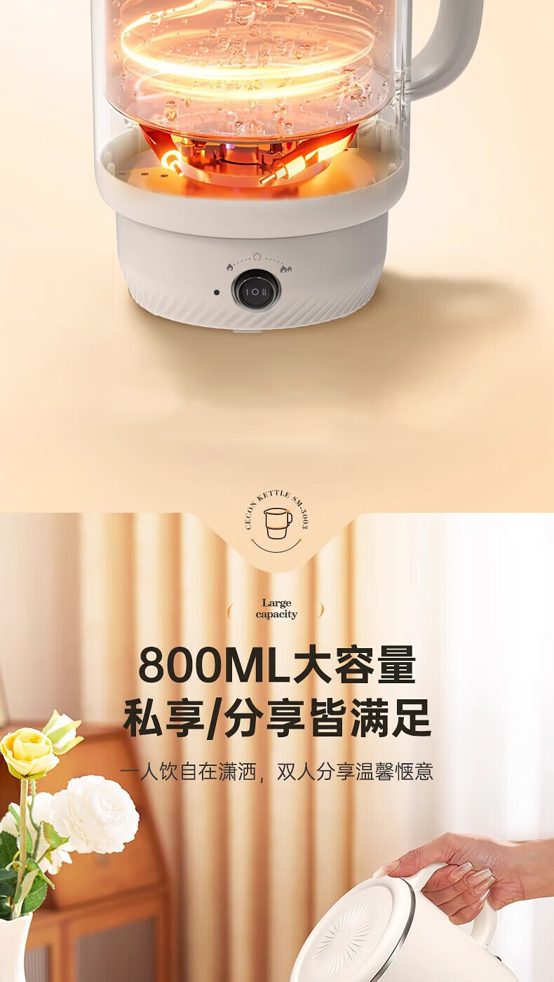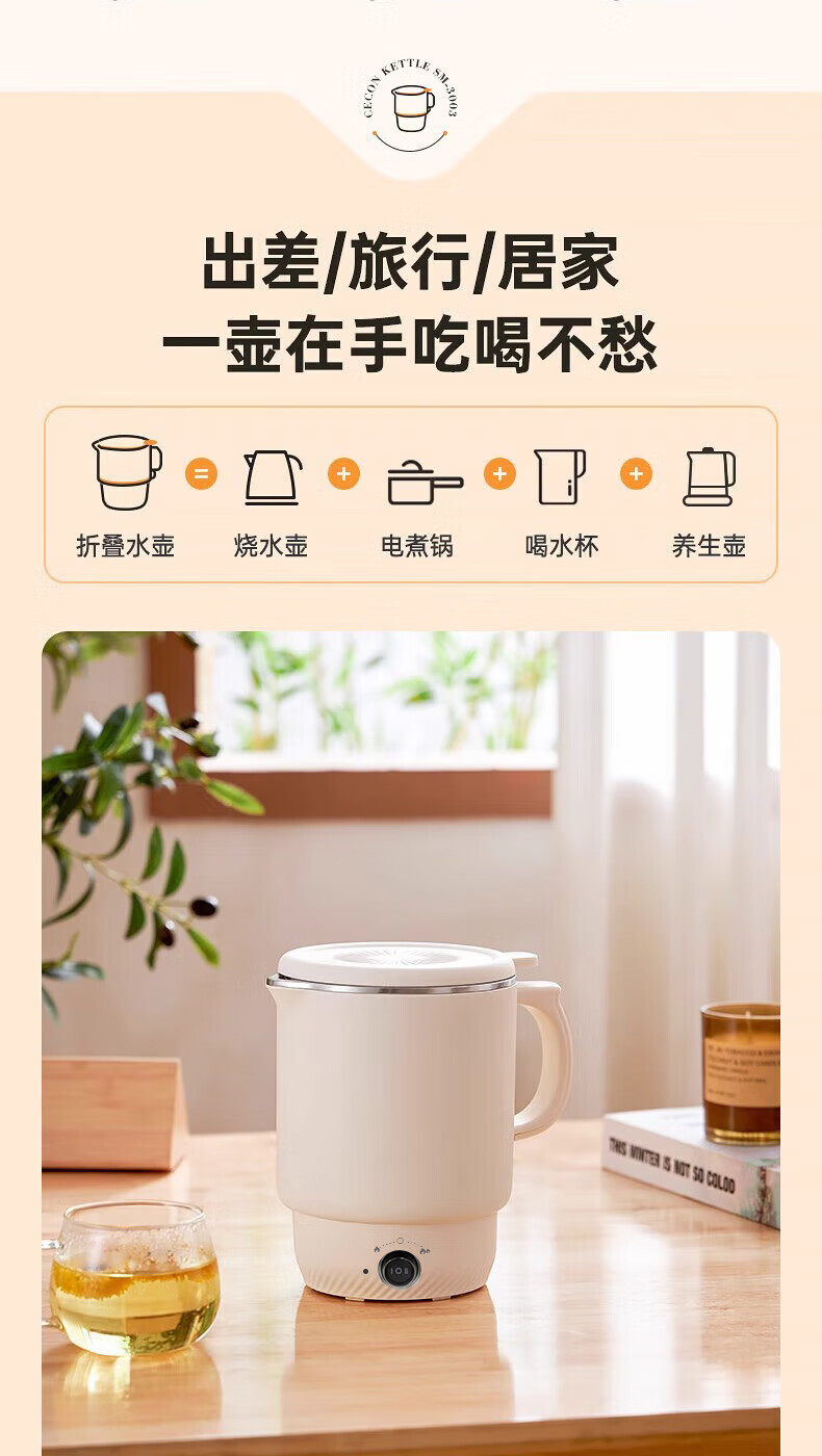 便携式不锈钢折叠烧水壶小型家用电热水壶旅行迷你出差热水壶 0.6L 尊享智能控温-三重断电