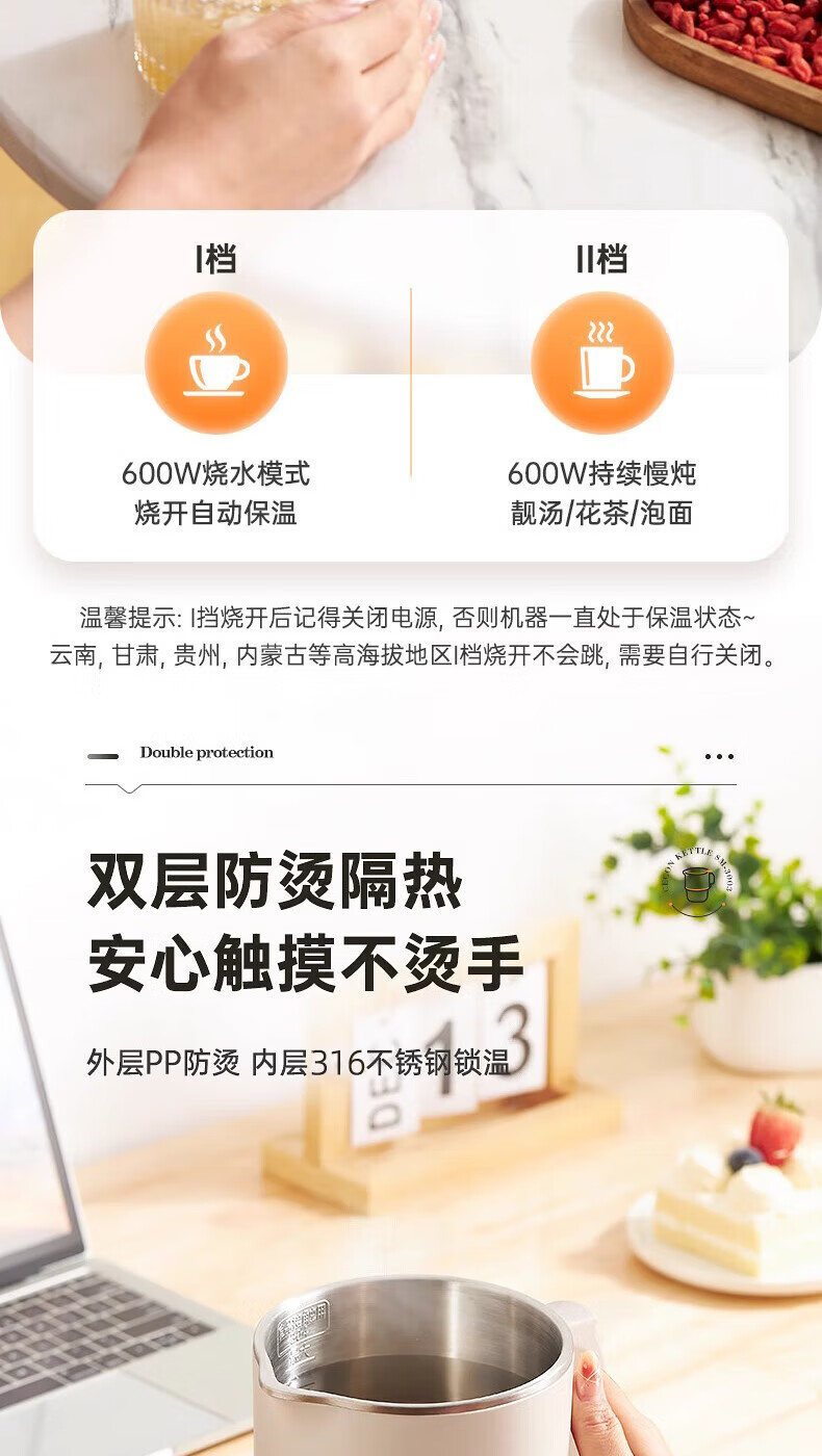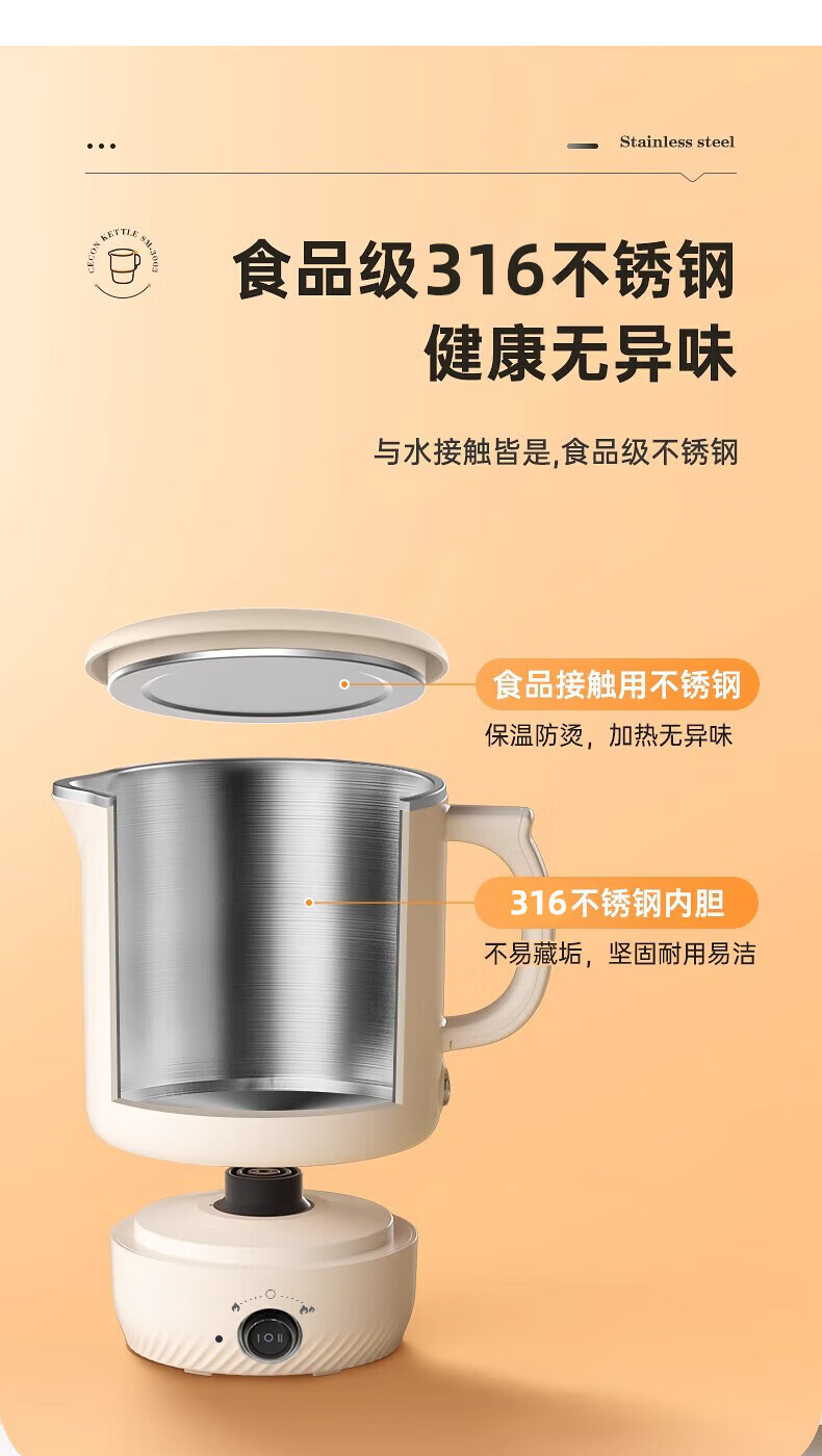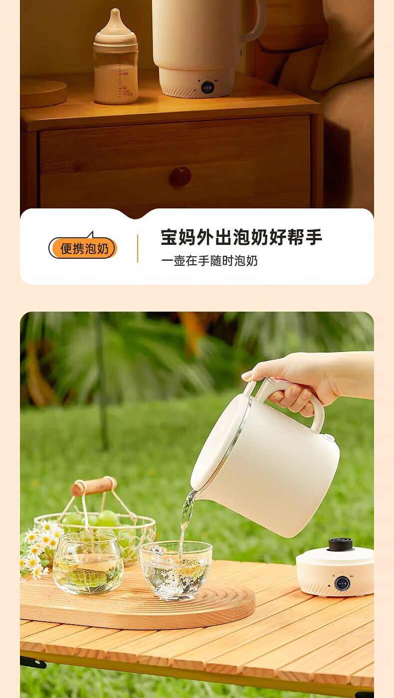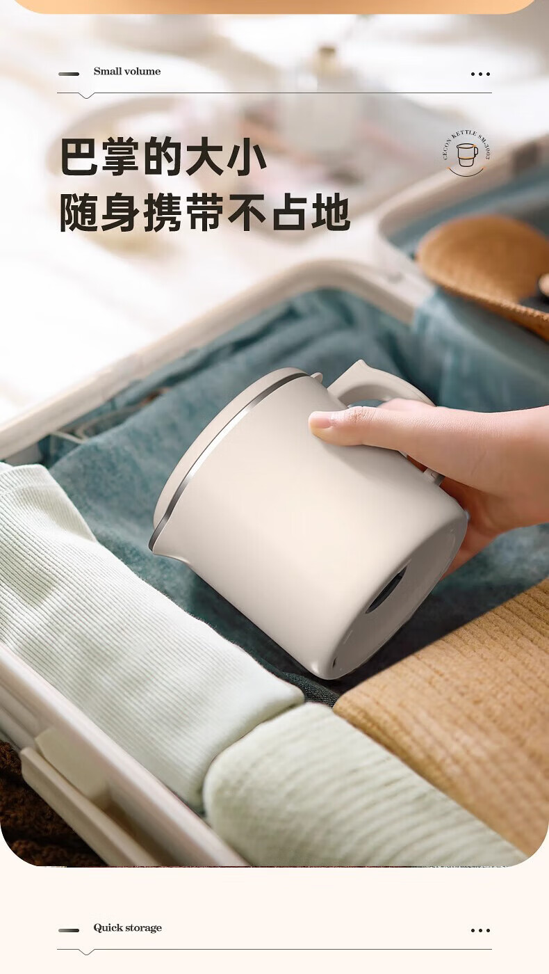 便携式不锈钢折叠烧水壶小型家用电热水壶旅行迷你出差热水壶 0.6L 尊享智能控温-三重断电